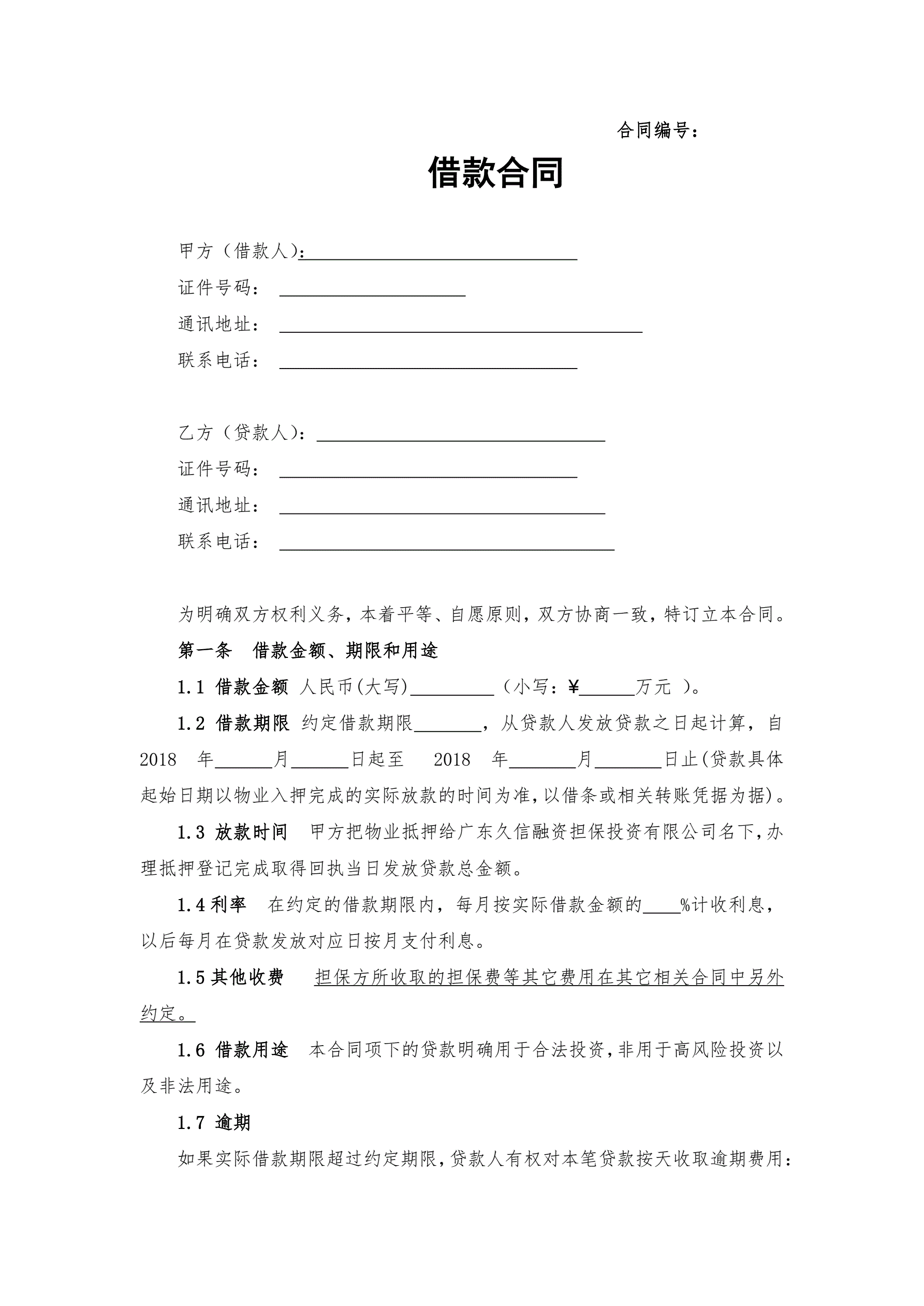 合同名称:借款合同