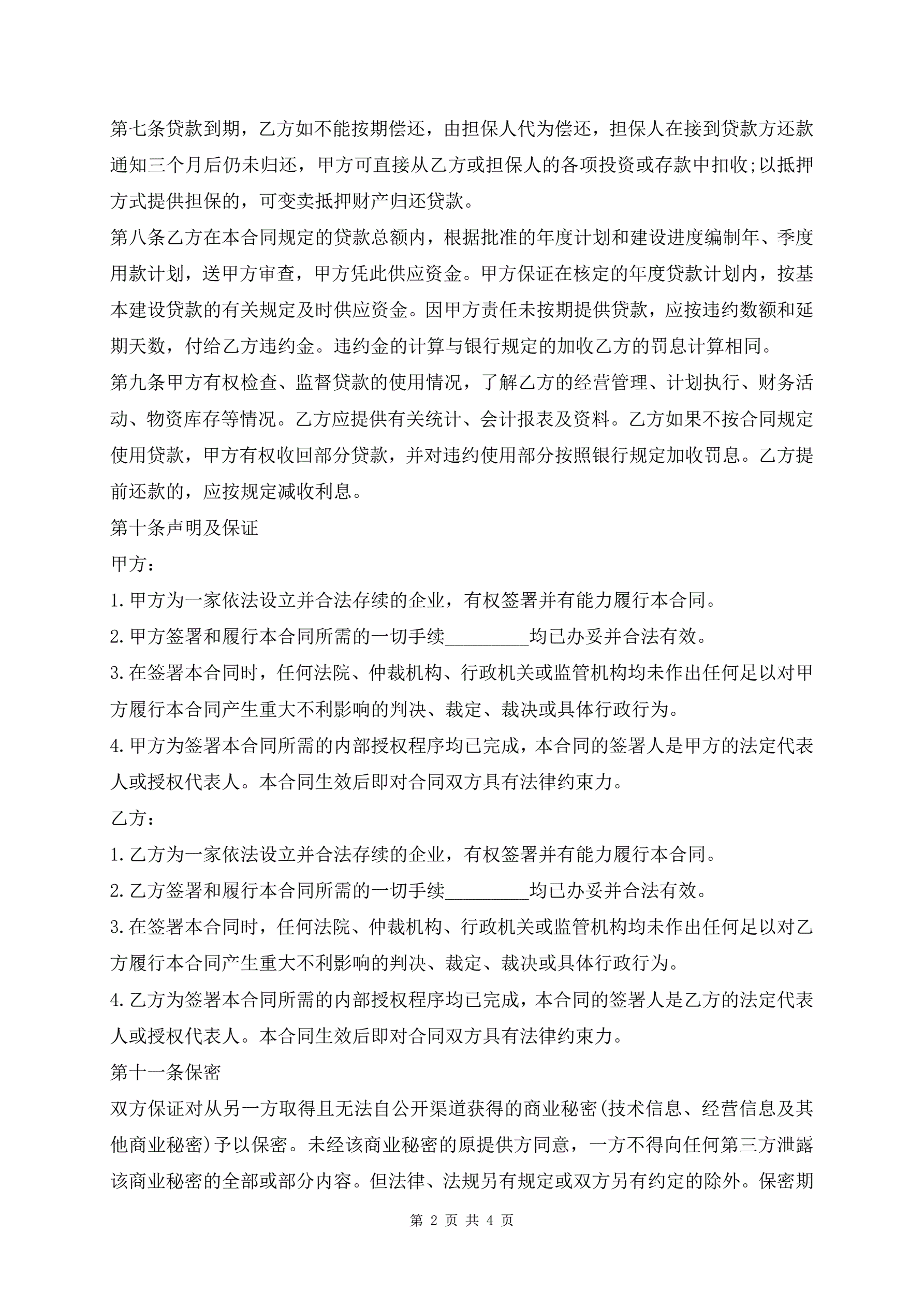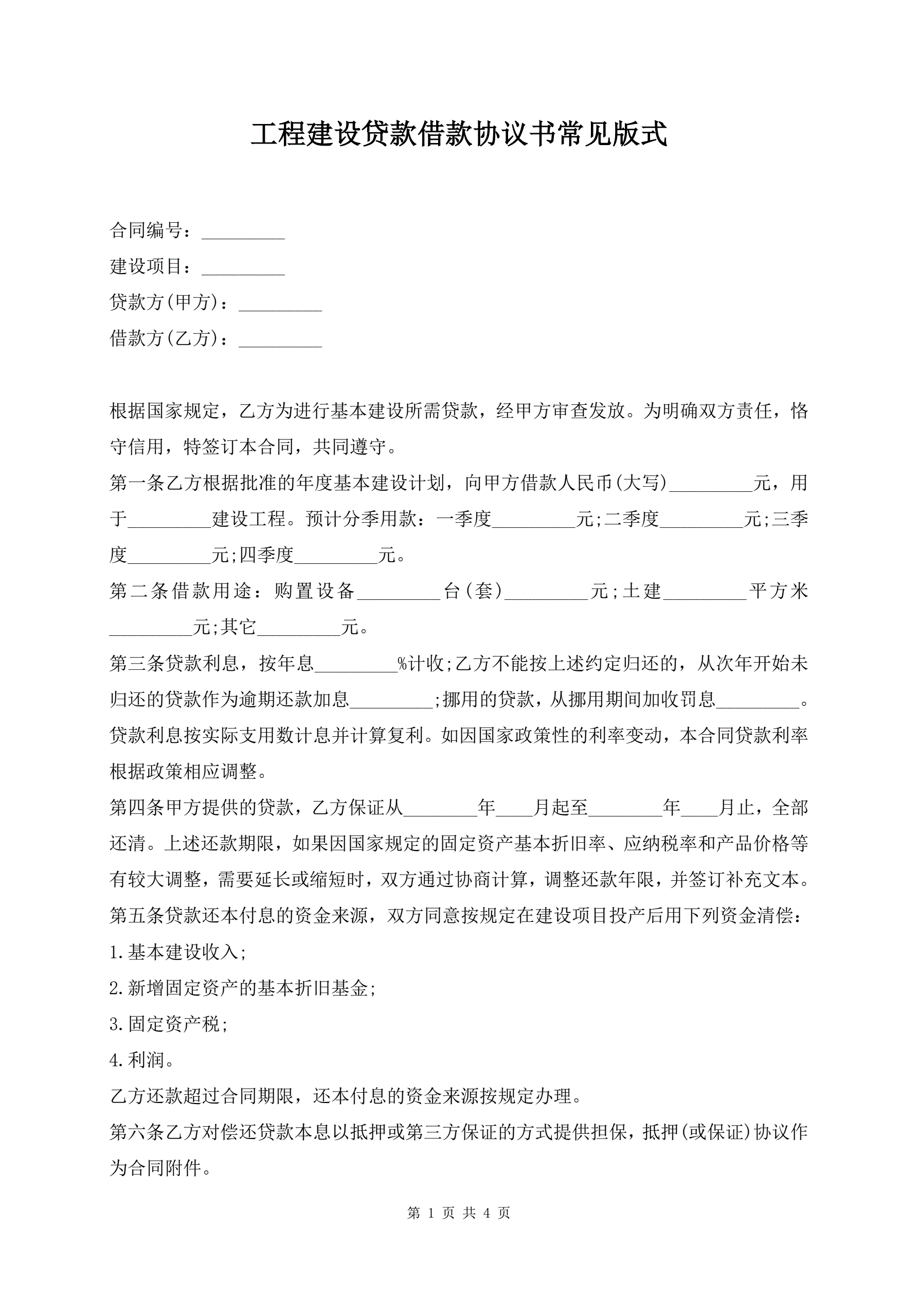 >工程建设贷款借款协议书常见版式