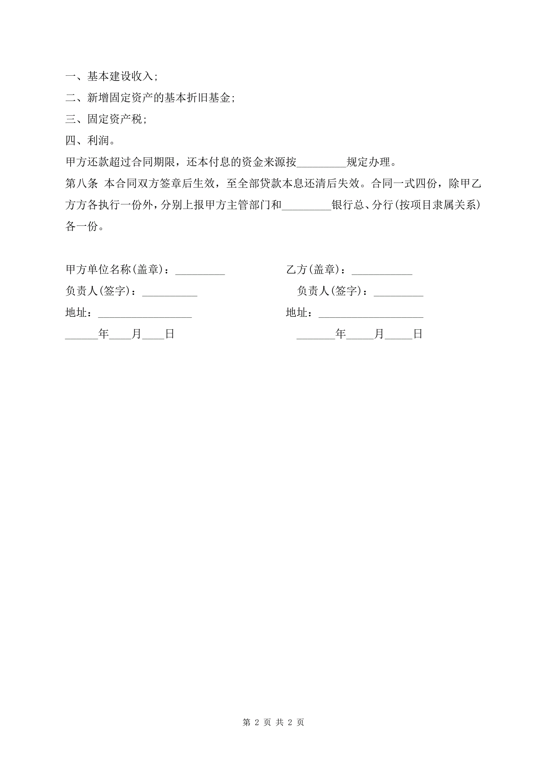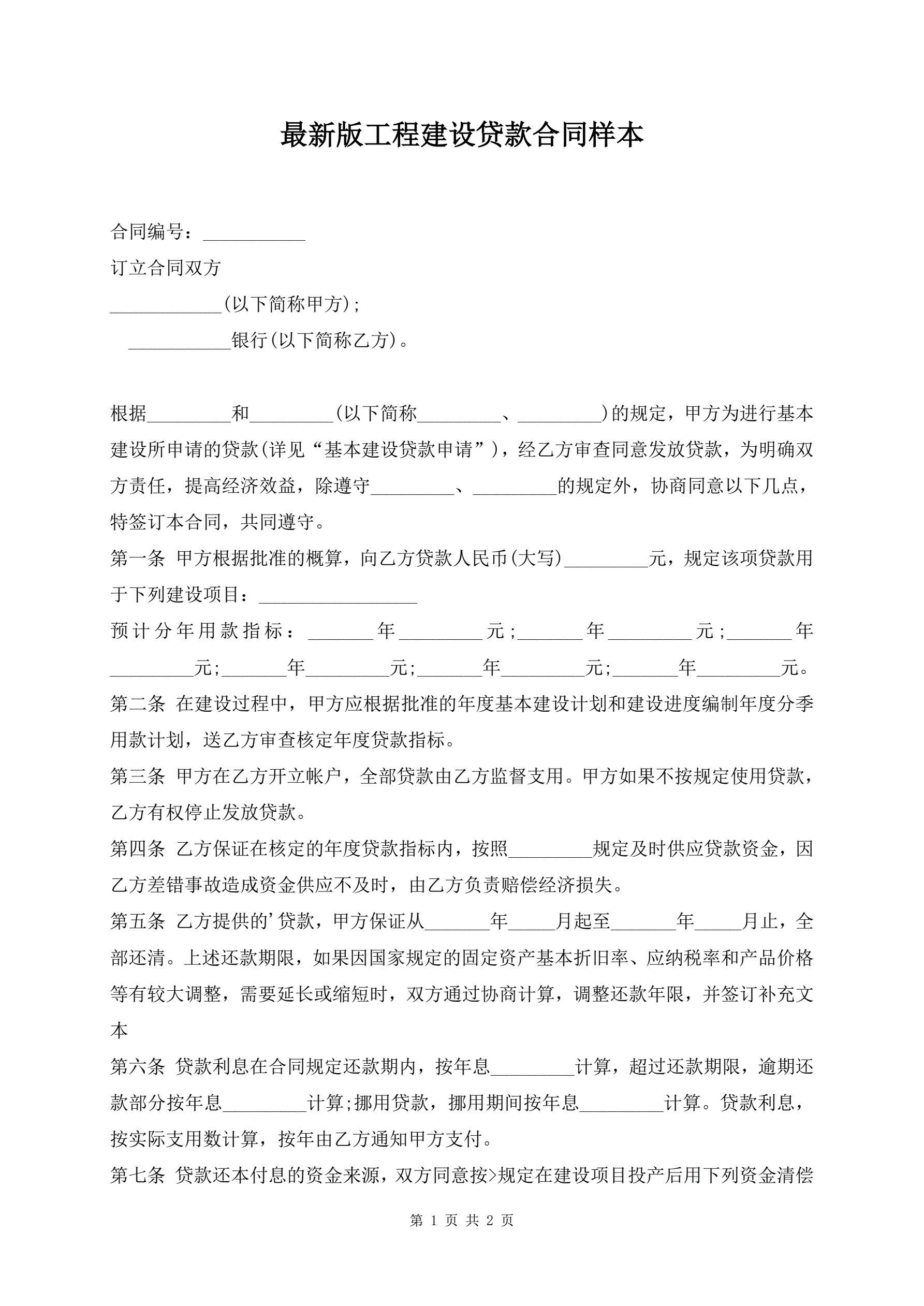 >最新版工程建设贷款合同样本