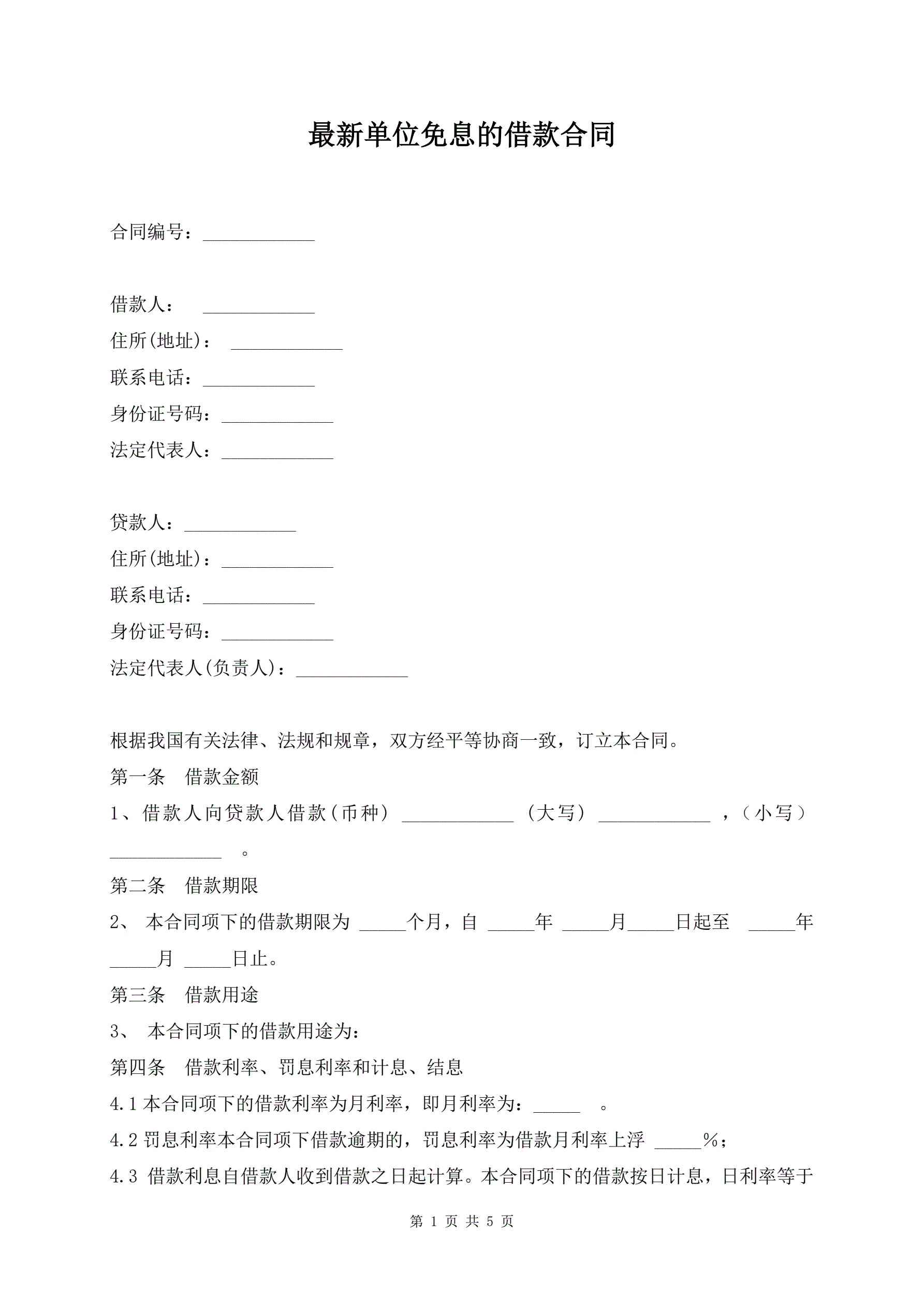 最新单位免息的借款合同