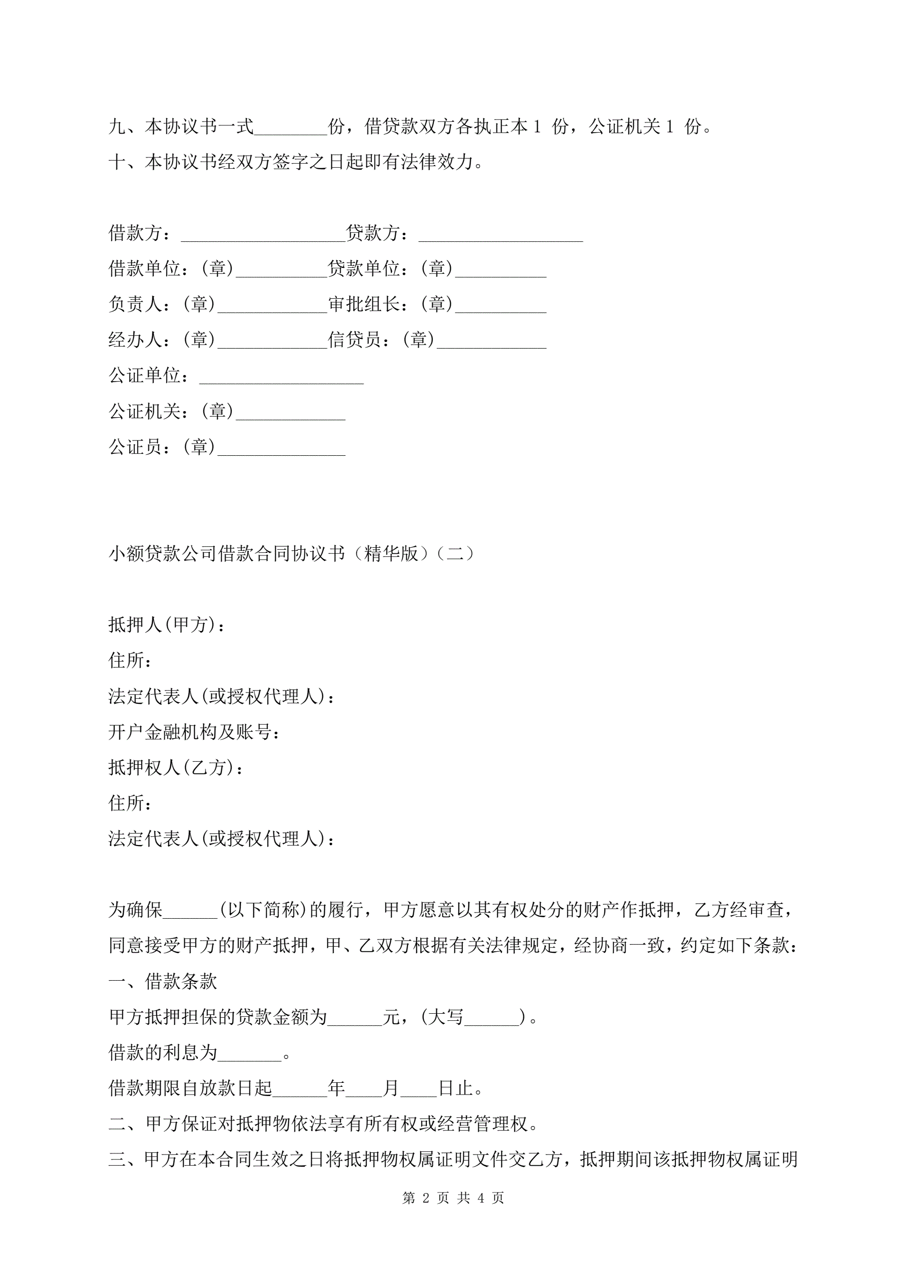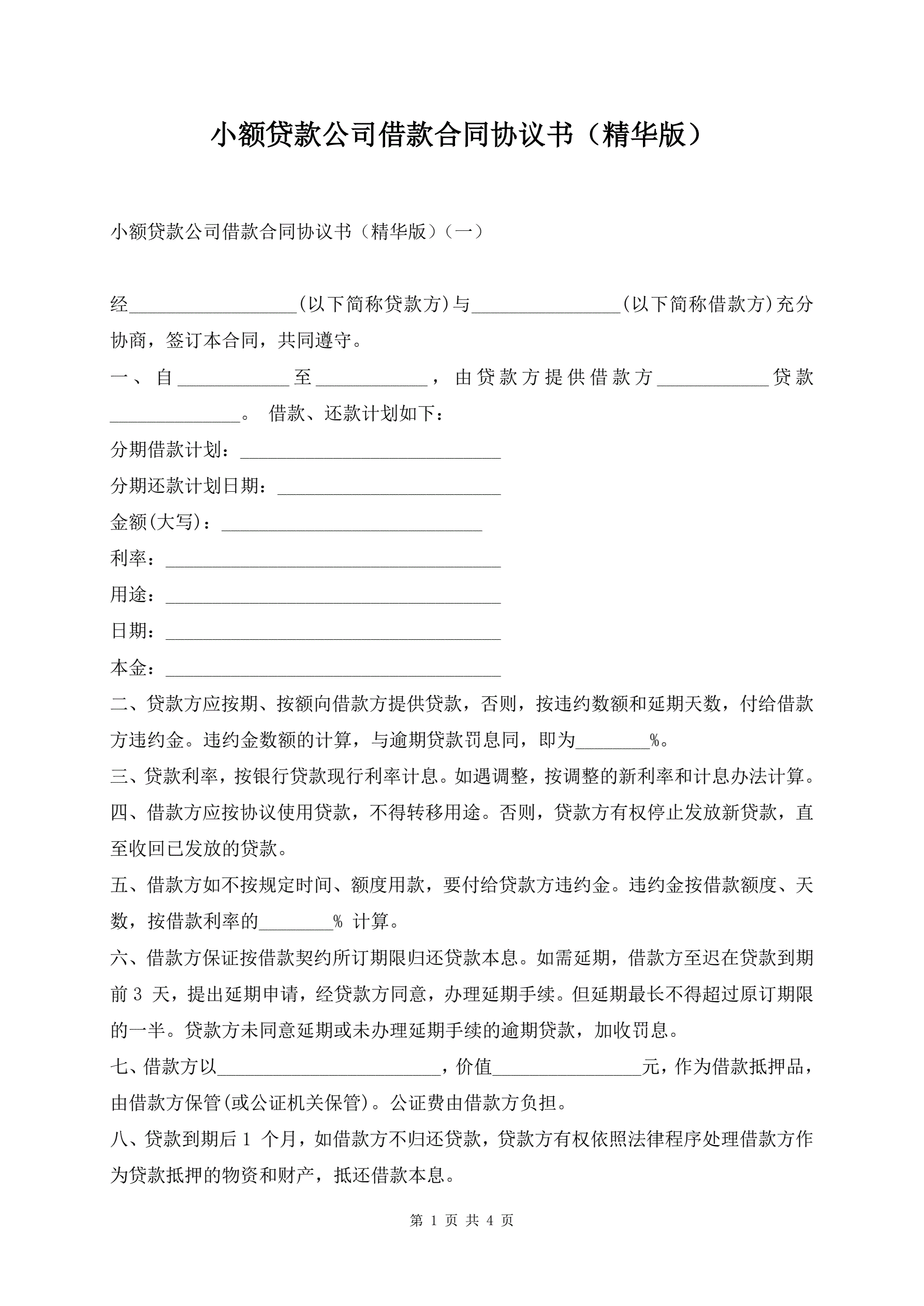 >小额贷款公司借款合同协议书(精华版)