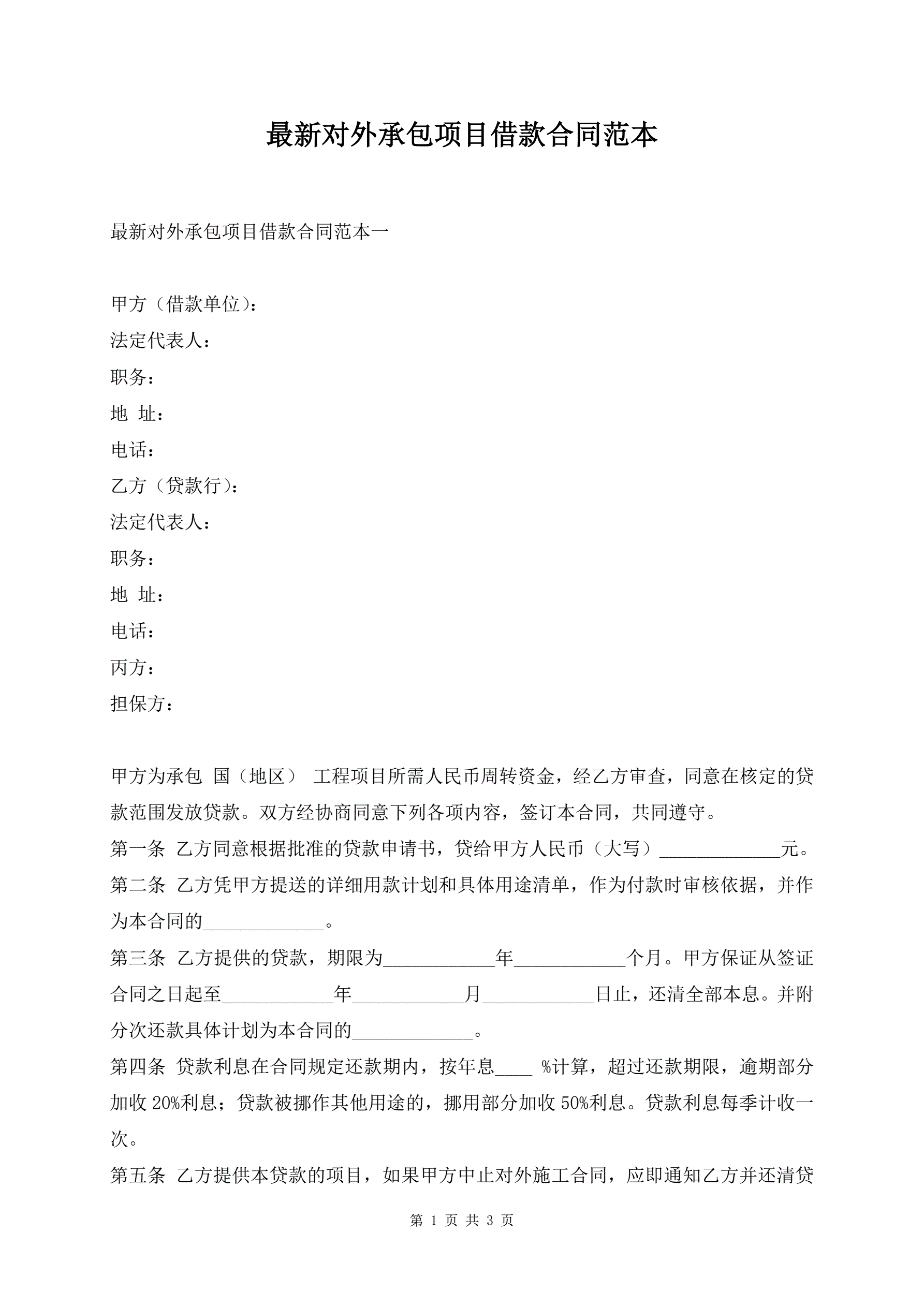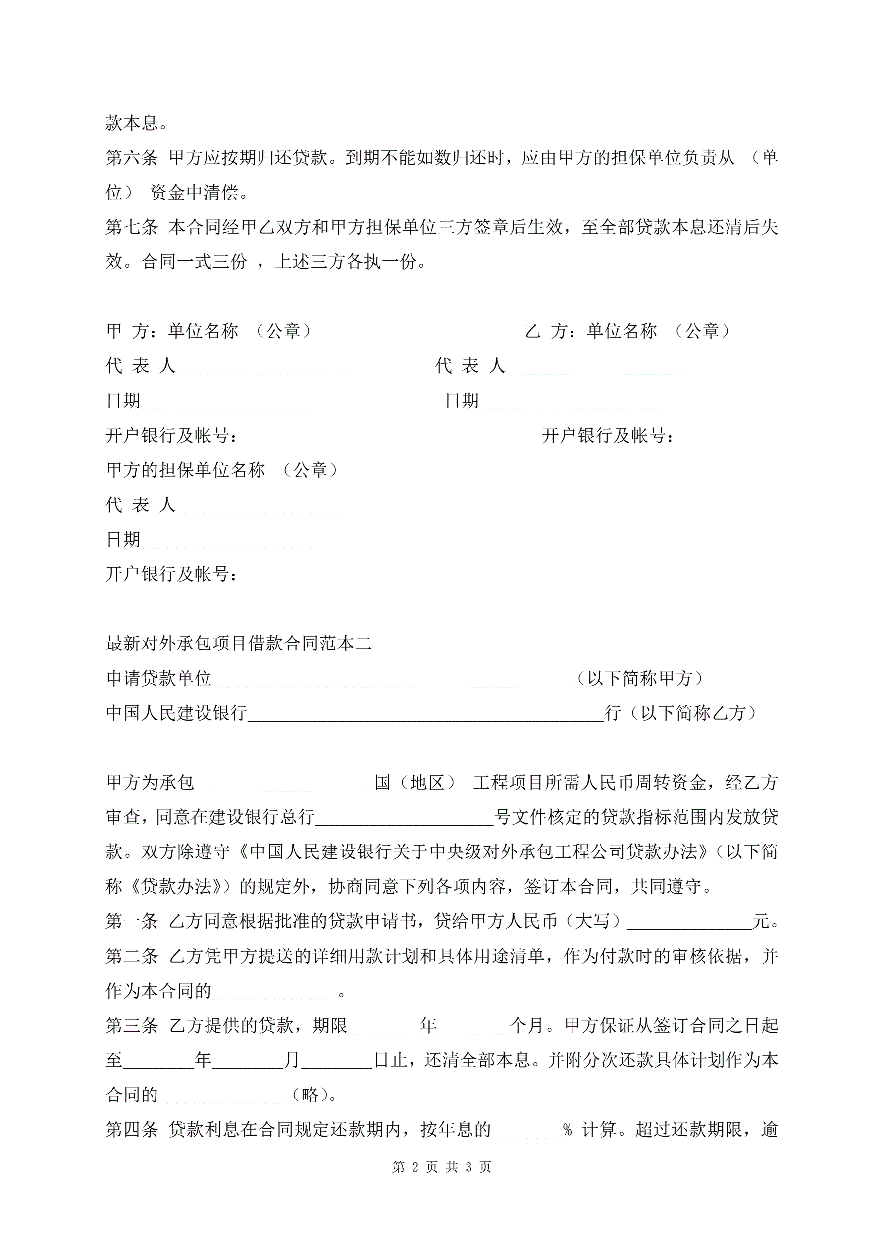 >最新对外承包项目借款合同范本