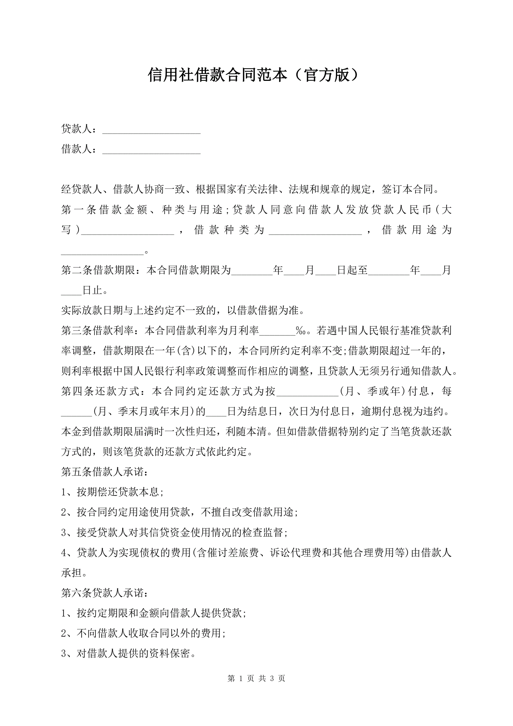 >信用社借款合同范本(官方版)