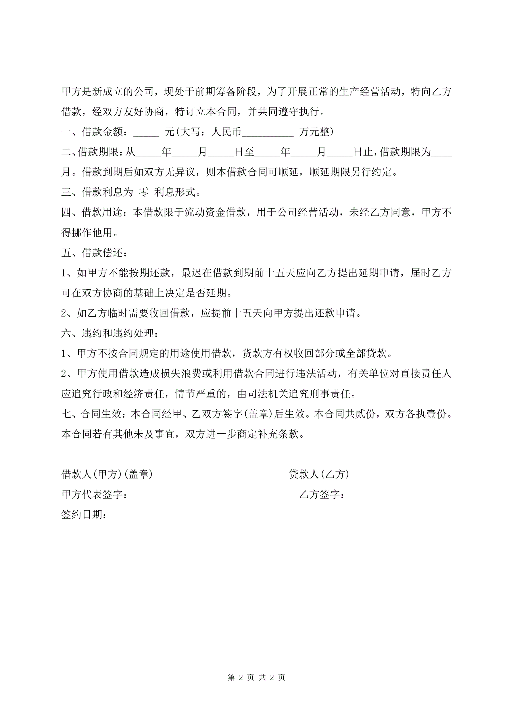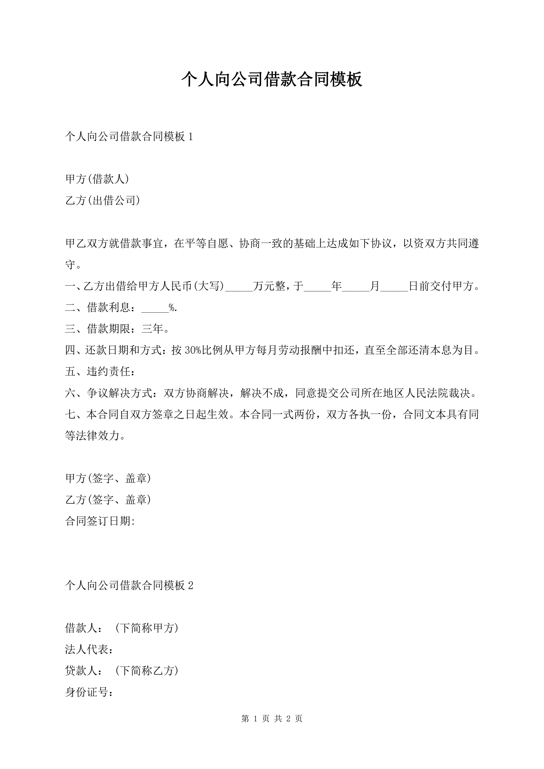 个人向公司借款合同模板