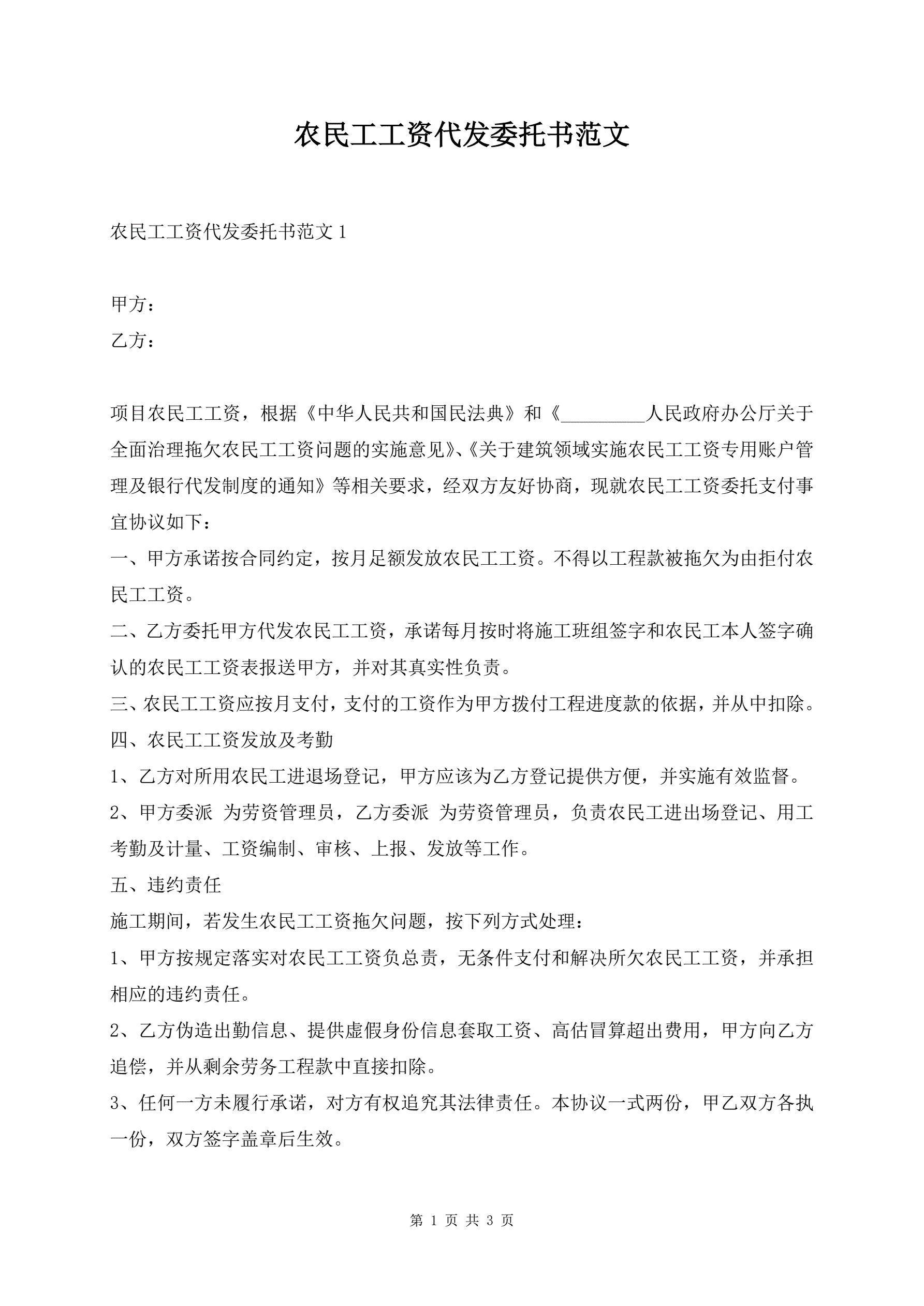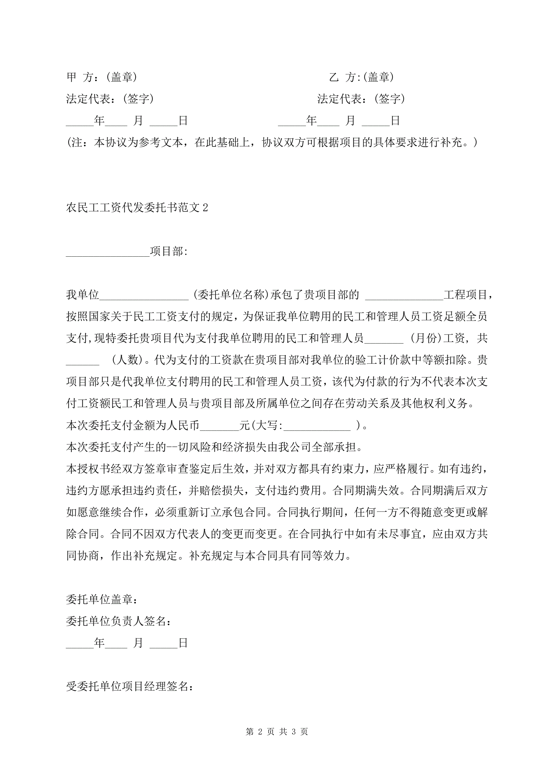 农民工工资代发委托书范文