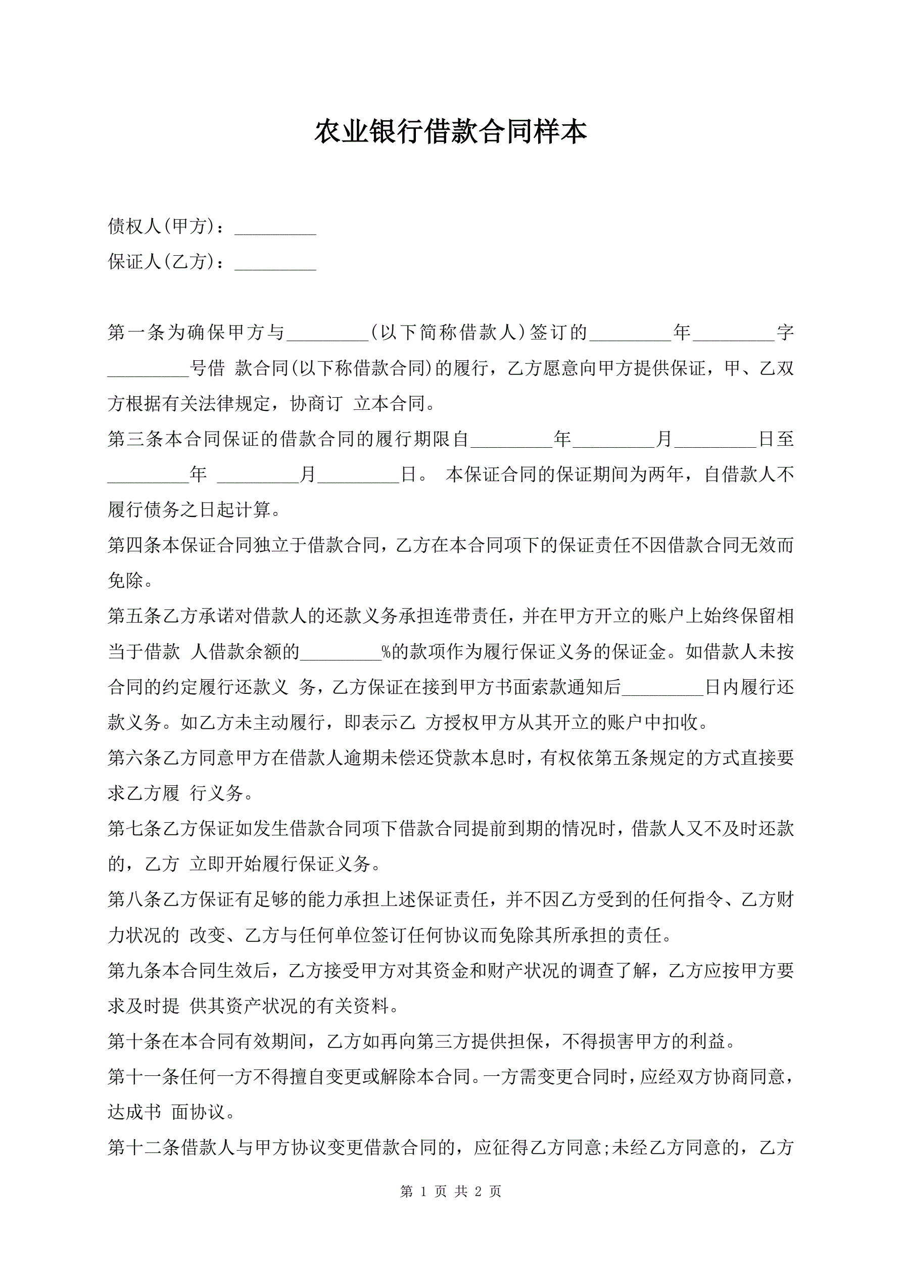 农业银行借款合同样本