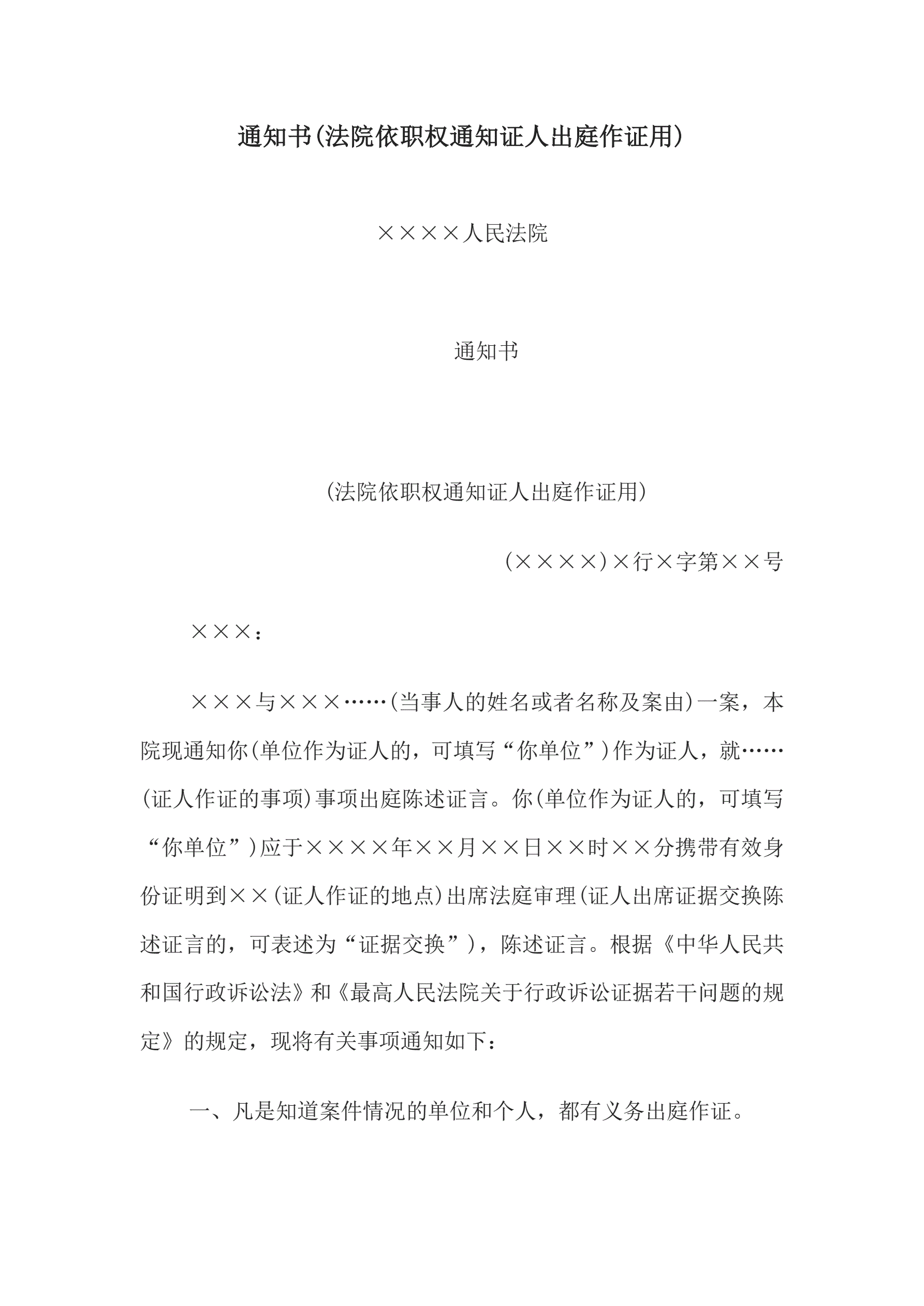 合同名称:通知书(法院依职权通知证人出庭作证用)