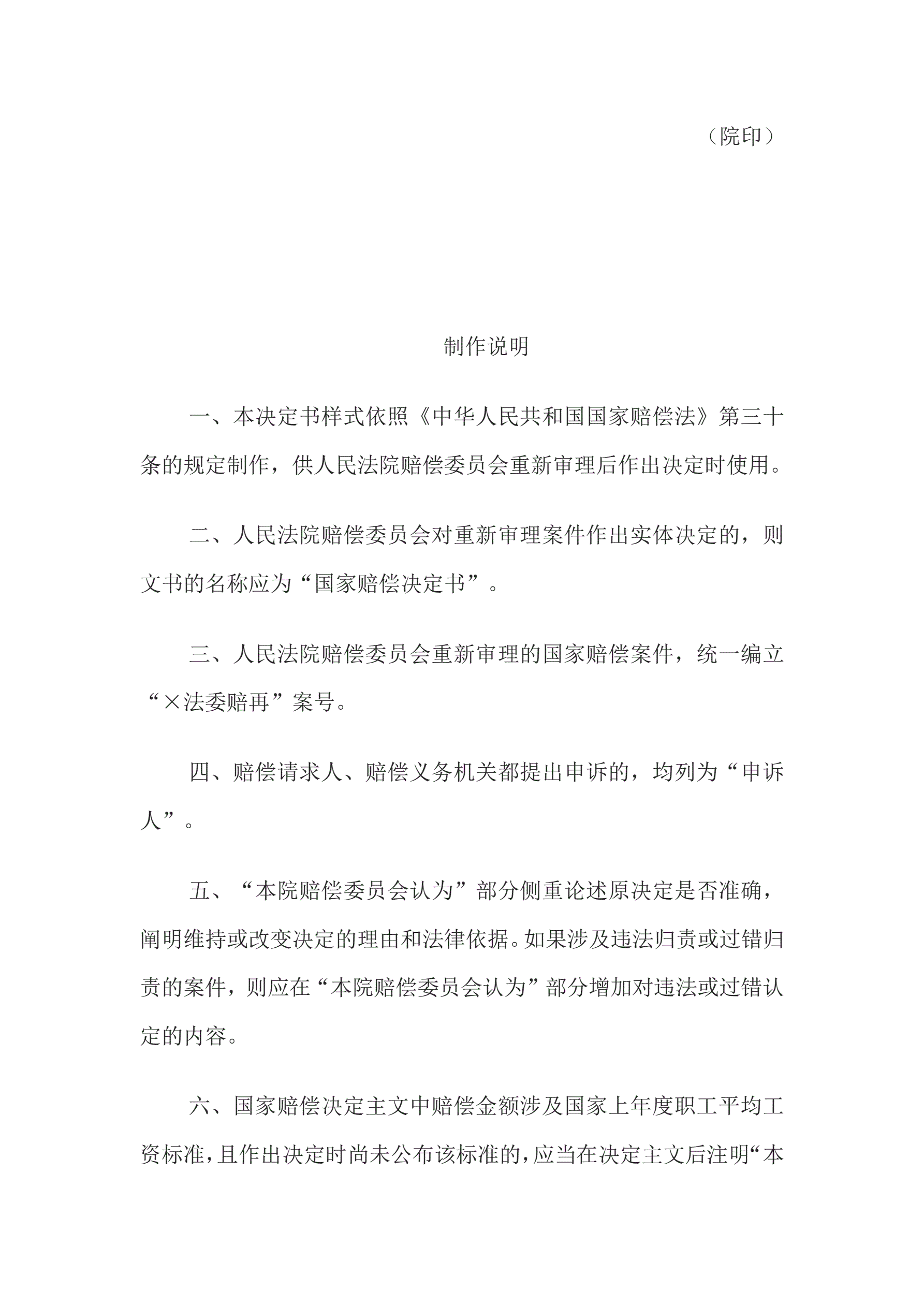 合同名称:决定书(人民法院赔偿委员会重新审理案件用)