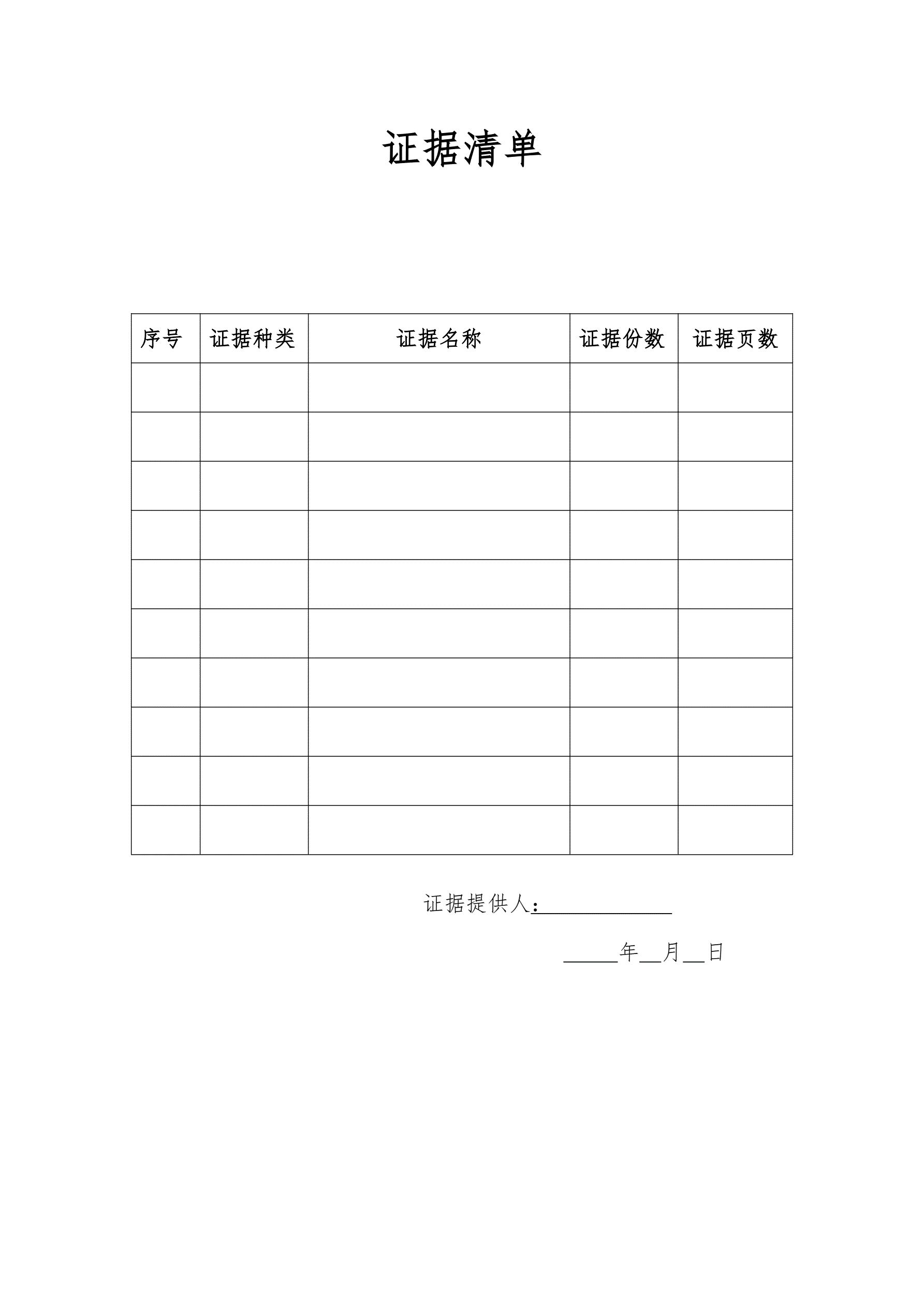 证据清单(表格)
