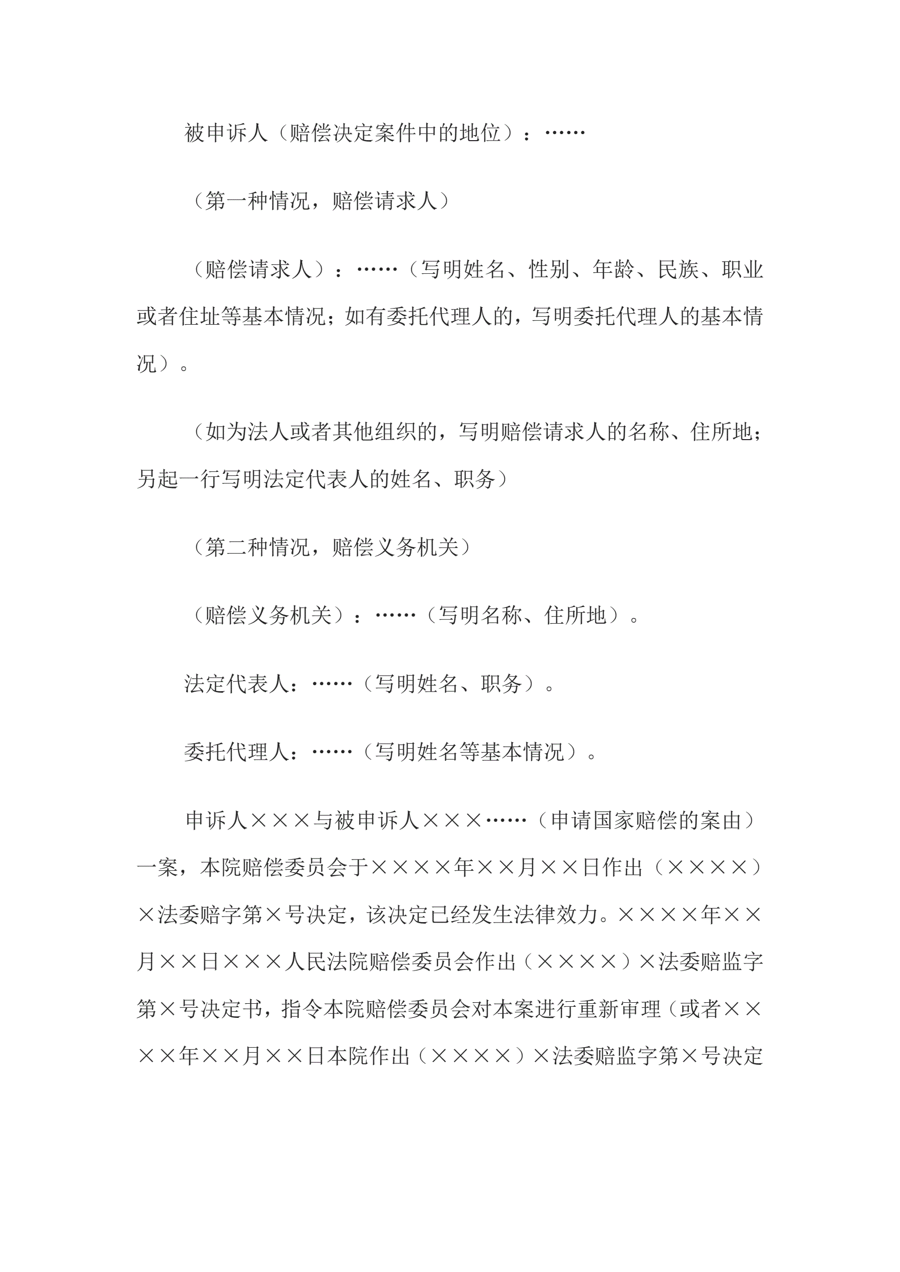 >决定书(人民法院赔偿委员会重新审理案件用)