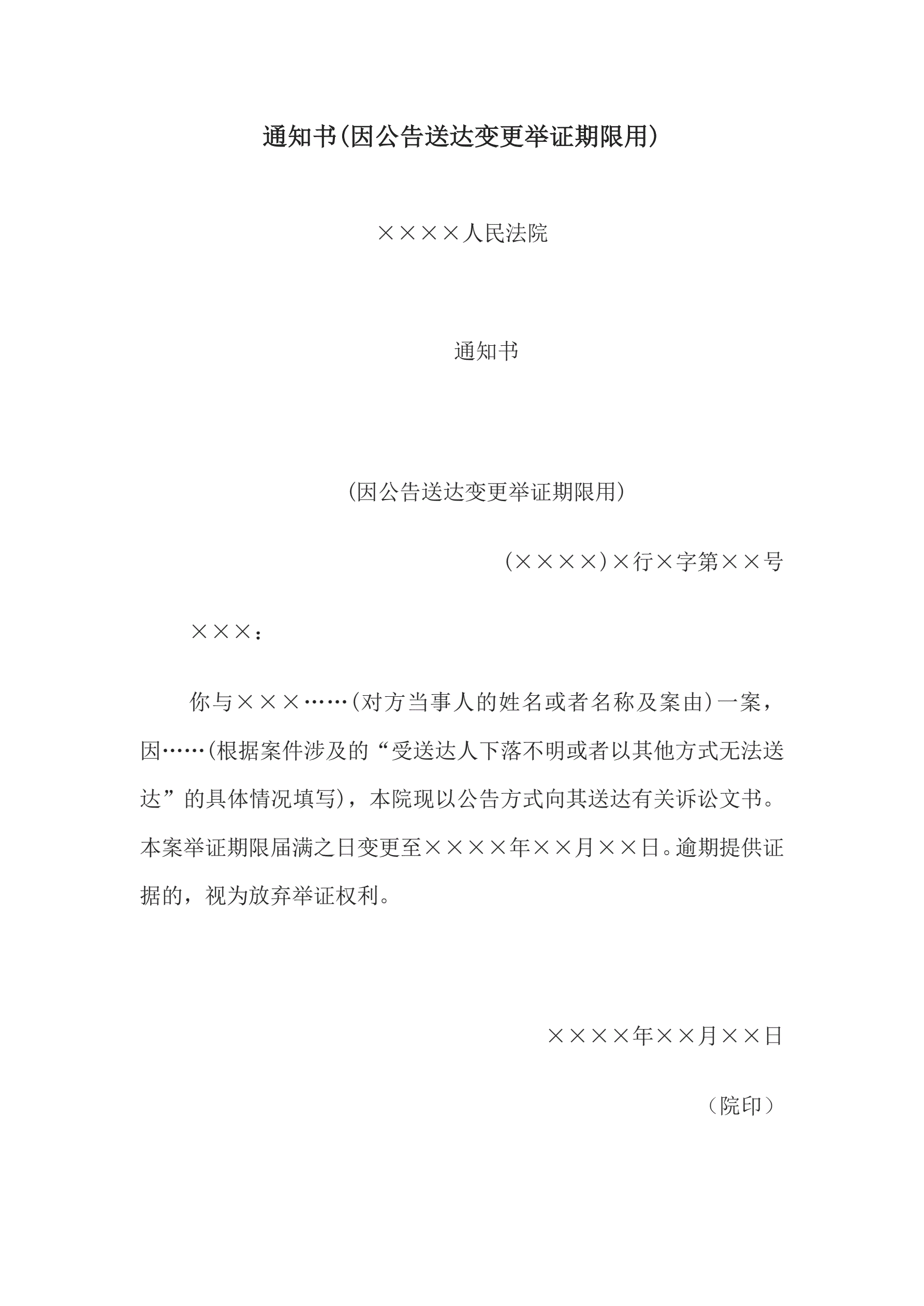 >通知书(因公告送达变更举证期限用)