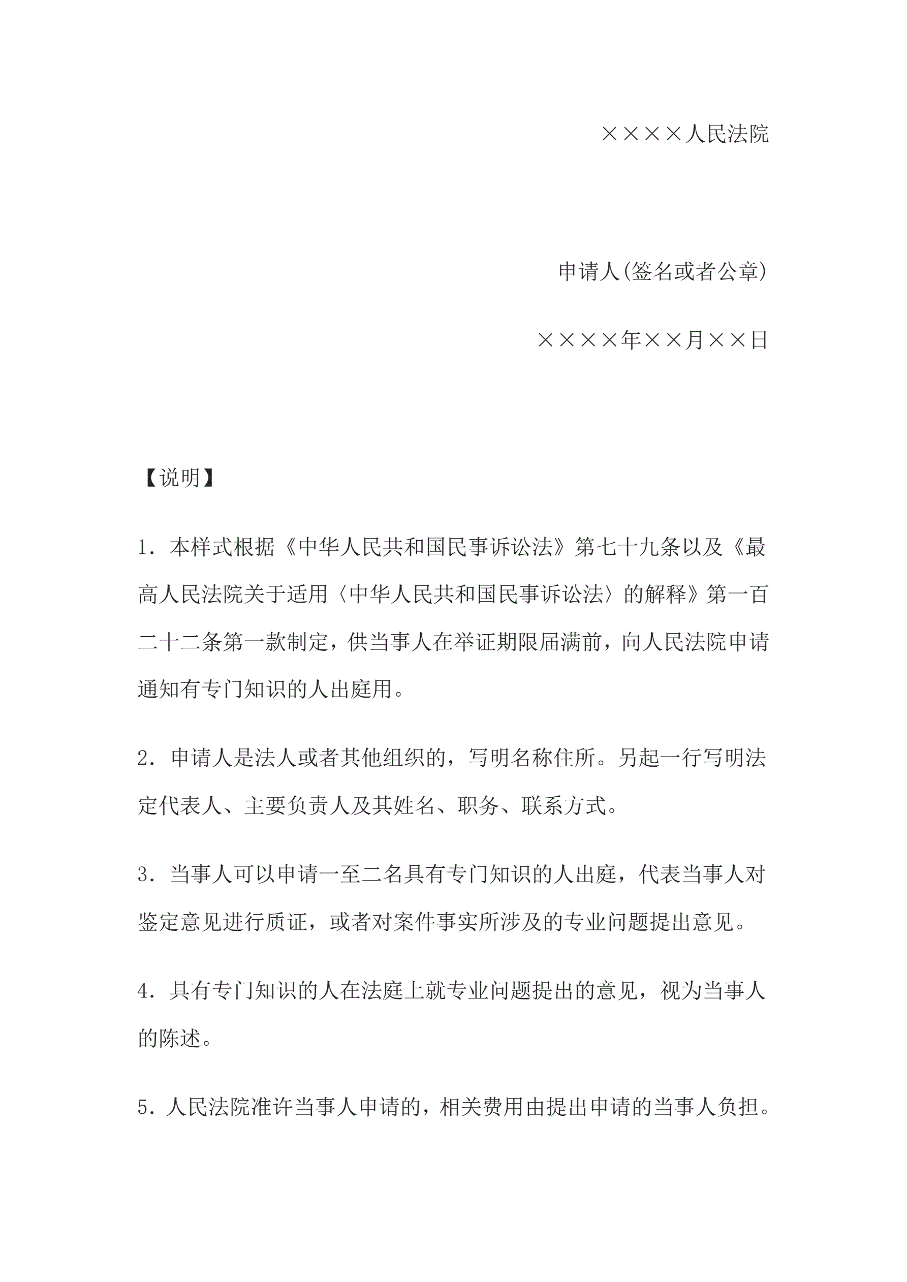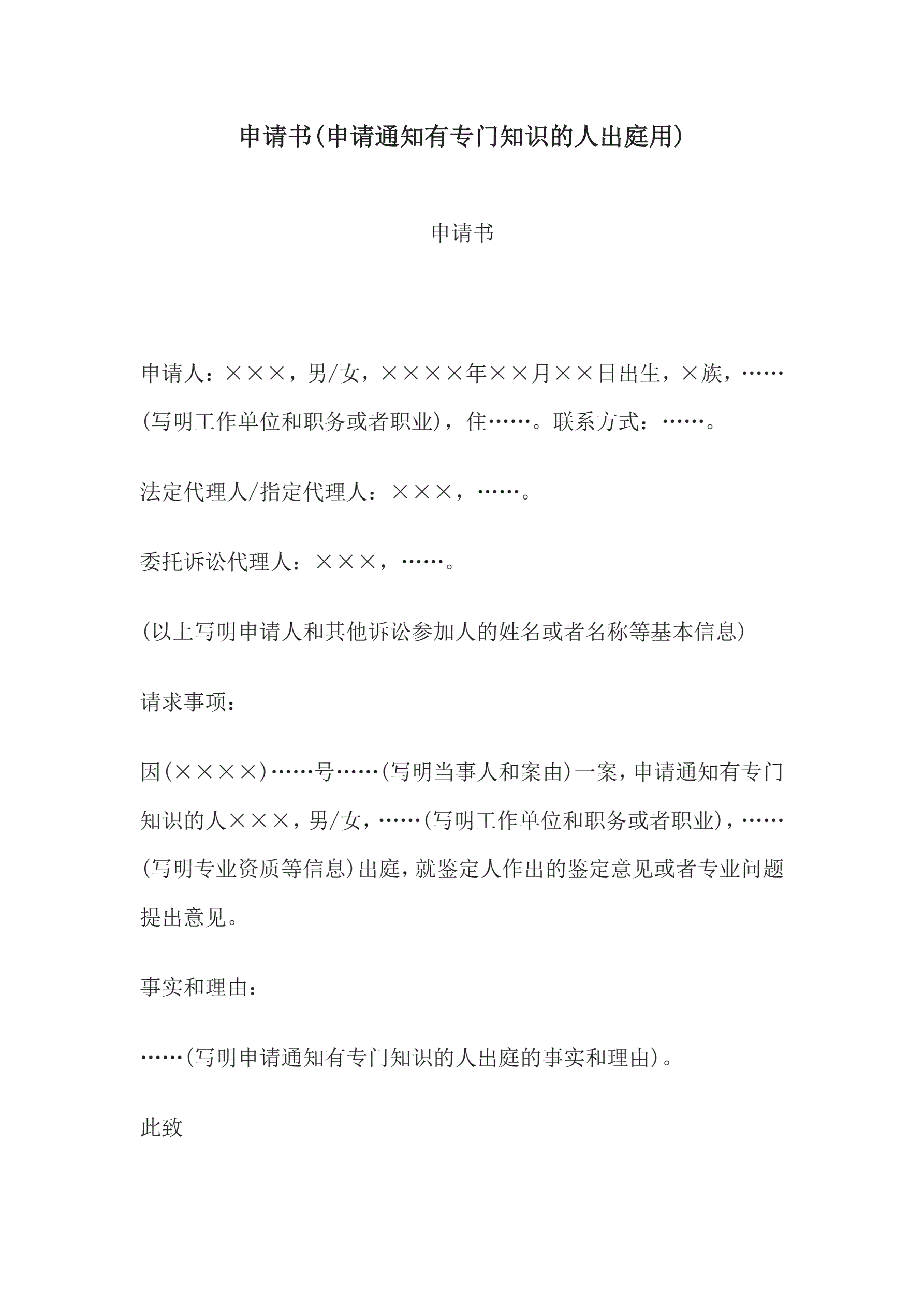 >申请书(申请通知有专门知识的人出庭用)