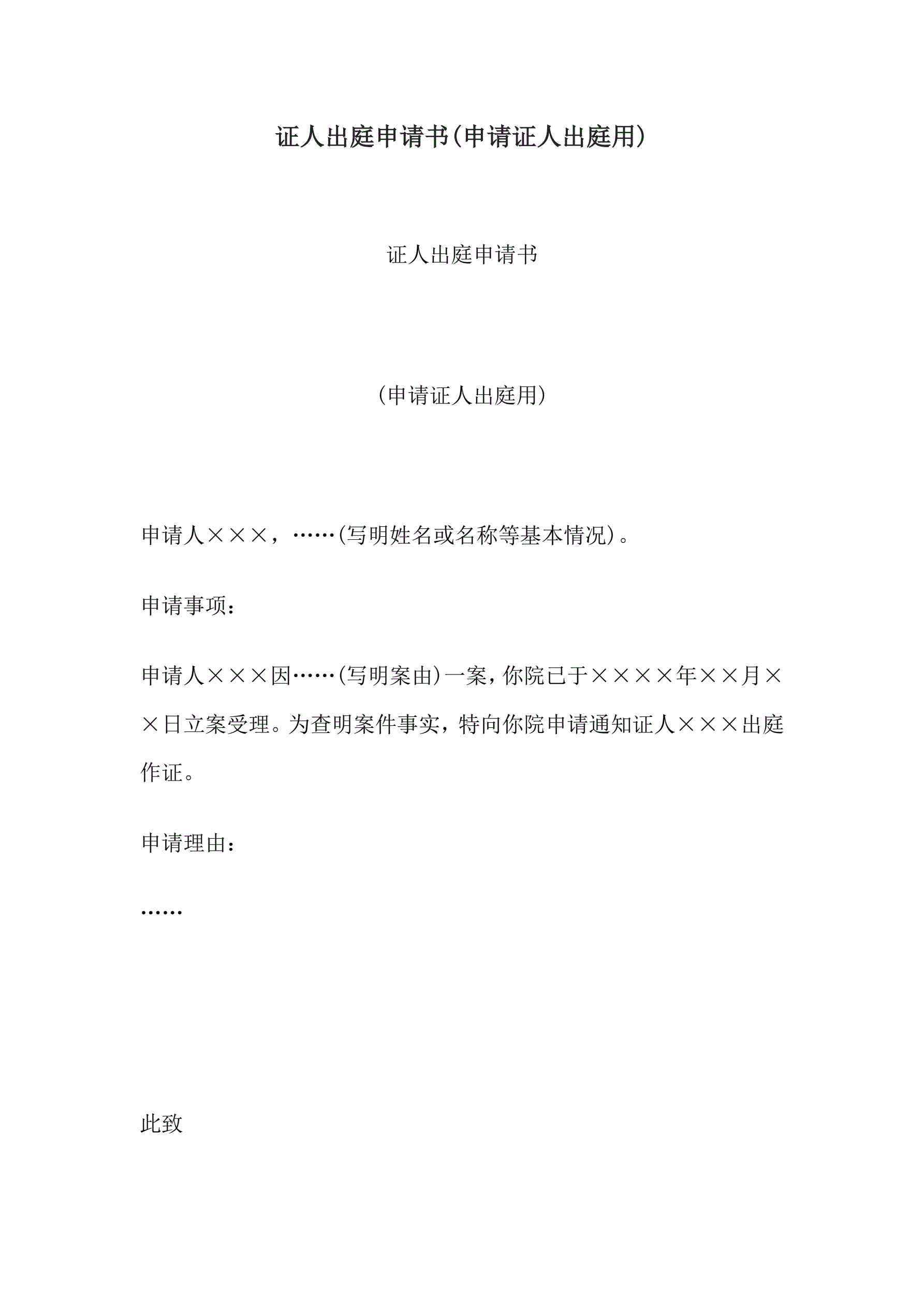 证人出庭申请书(申请证人出庭用)