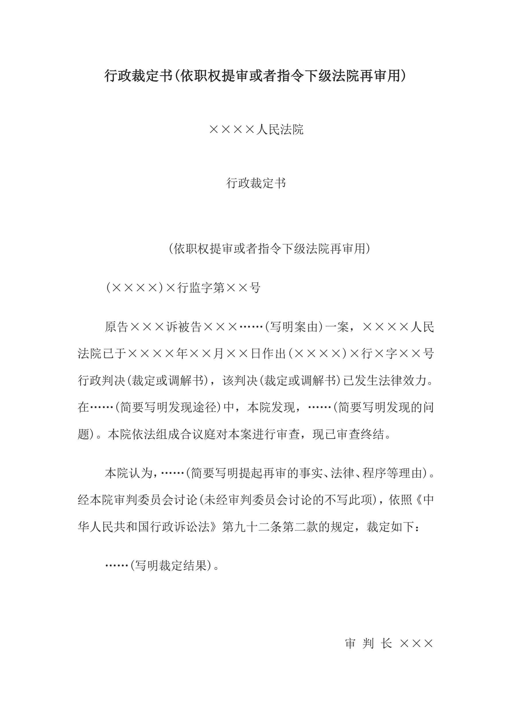 行政裁定书(依职权提审或者指令下级法院再审用)