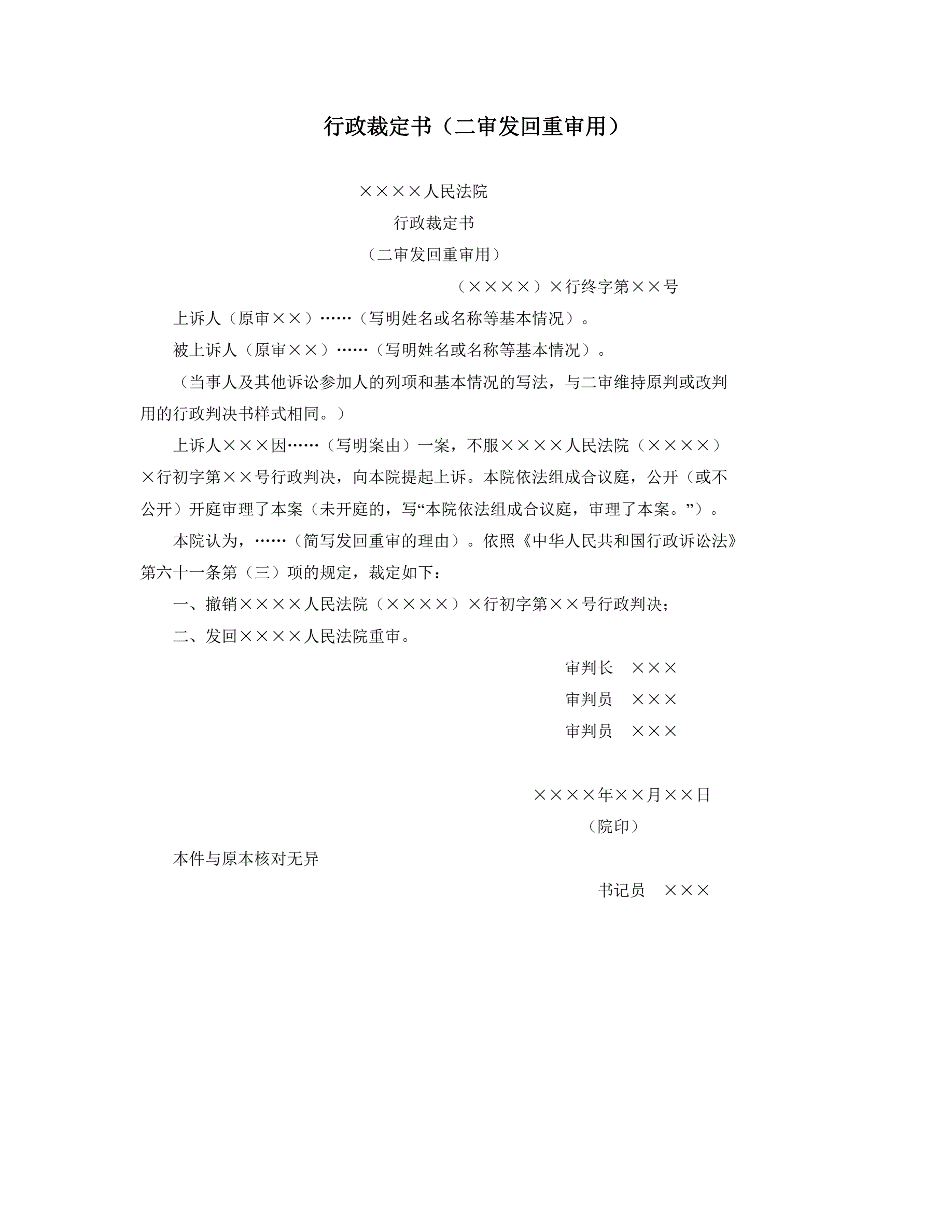 合同名称:行政裁定书(二审发回重审用)