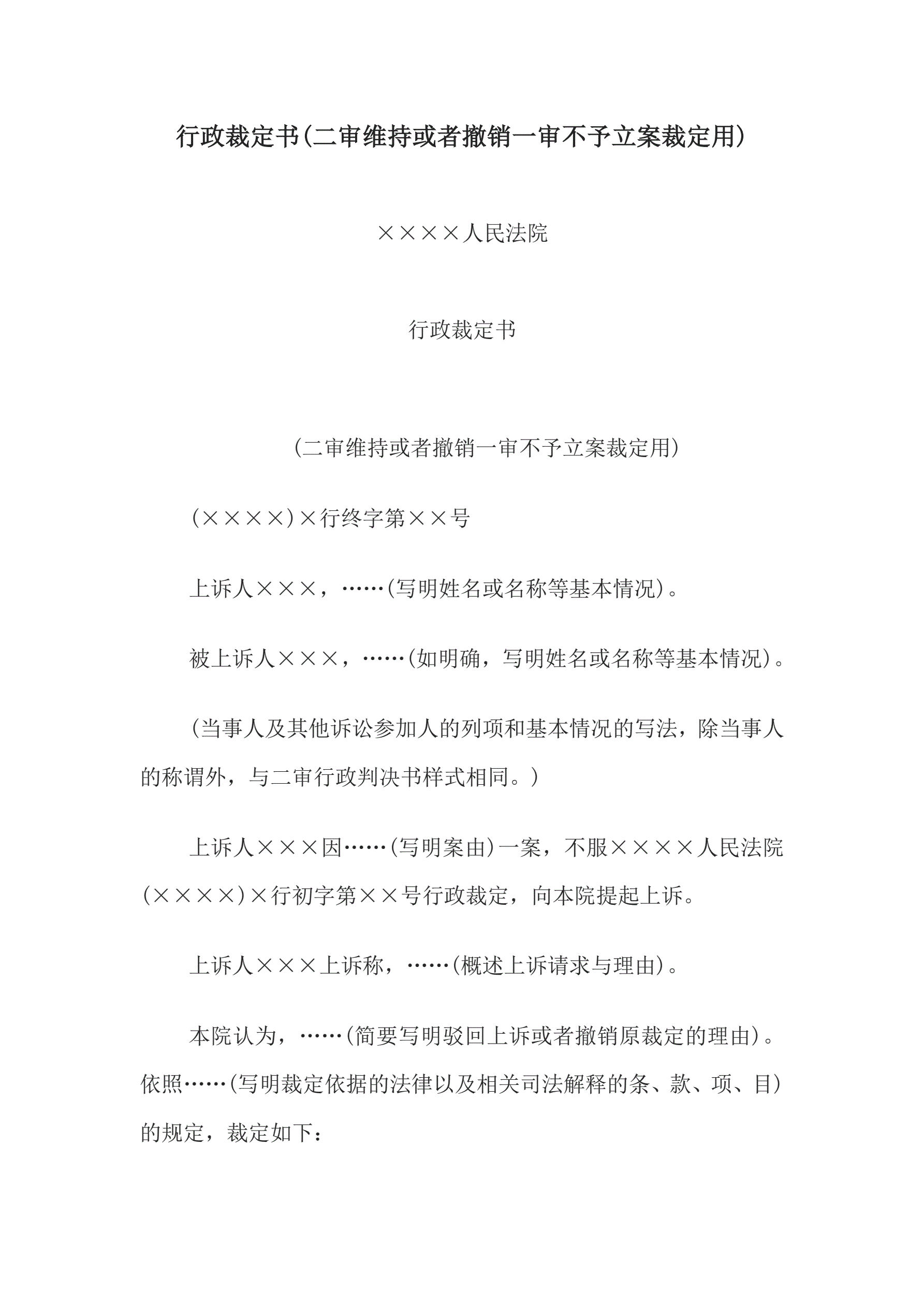 >行政裁定书(二审维持或者撤销一审不予立案裁定用)