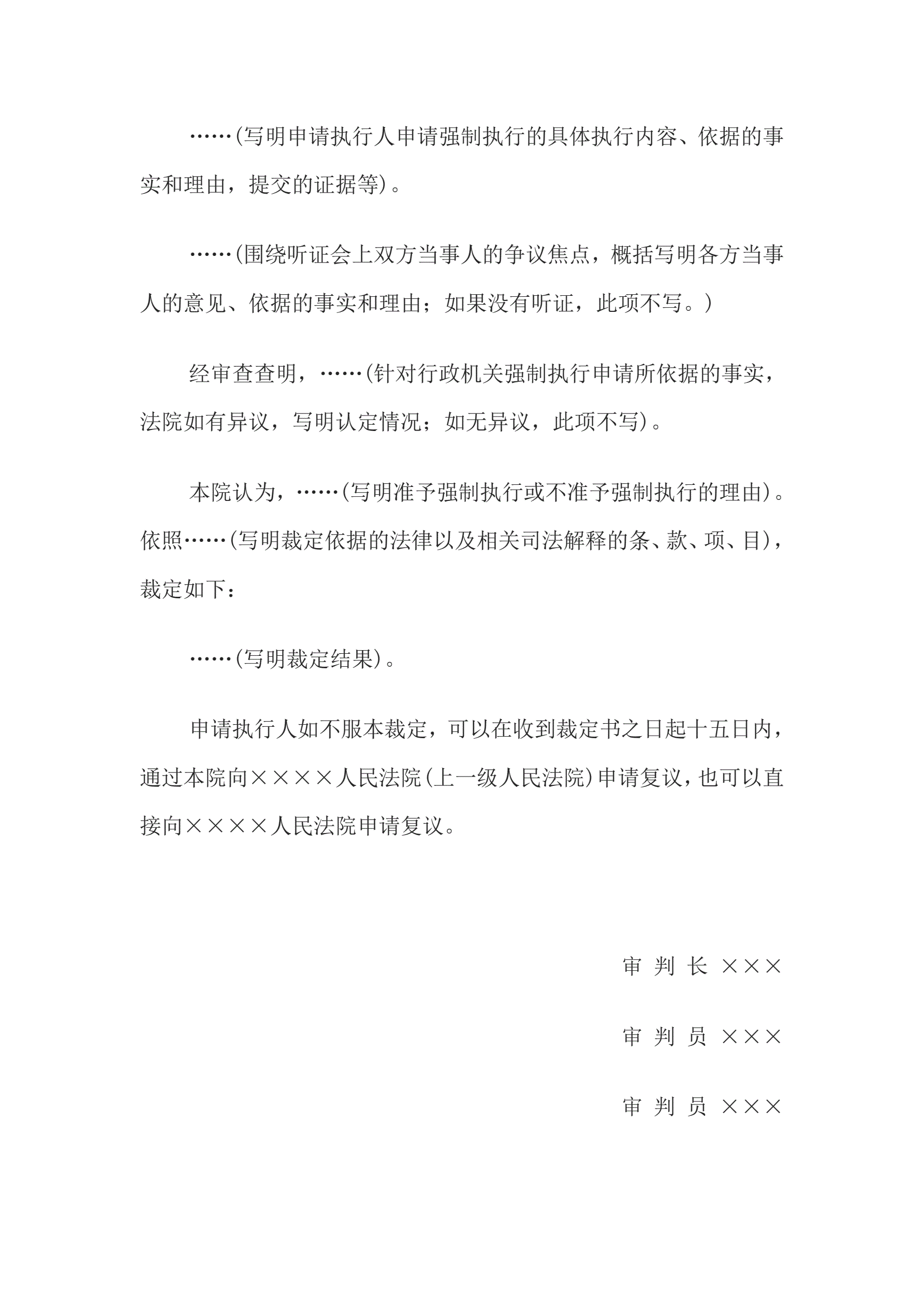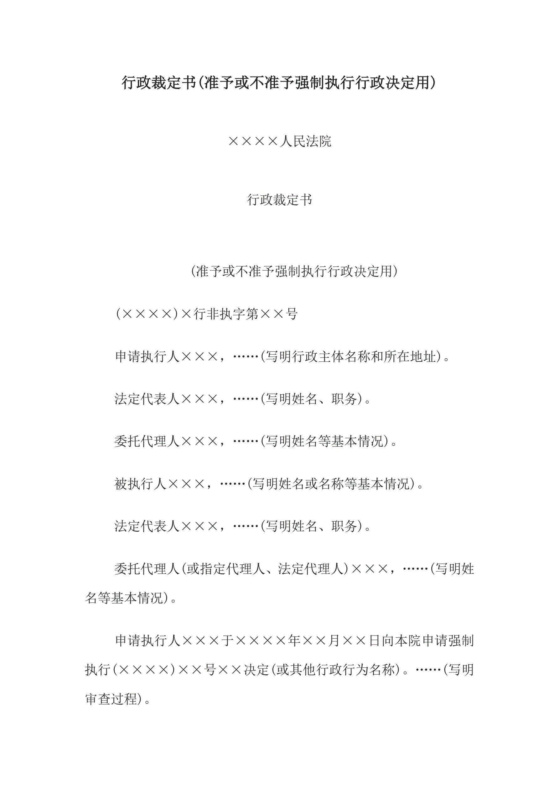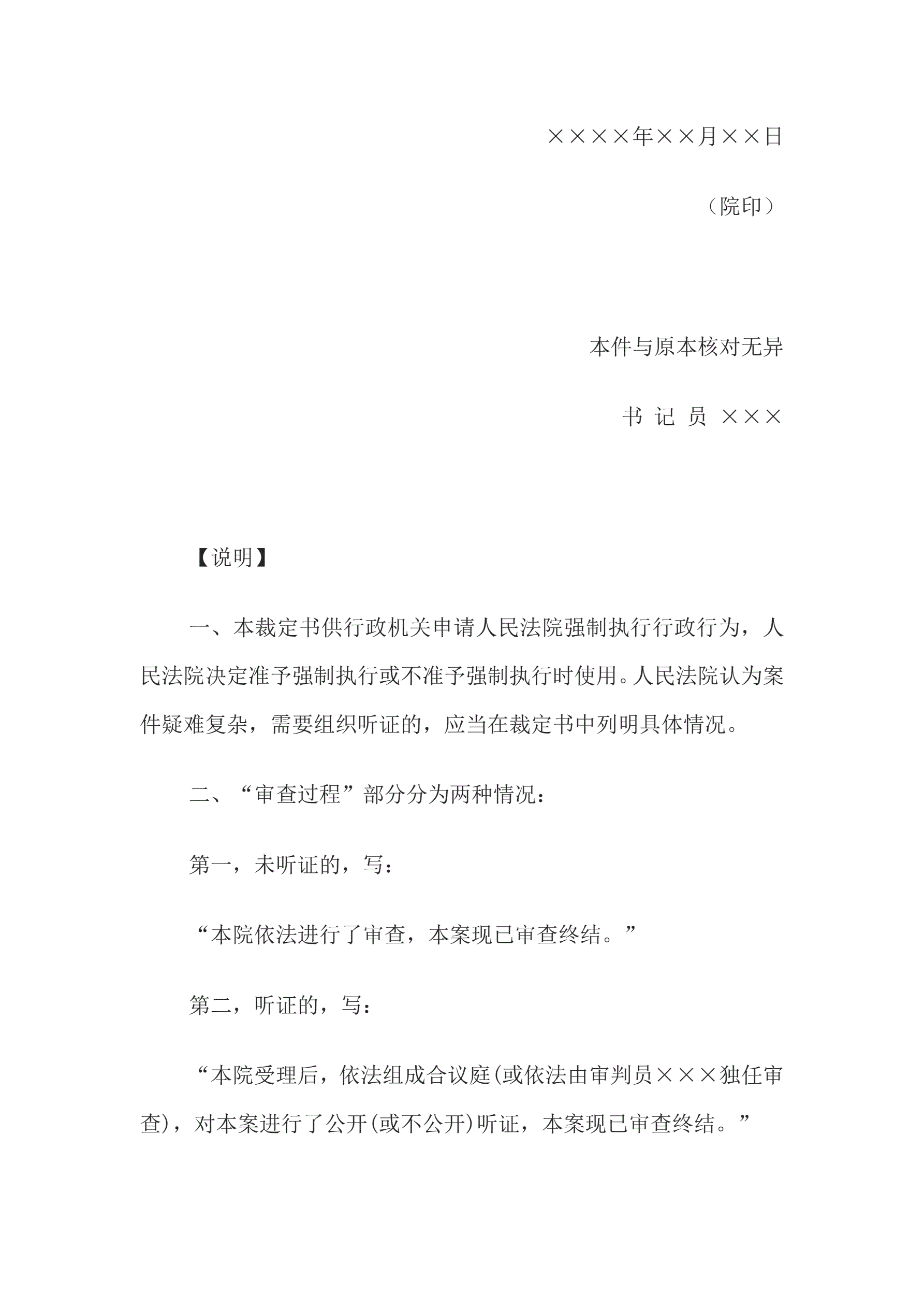 >行政裁定书(准予或不准予强制执行行政决定用)