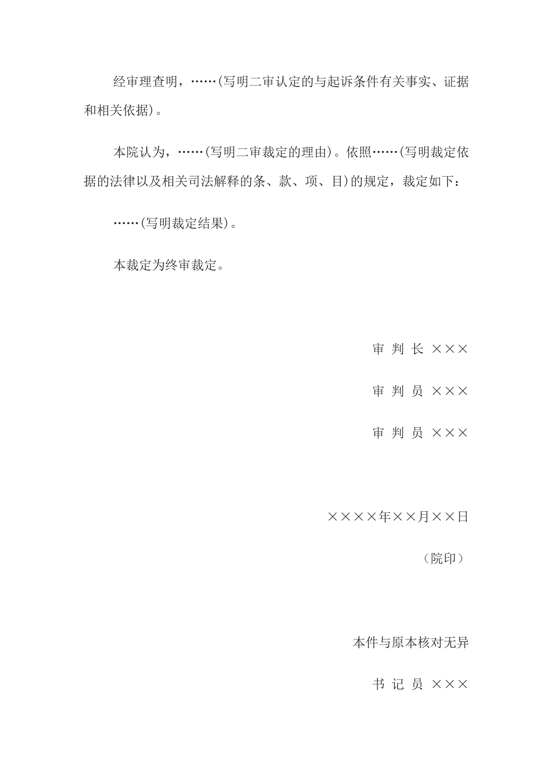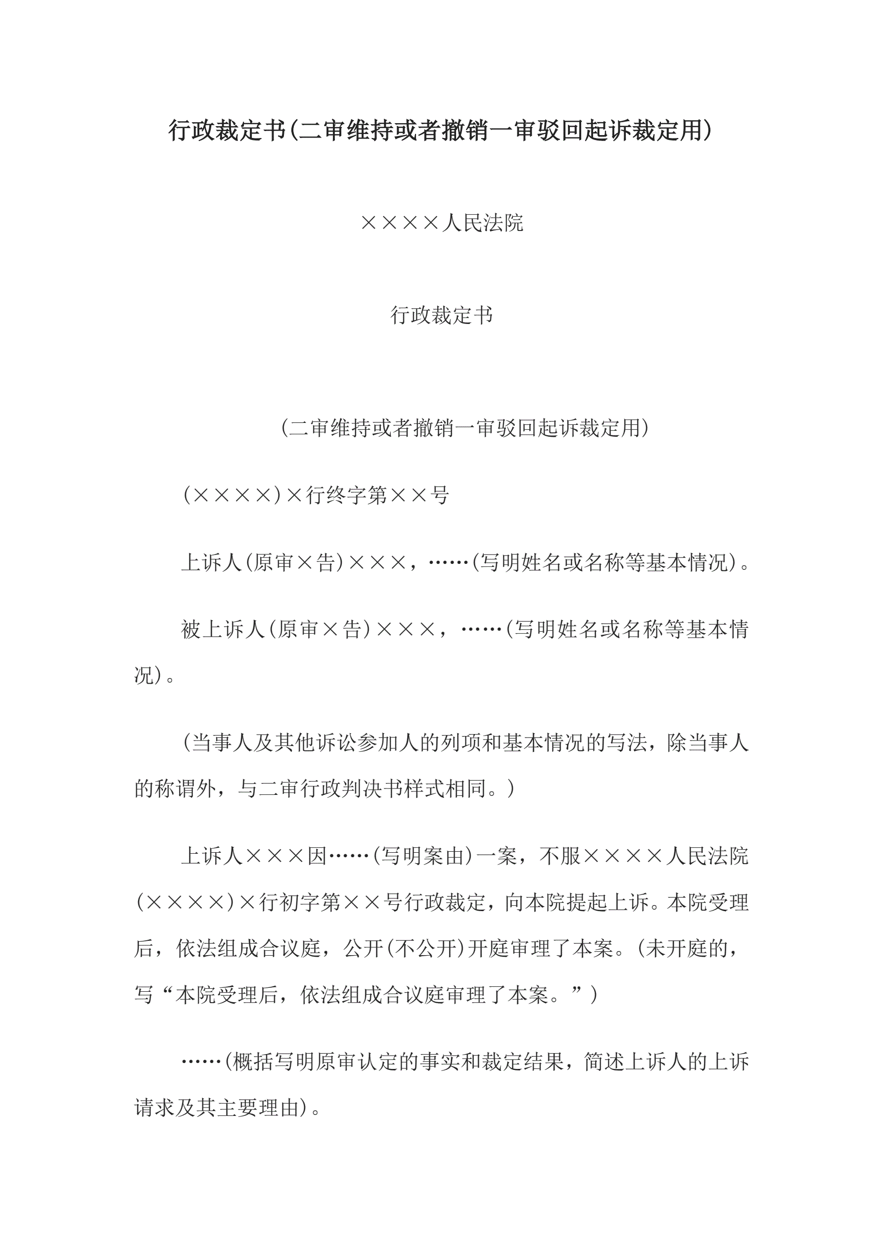 >行政裁定书(二审维持或者撤销一审驳回起诉裁定用)