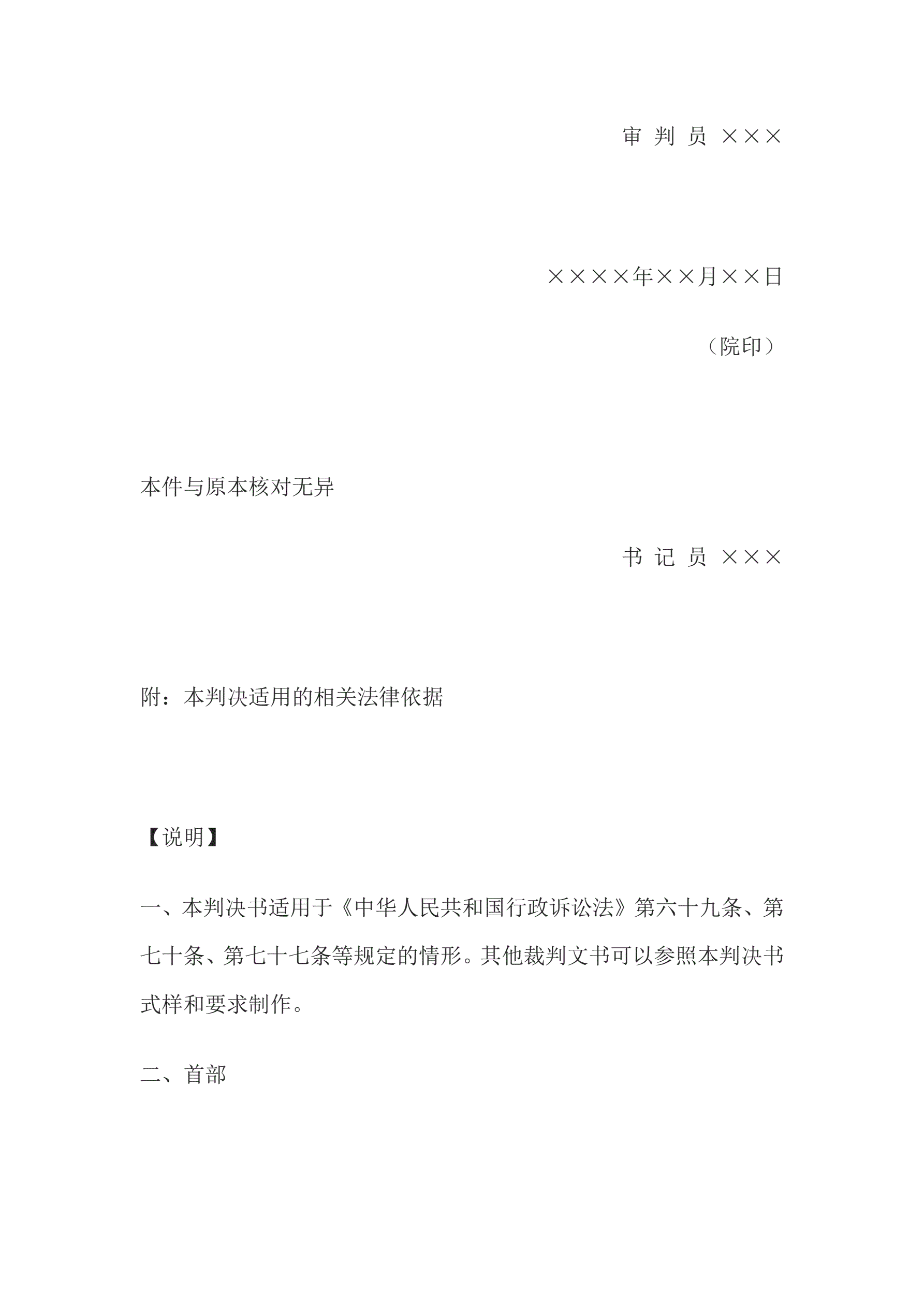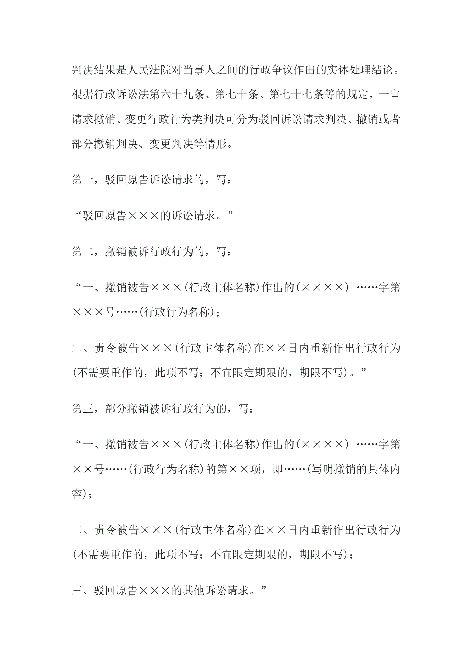 合同名称:行政判决书(一审请求撤销、变更行政行为类案件用)
