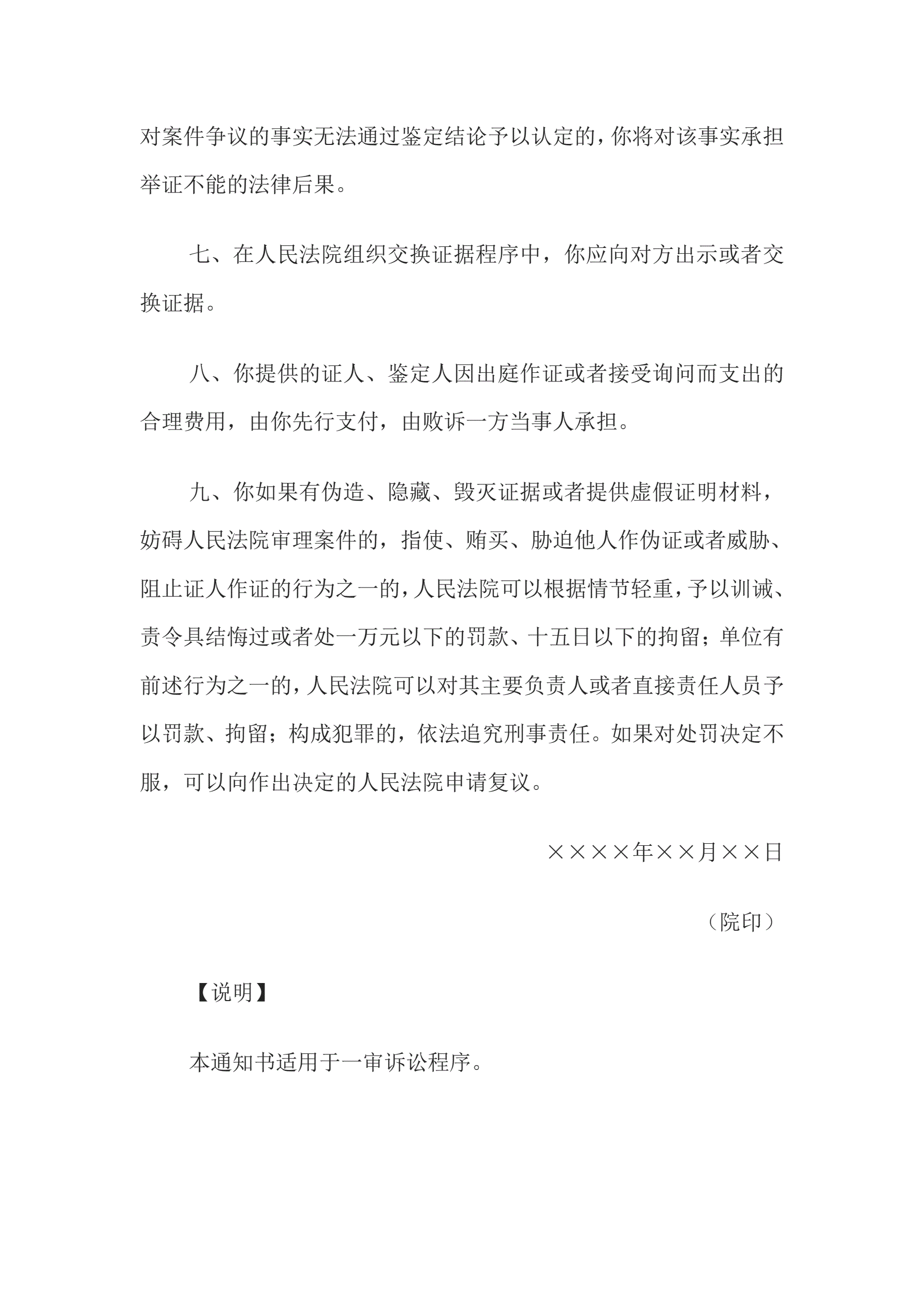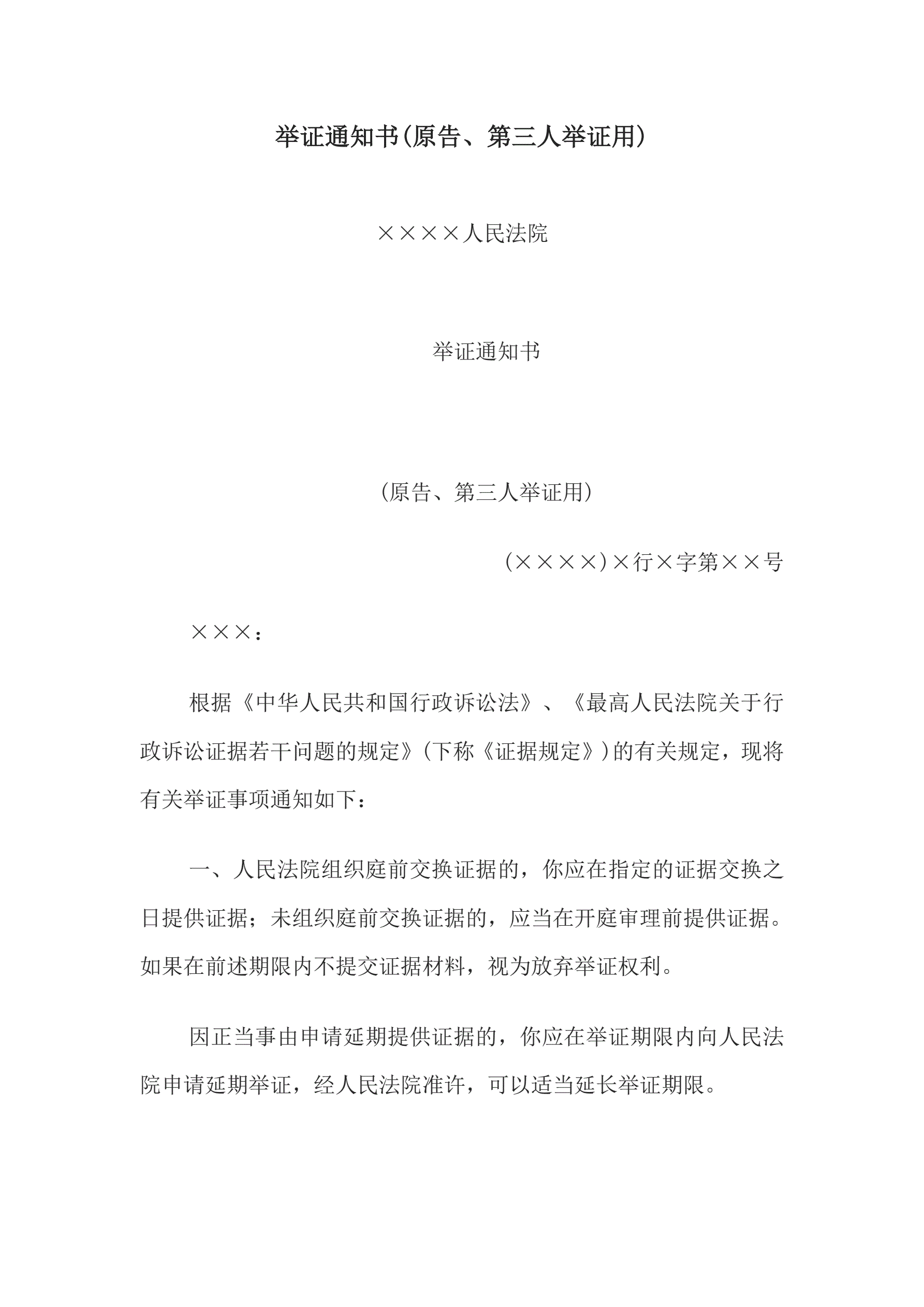 >举证通知书(原告、第三人举证用)