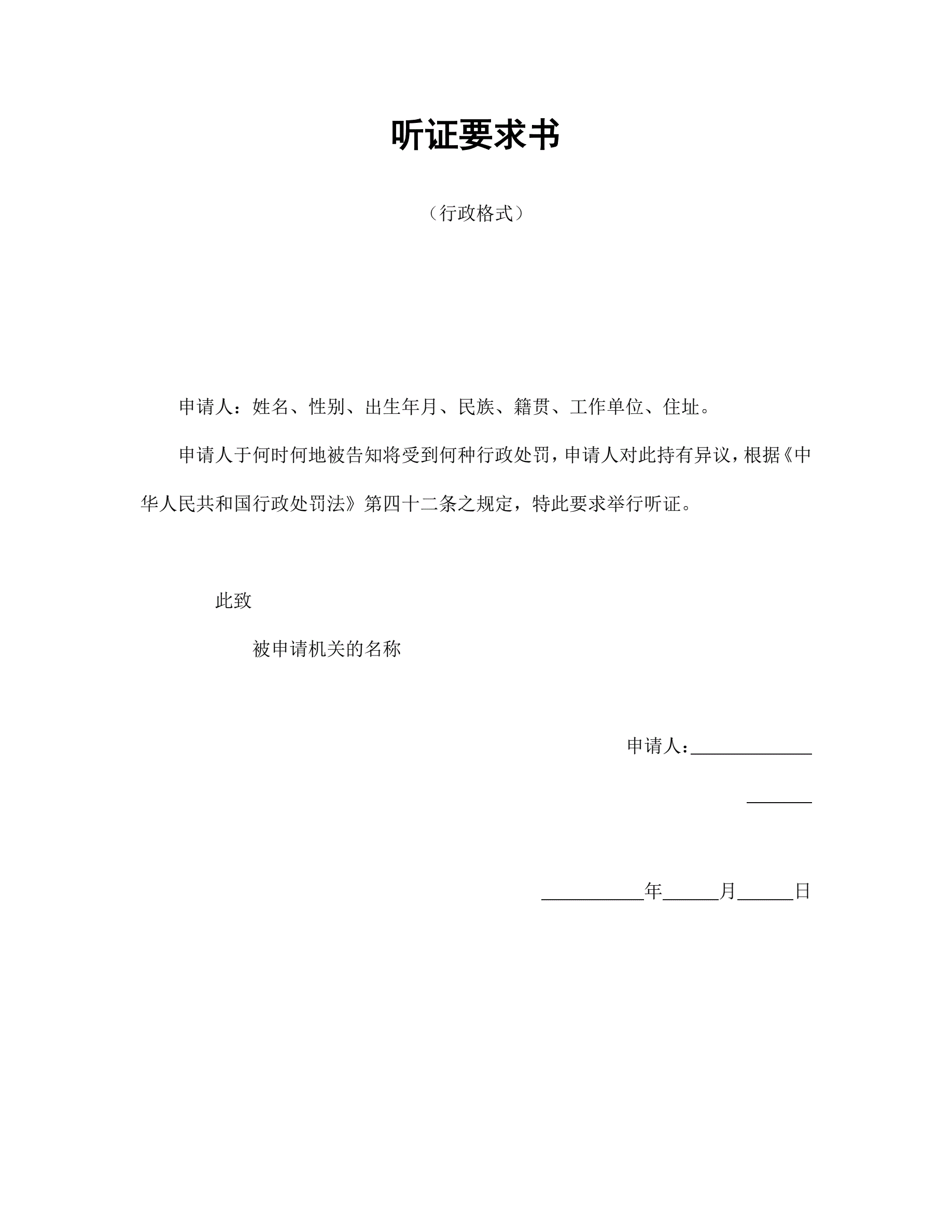 听证要求书(行政格式)