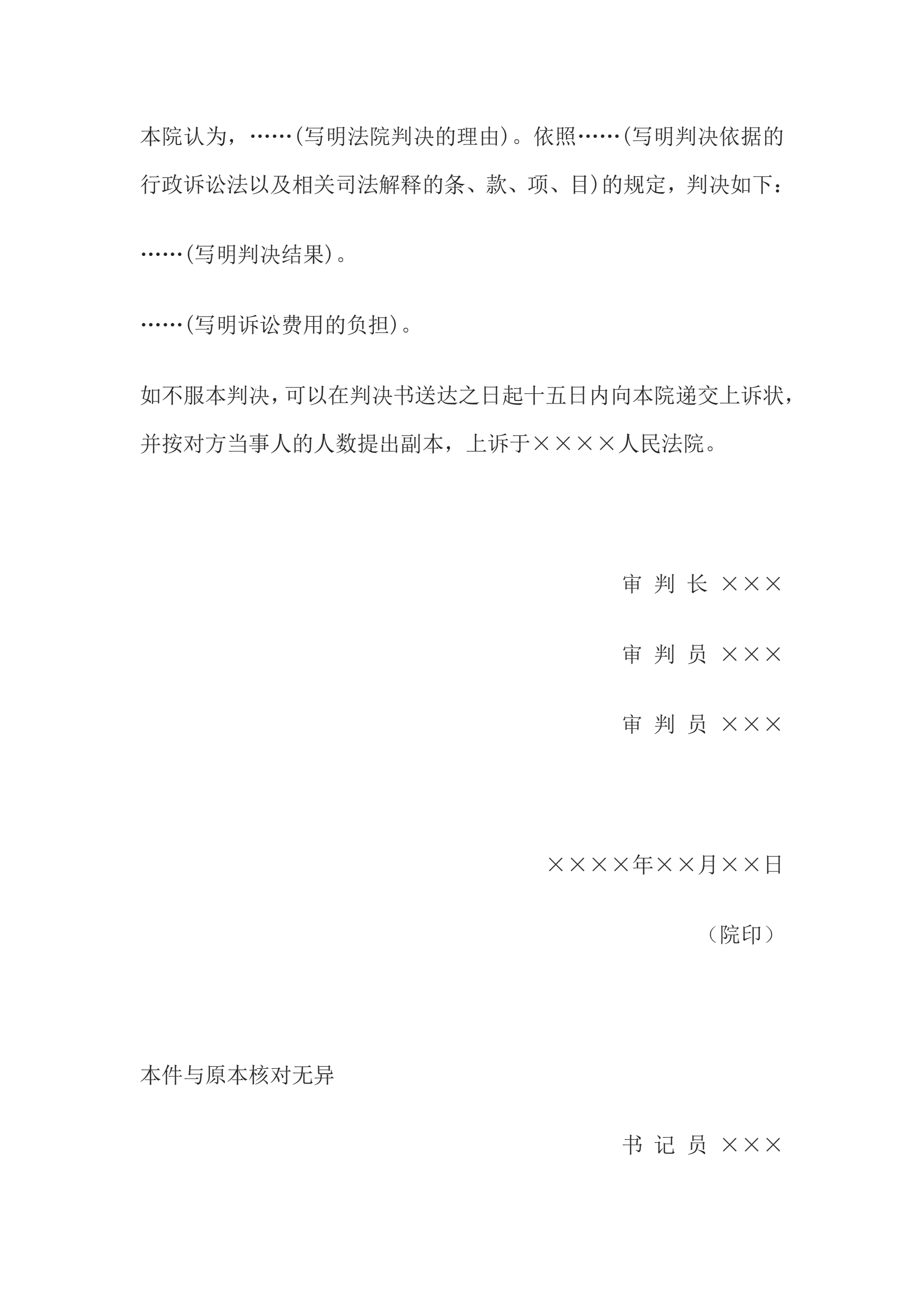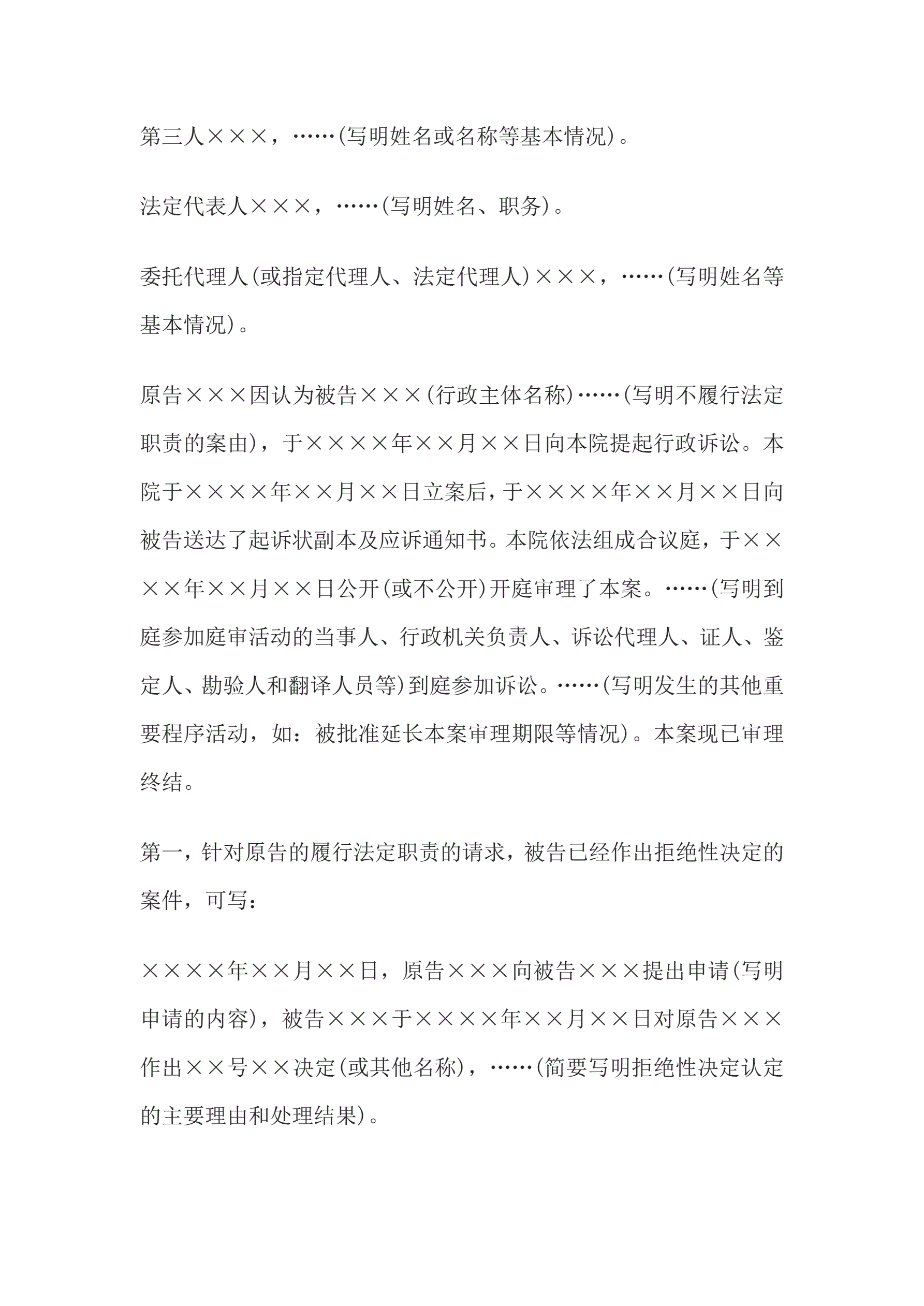 >行政判决书(一审请求履行法定职责类案件用)