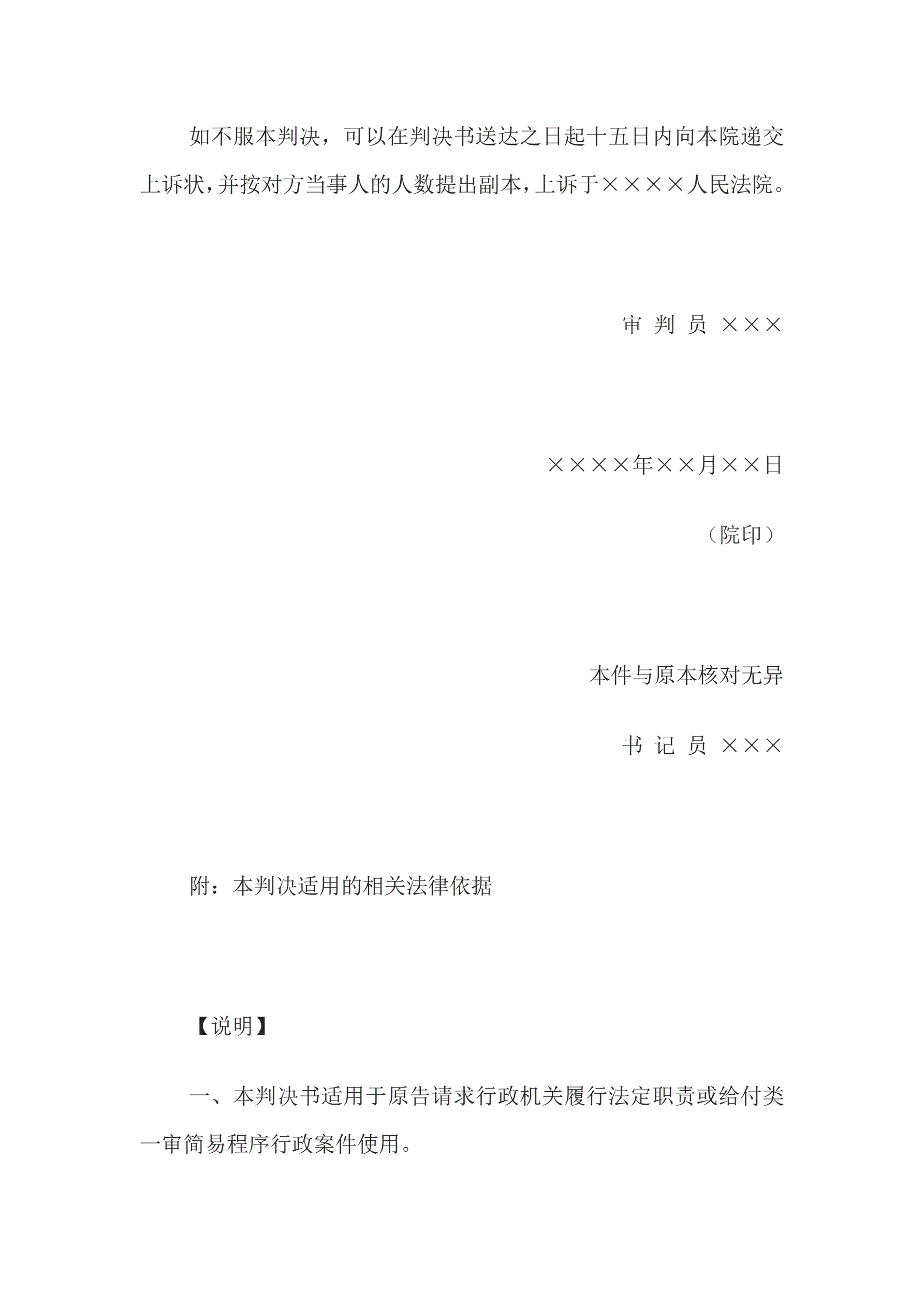 >行政判决书(一审请求履行法定职责或给付类简易程序案件用)