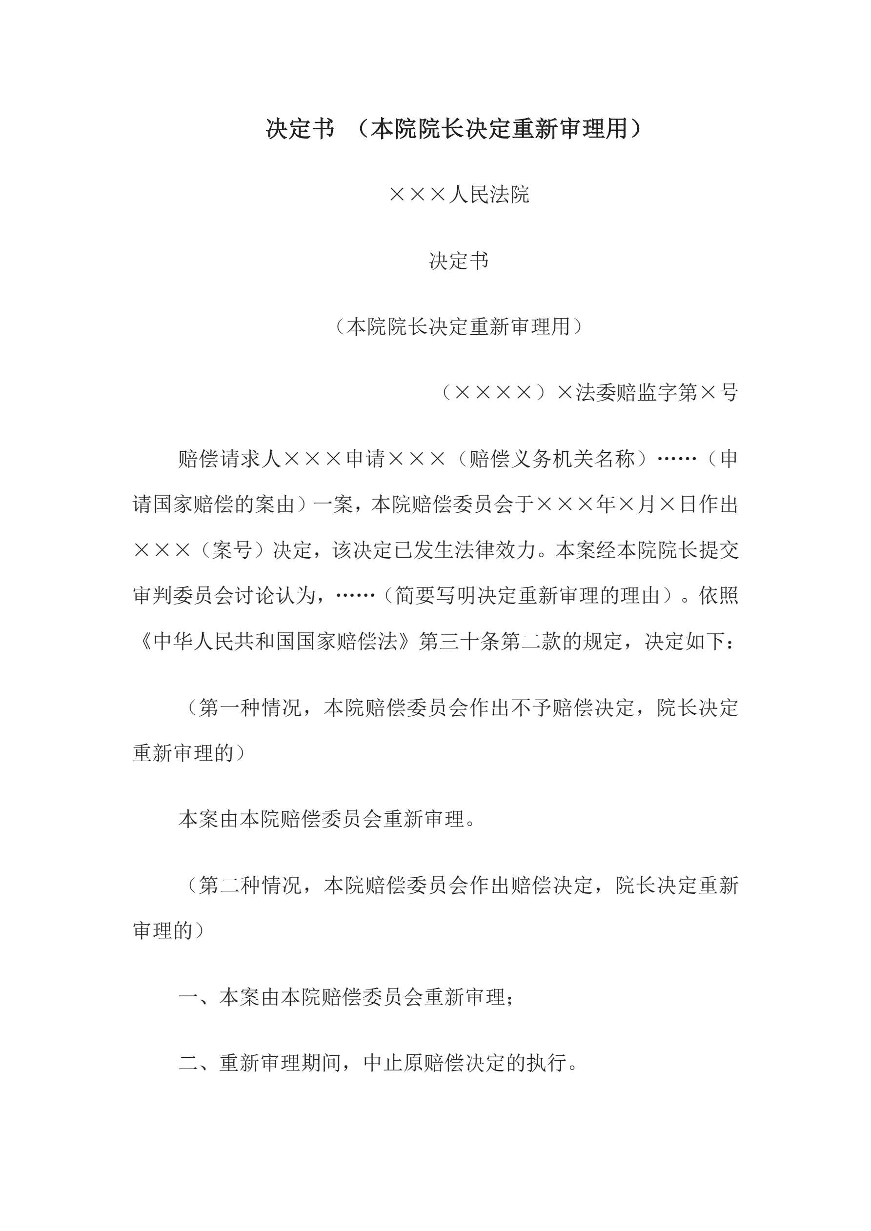 合同名称:决定书(本院院长决定重新审理用)