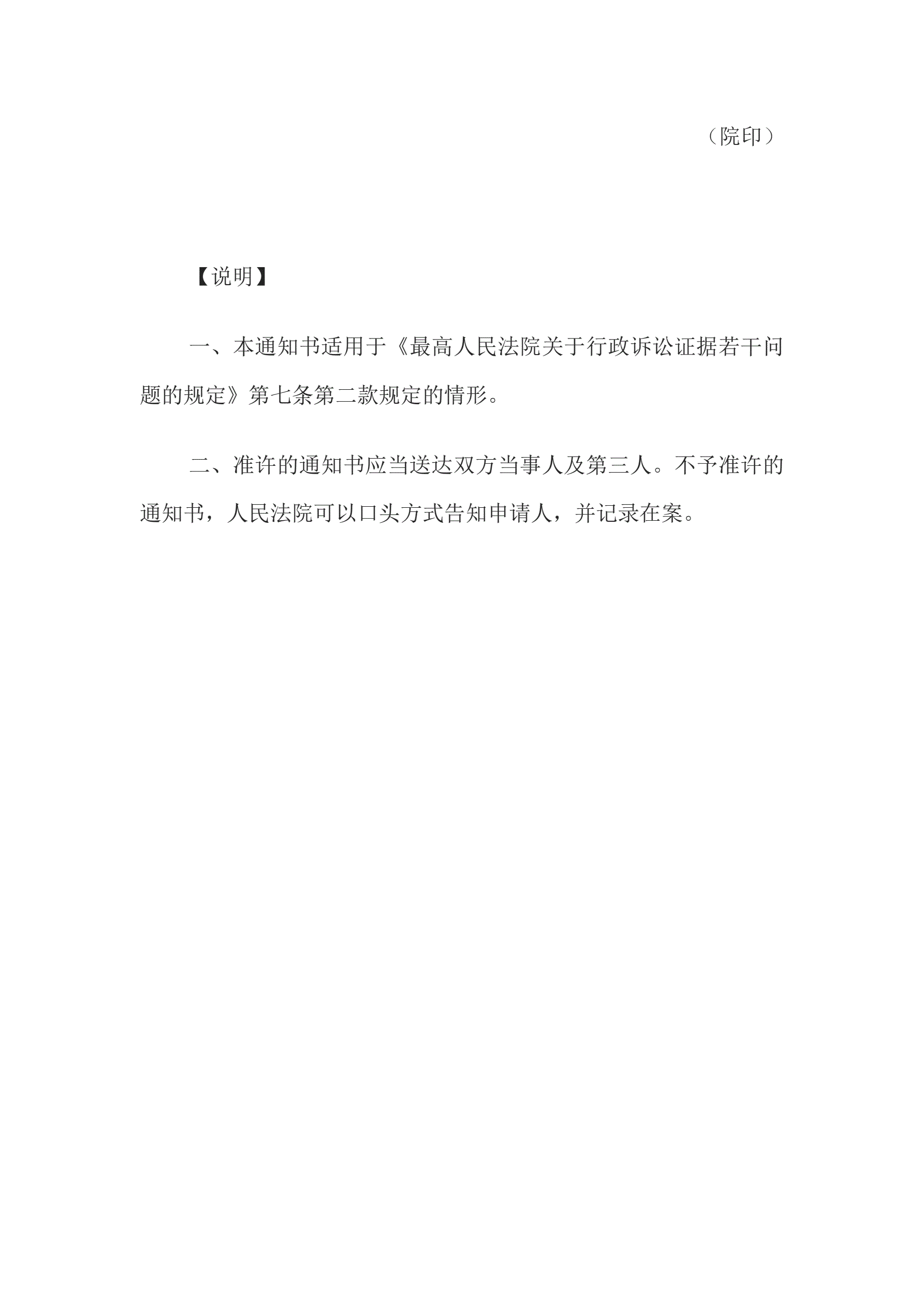 >通知书(准许或不予准许原告或者第三人在第二审程序中提供证据用)