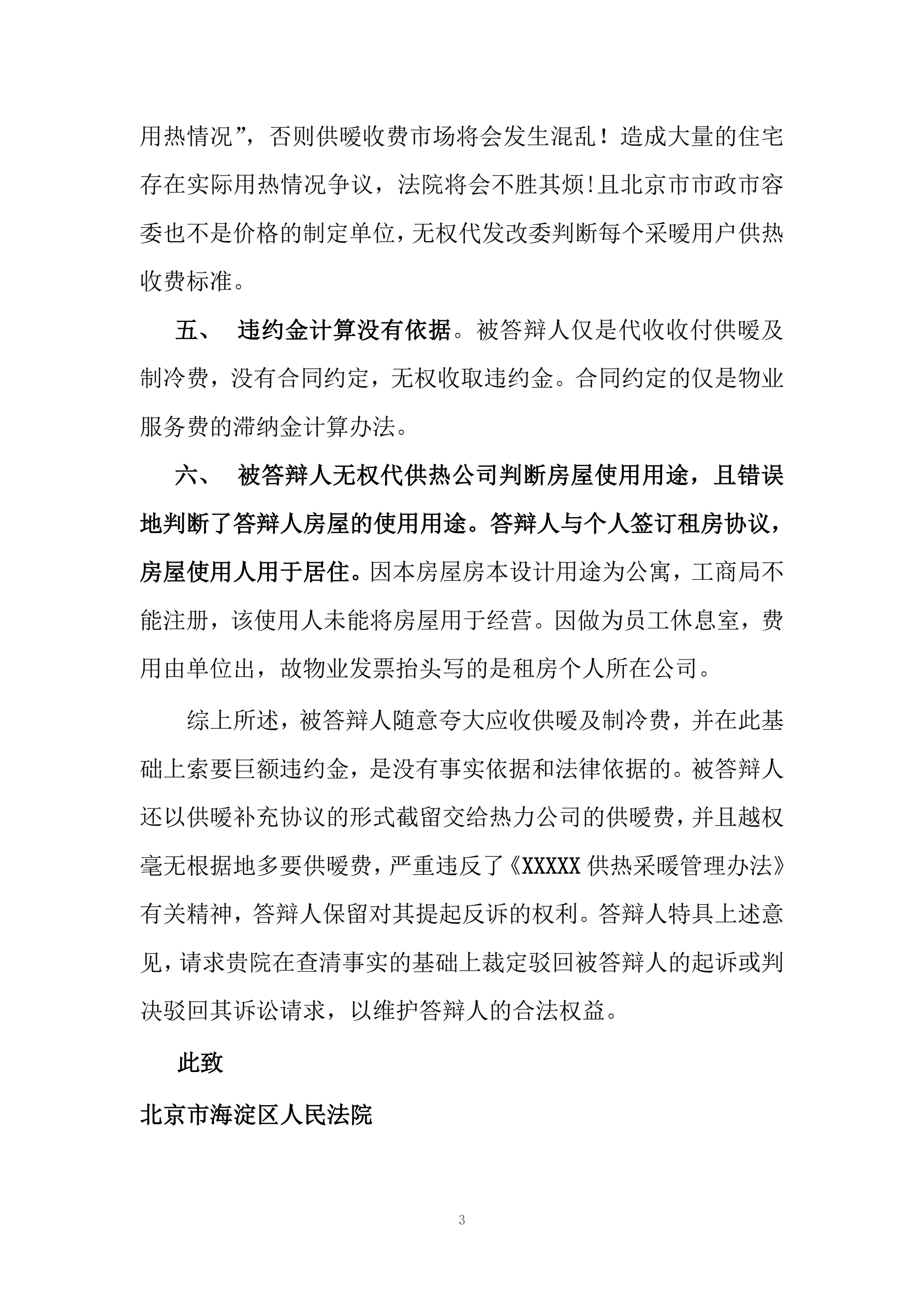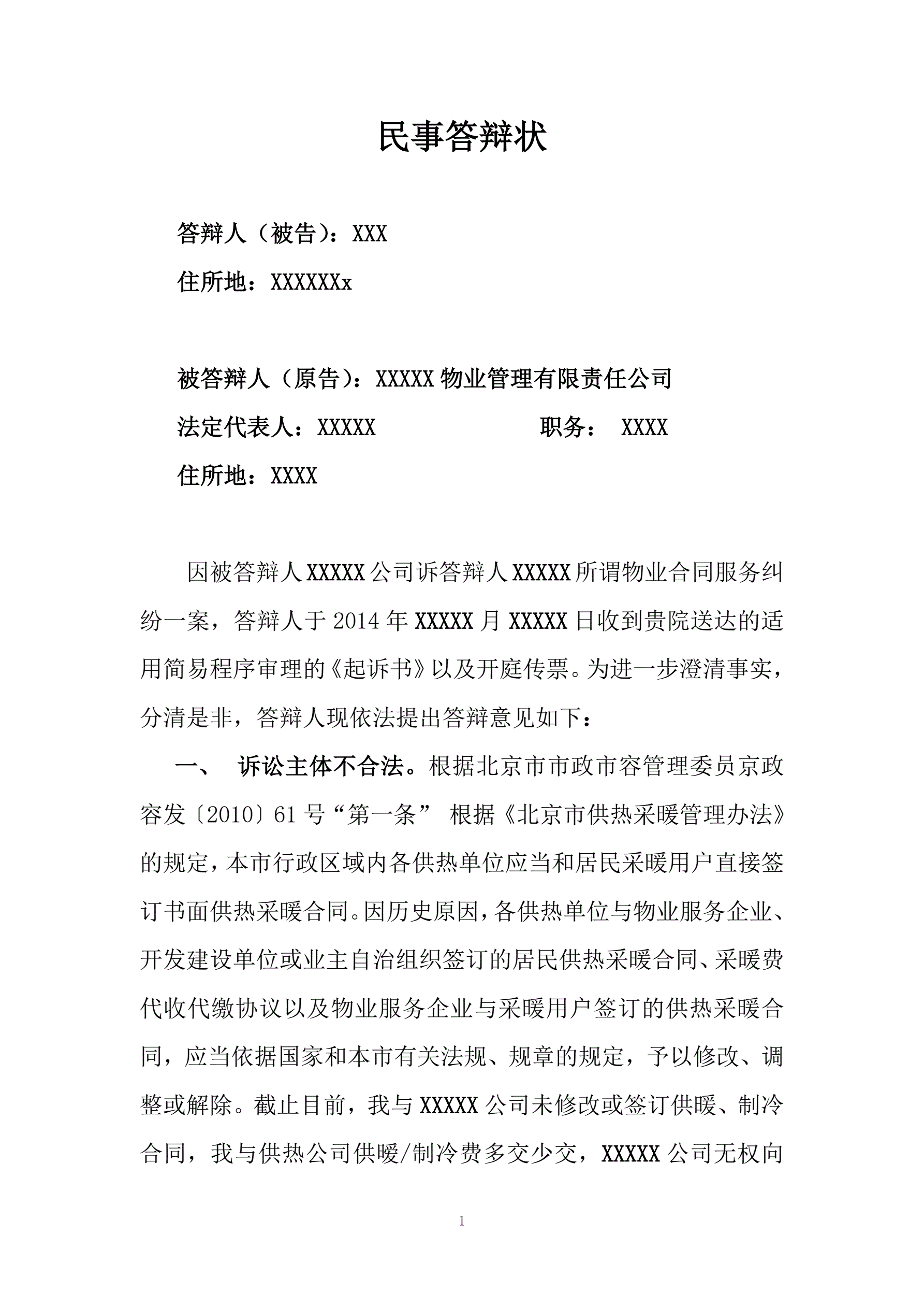 >民事答辩状范文