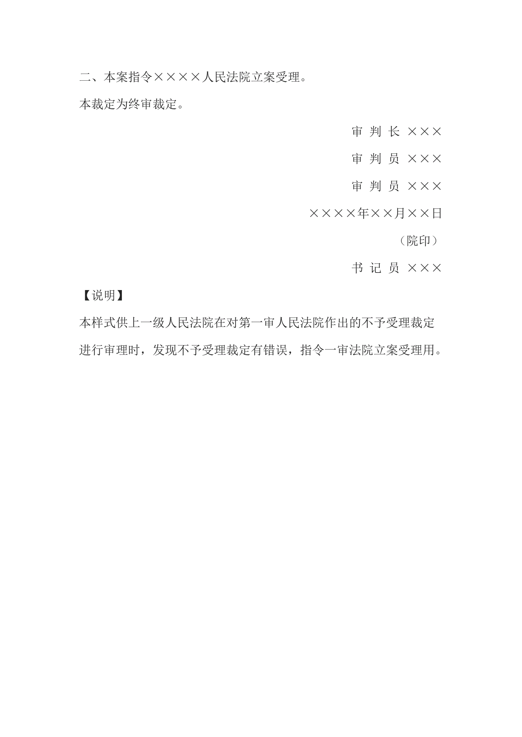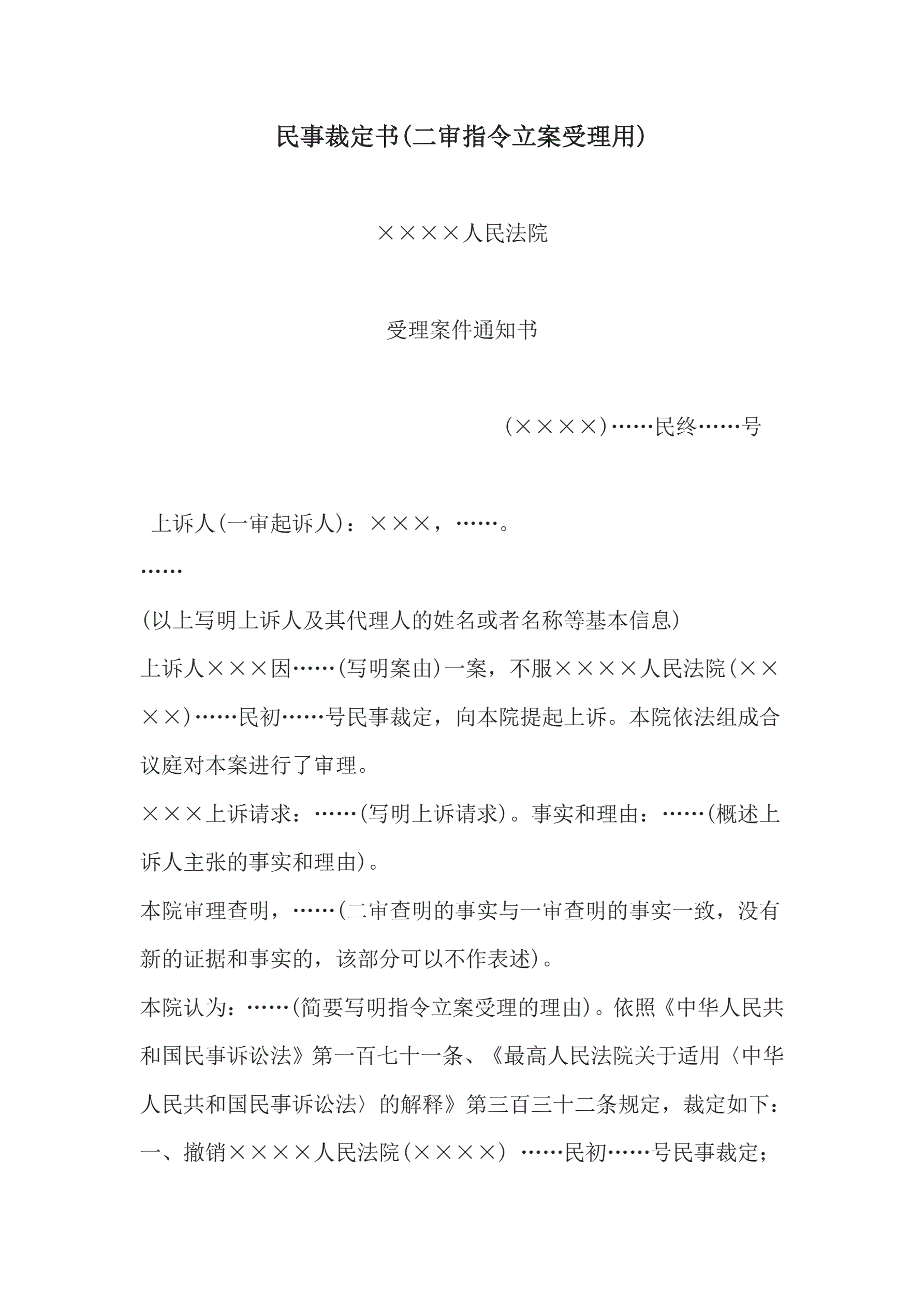 >民事裁定书(二审指令立案受理用)