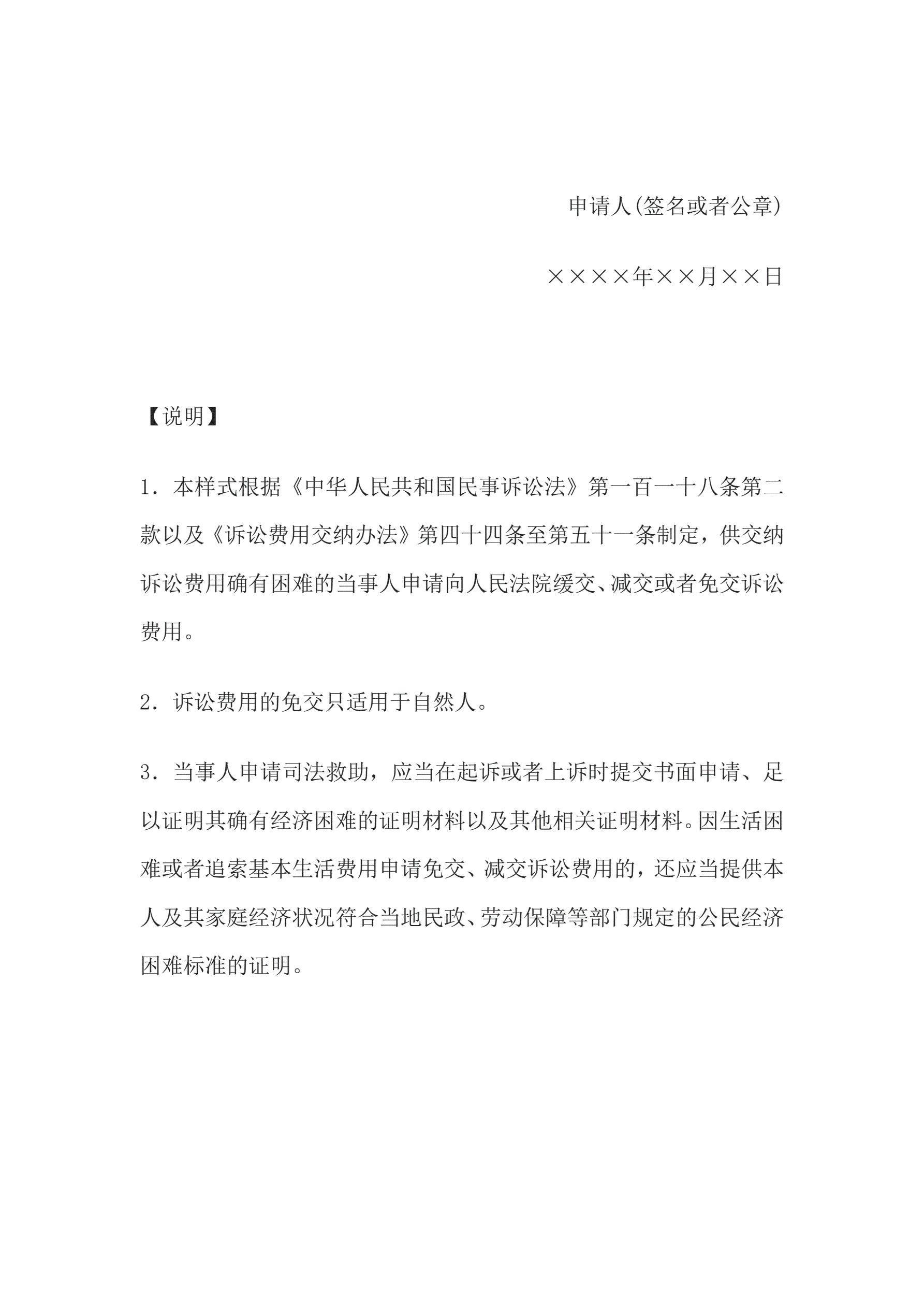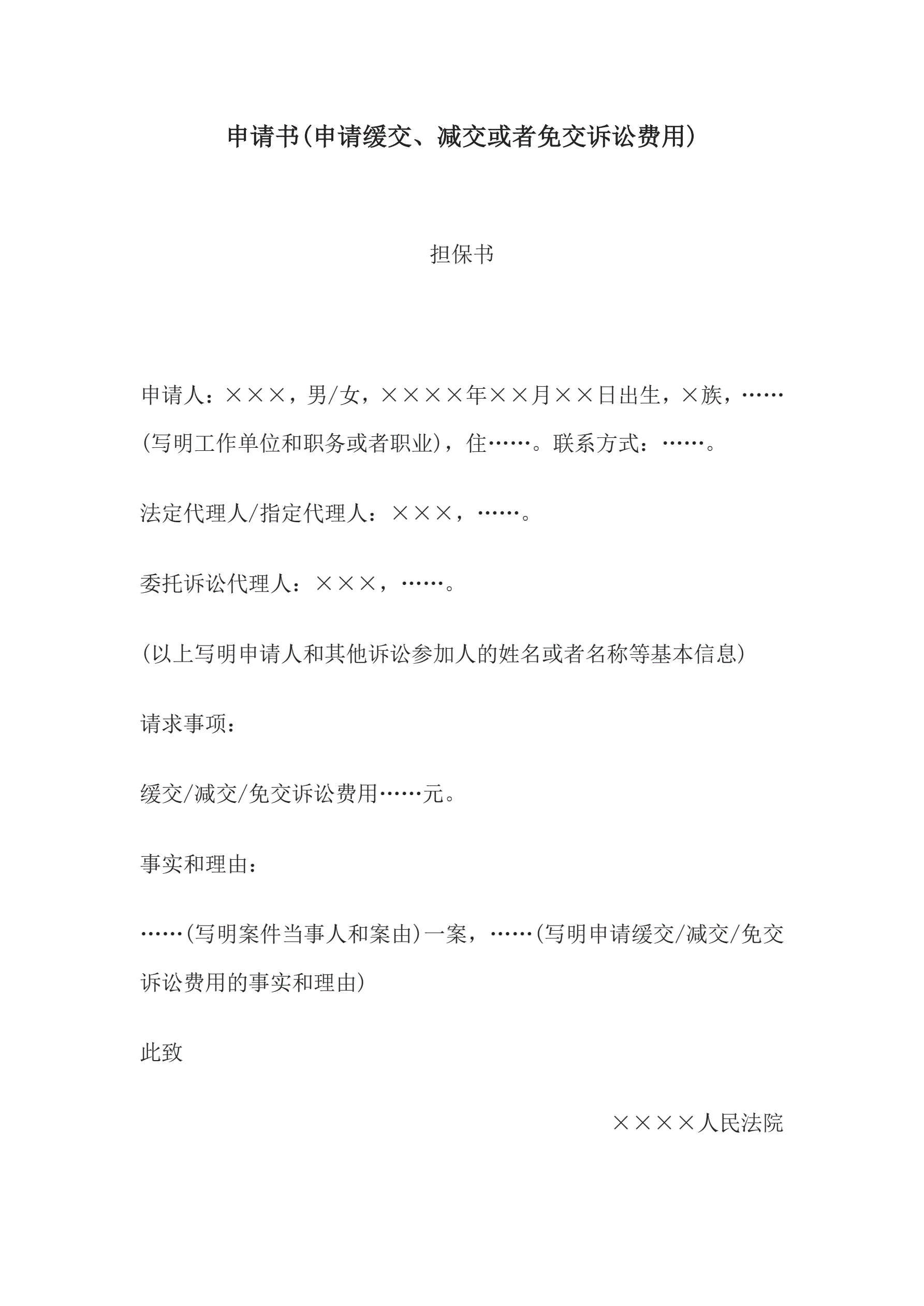 >申请书(申请缓交、减交或者免交诉讼费用)