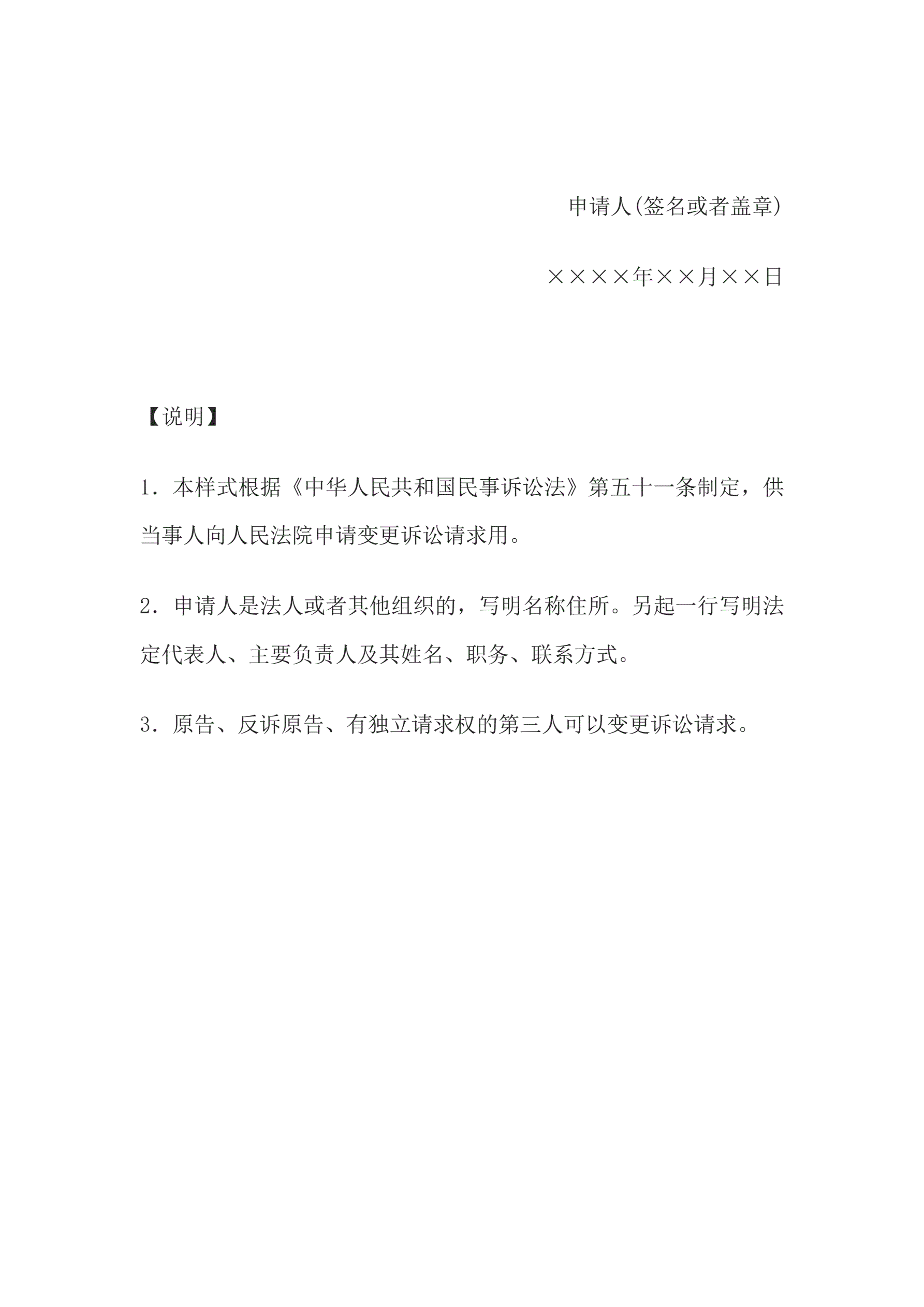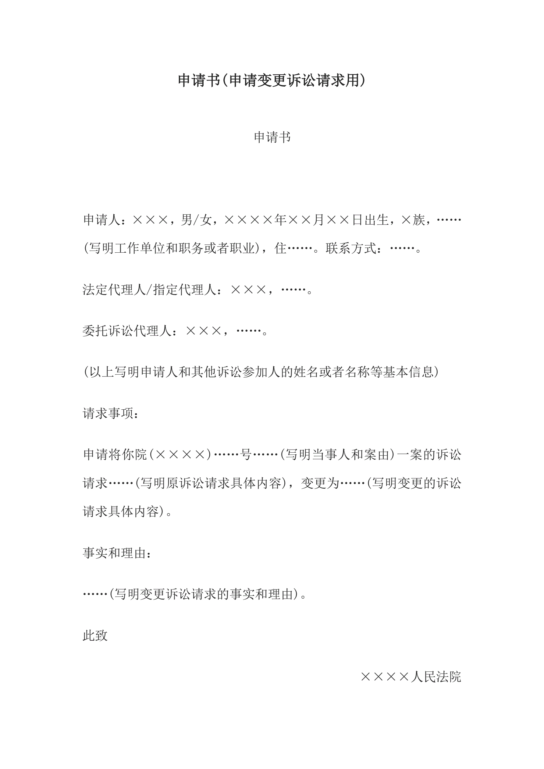 合同名称:申请书(申请变更诉讼请求用)
