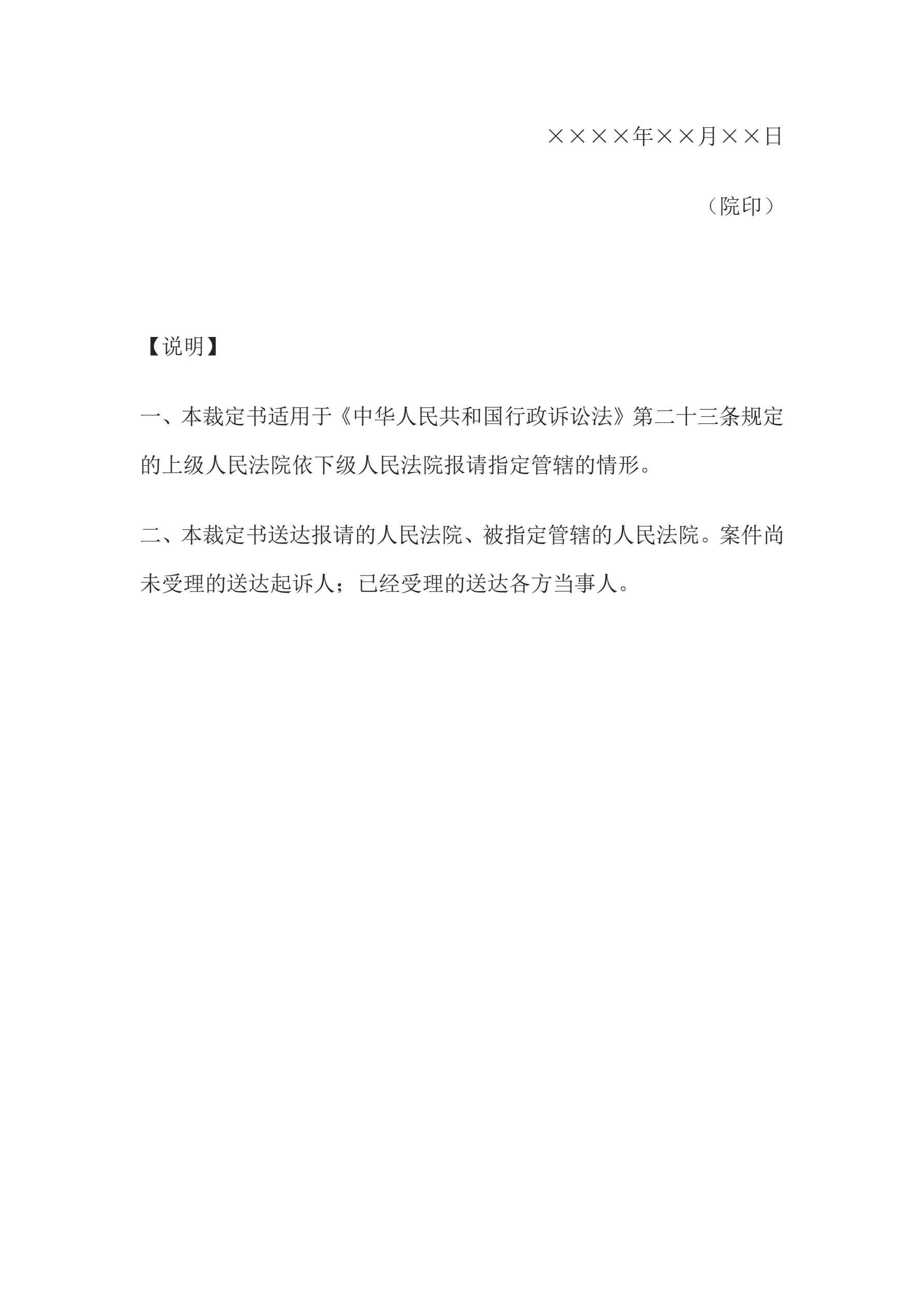 合同名称:行政裁定书(管辖权争议时指定管辖用)