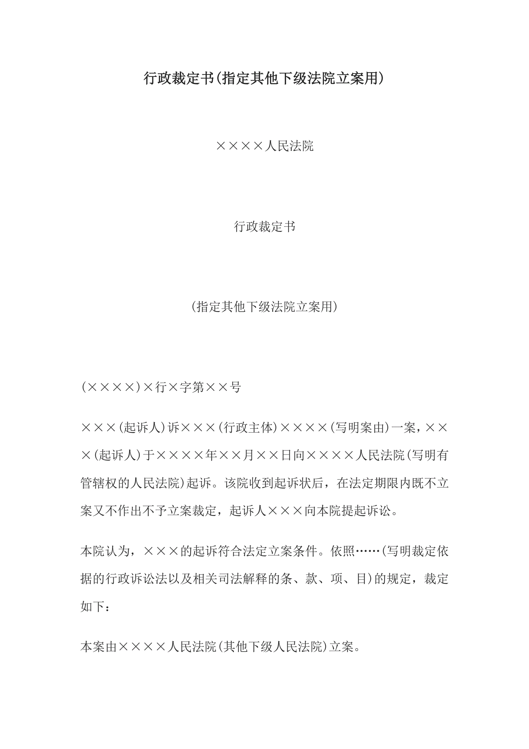 行政裁定书(指定其他下级法院立案用)