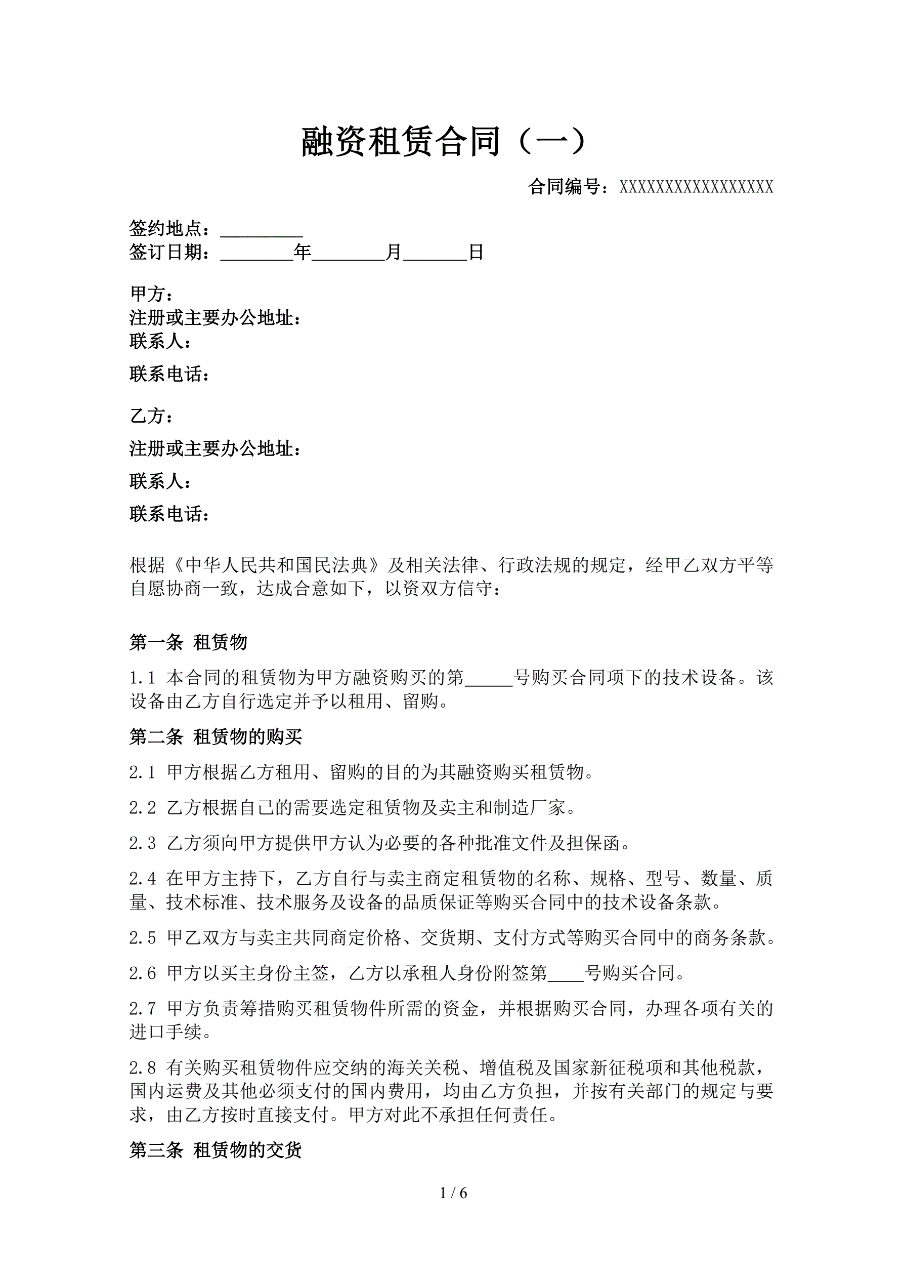 >融资租赁合同(技术设备)