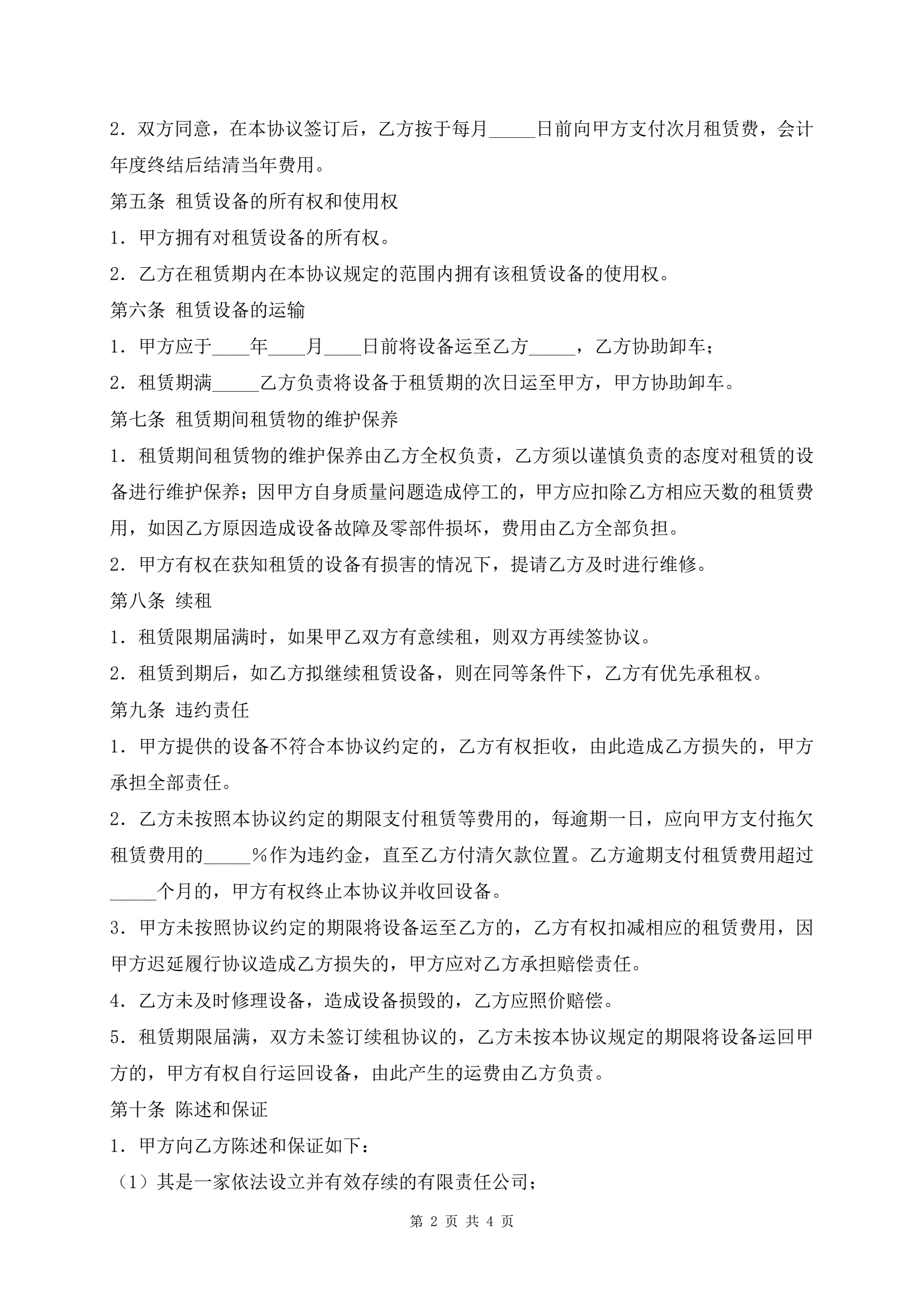 >标准版煤矿生产设备租赁协议书