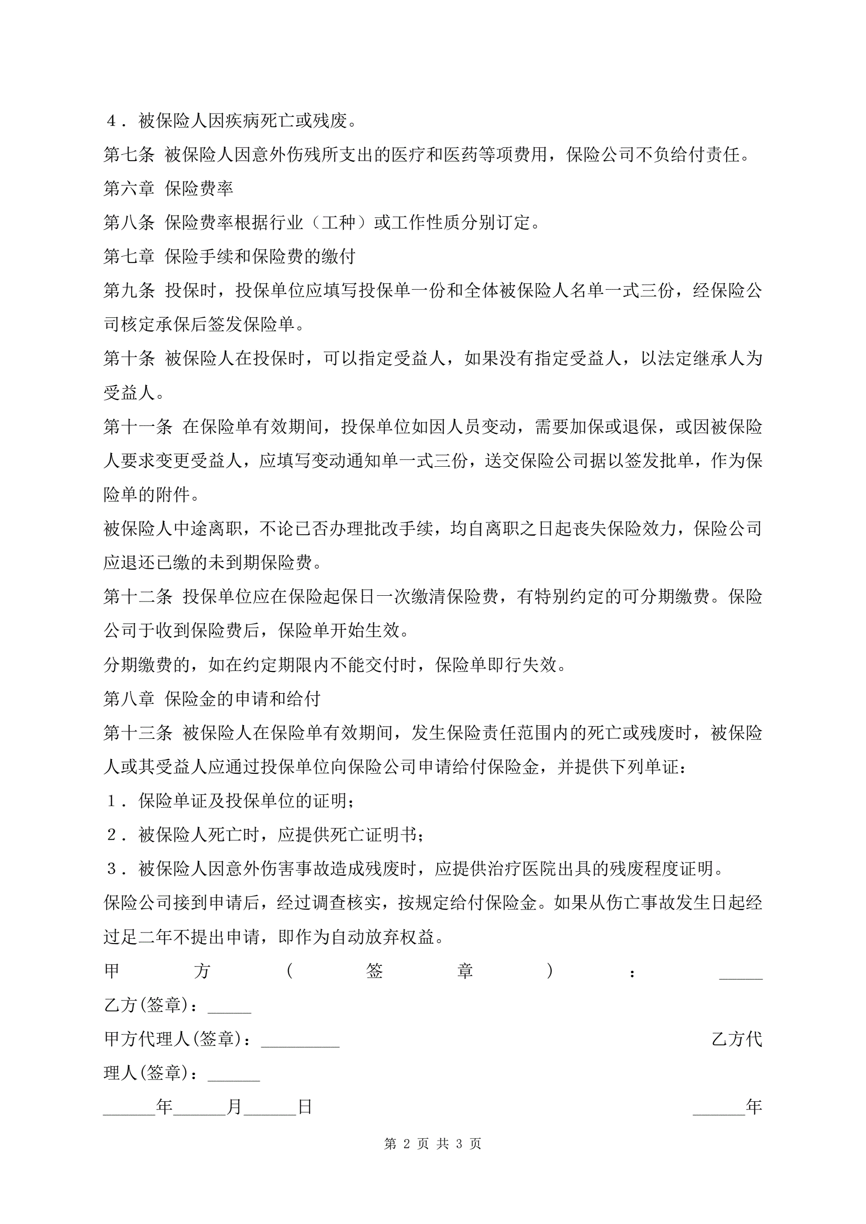 >个人人身意外伤害保险合同范本