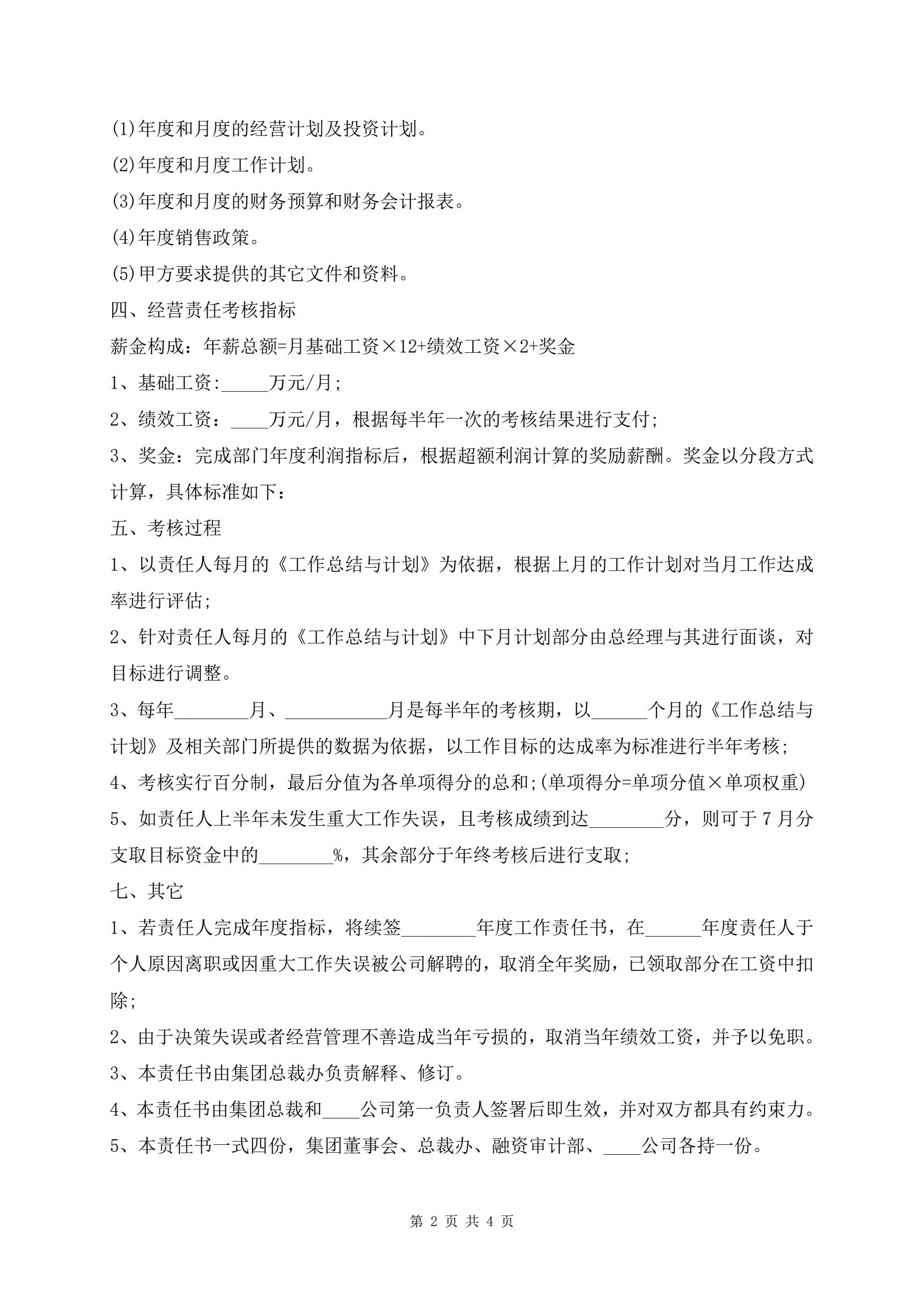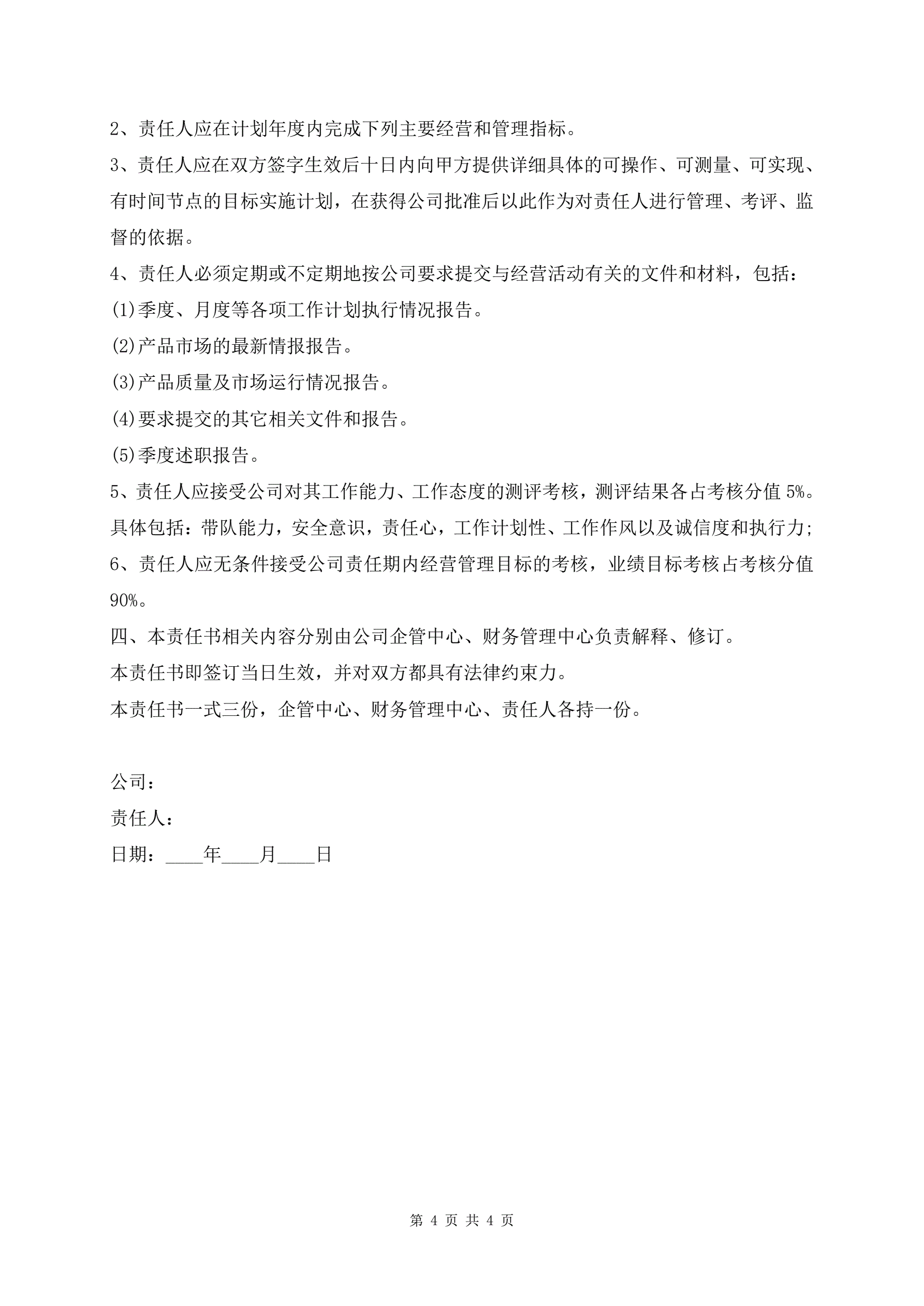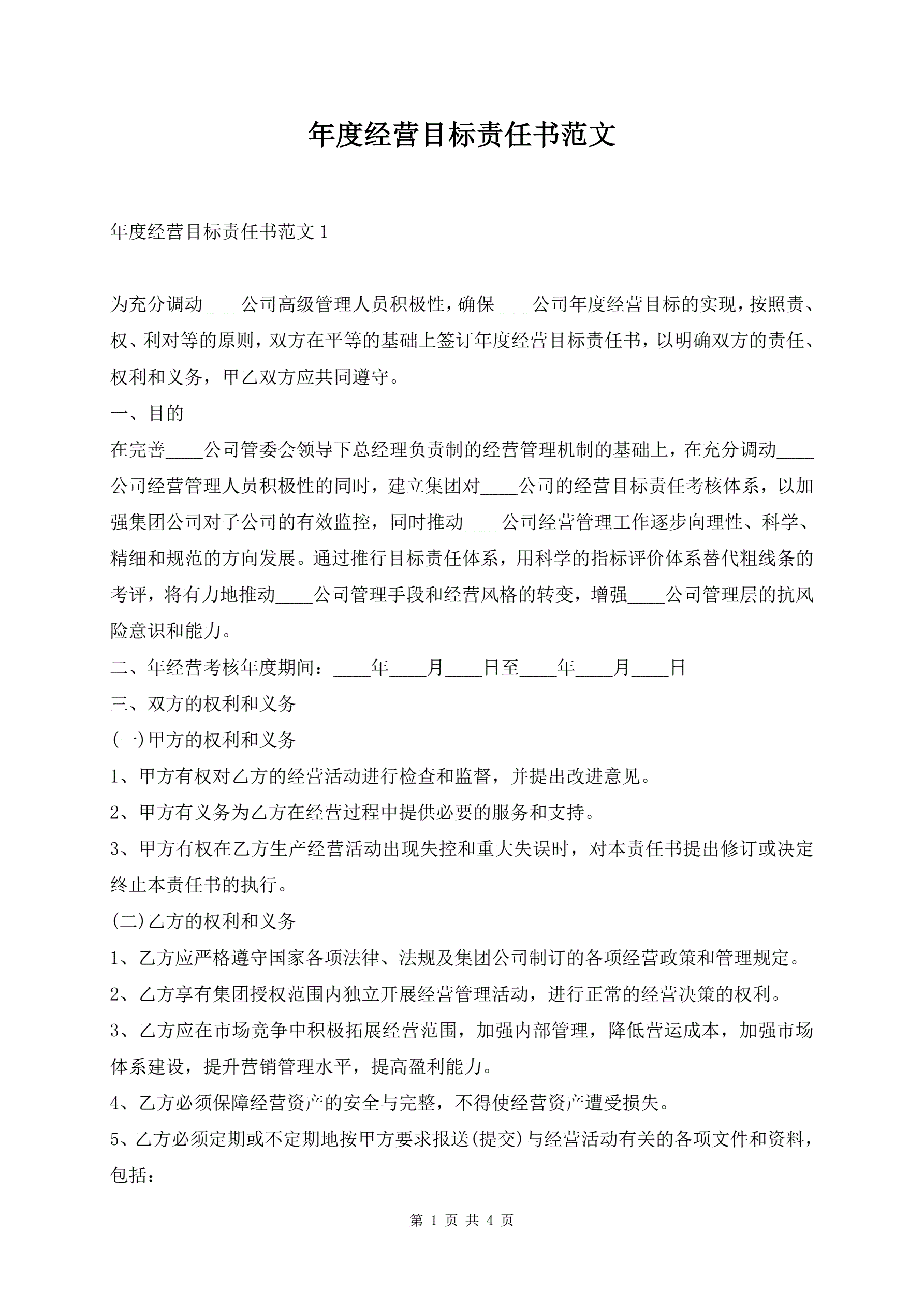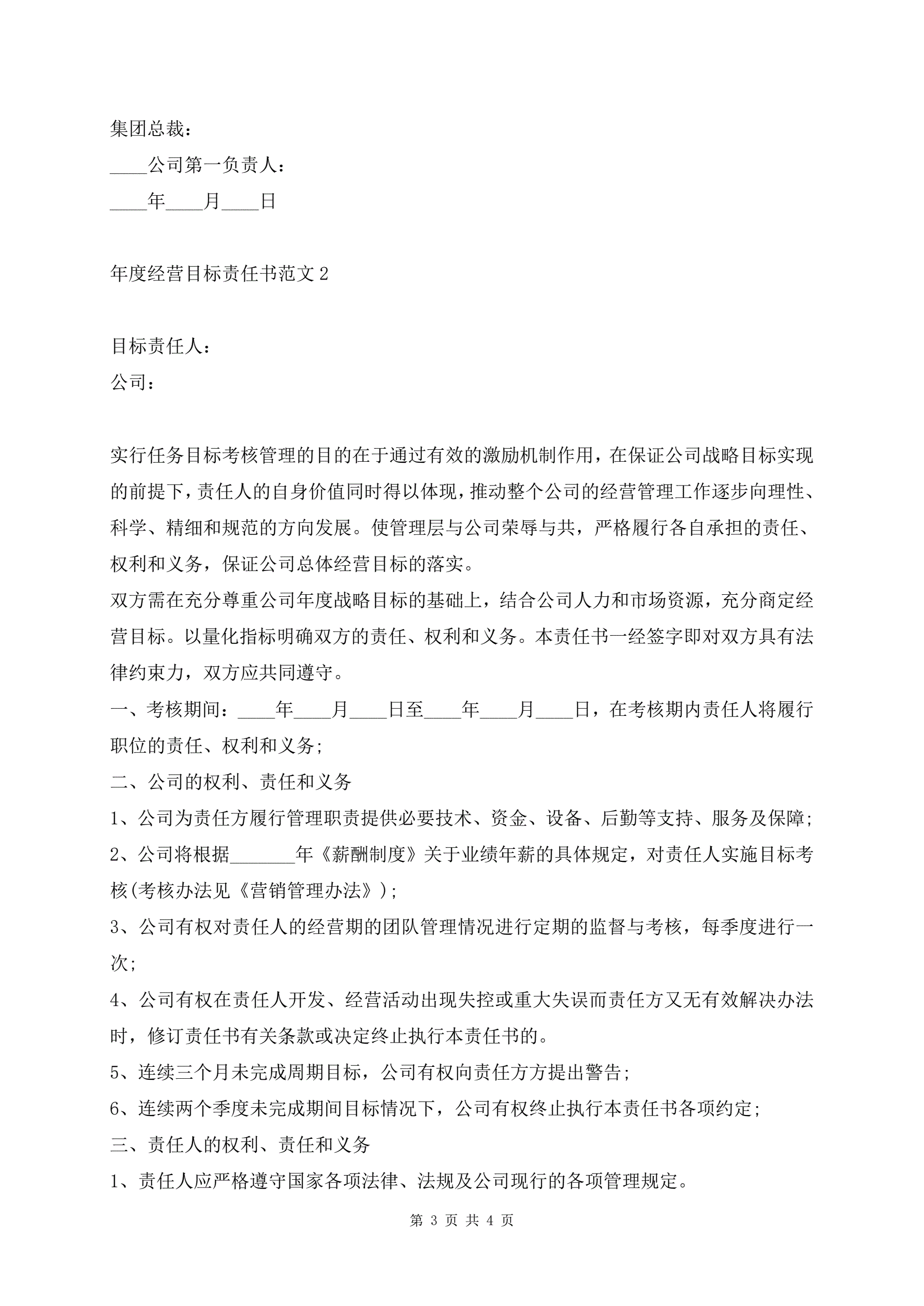 年度经营目标责任书范文