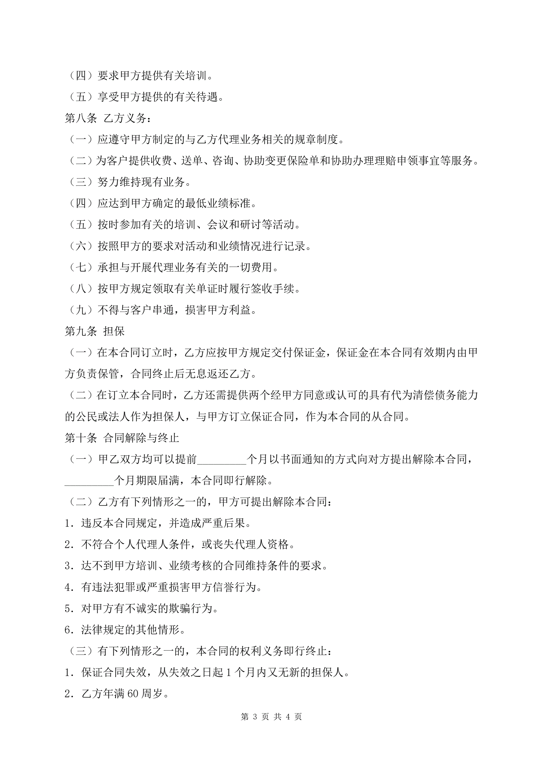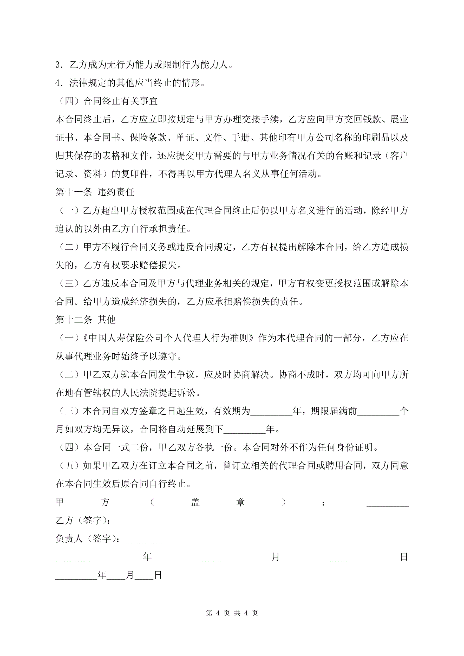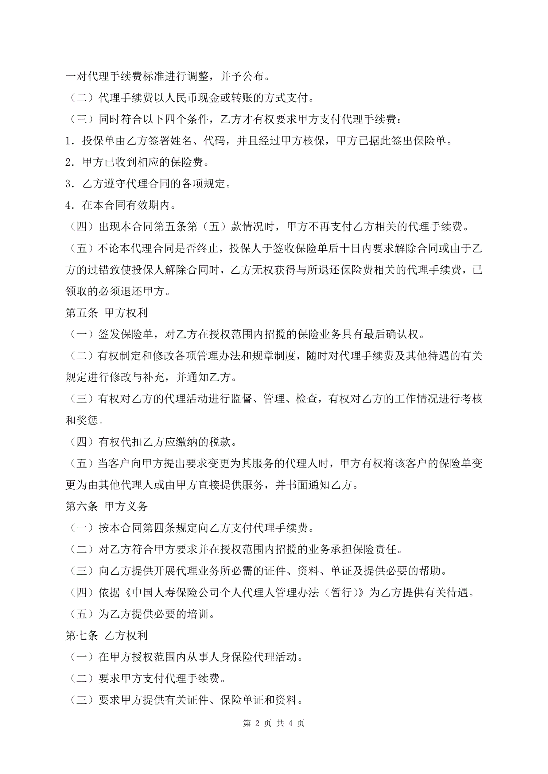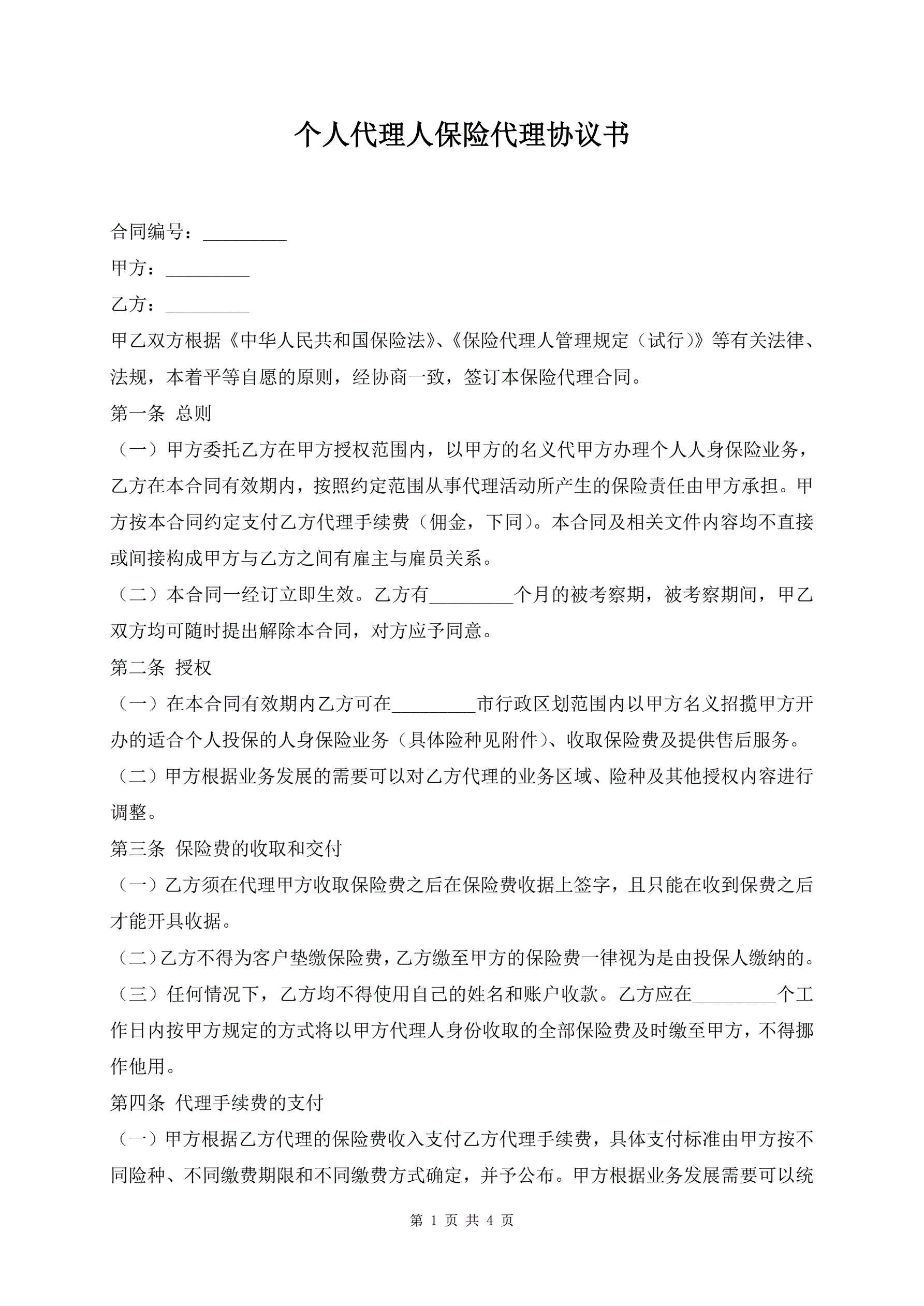个人代理人保险代理协议书