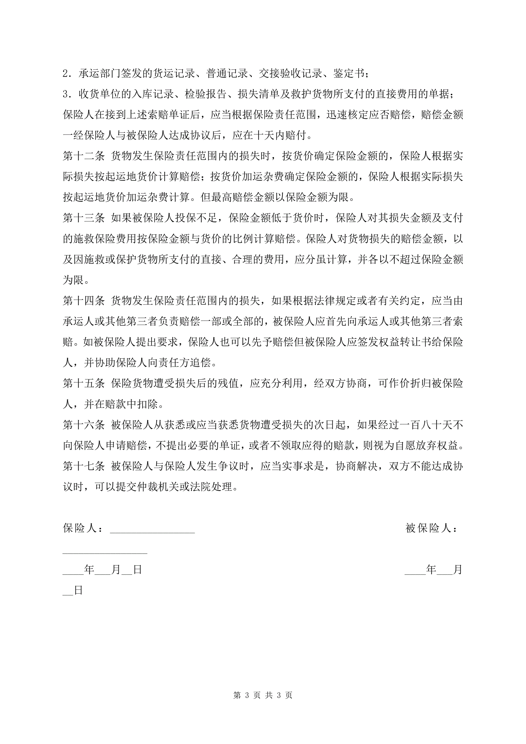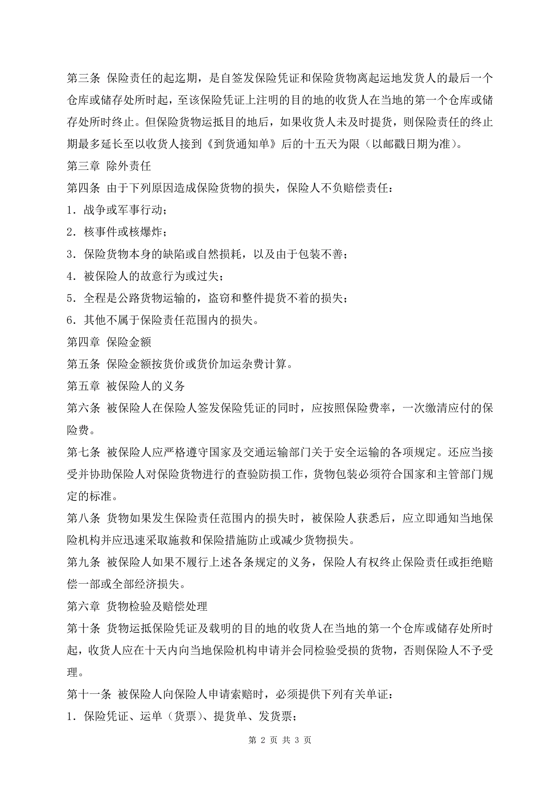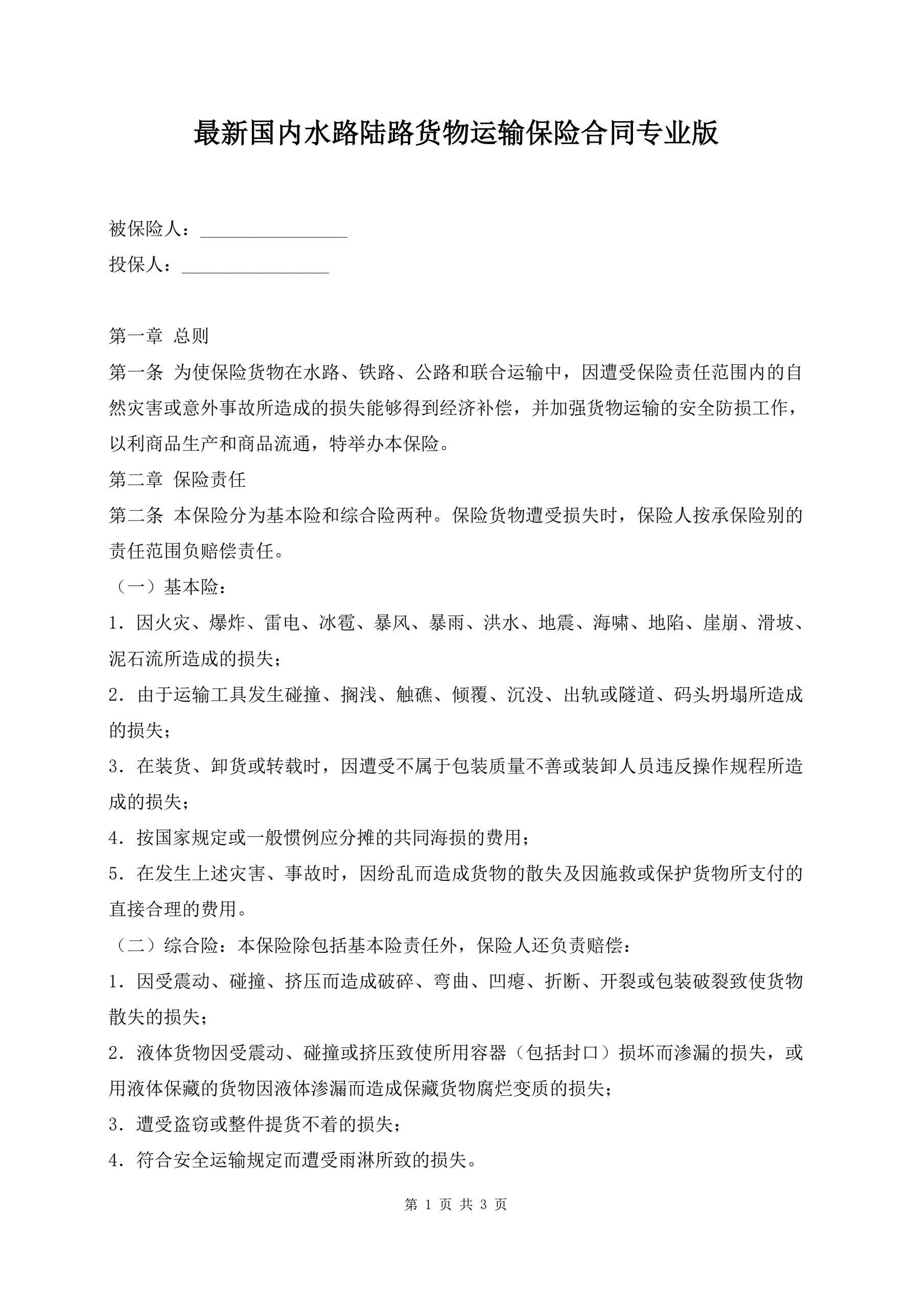 >最新国内水路陆路货物运输保险合同专业版