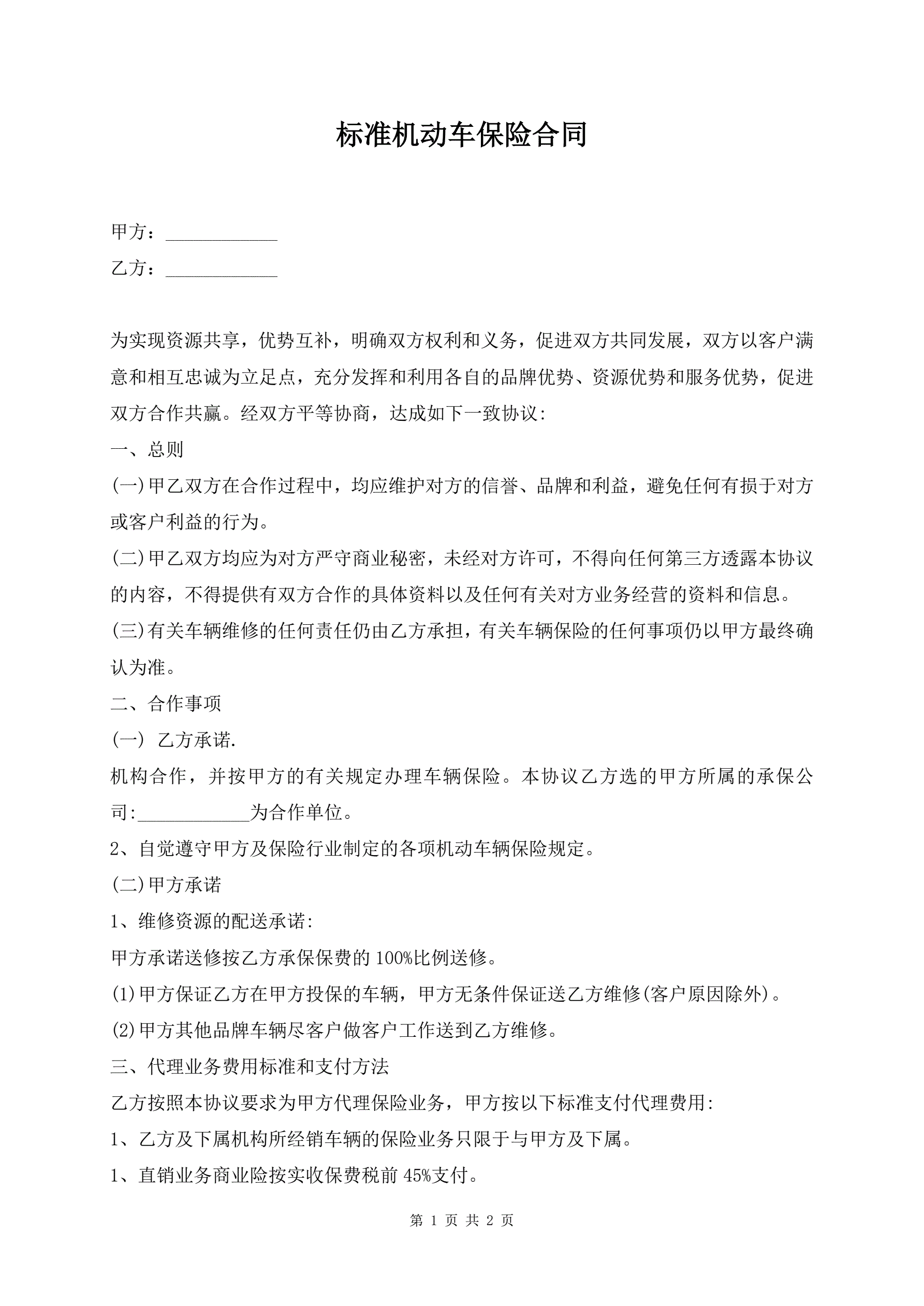标准机动车保险合同