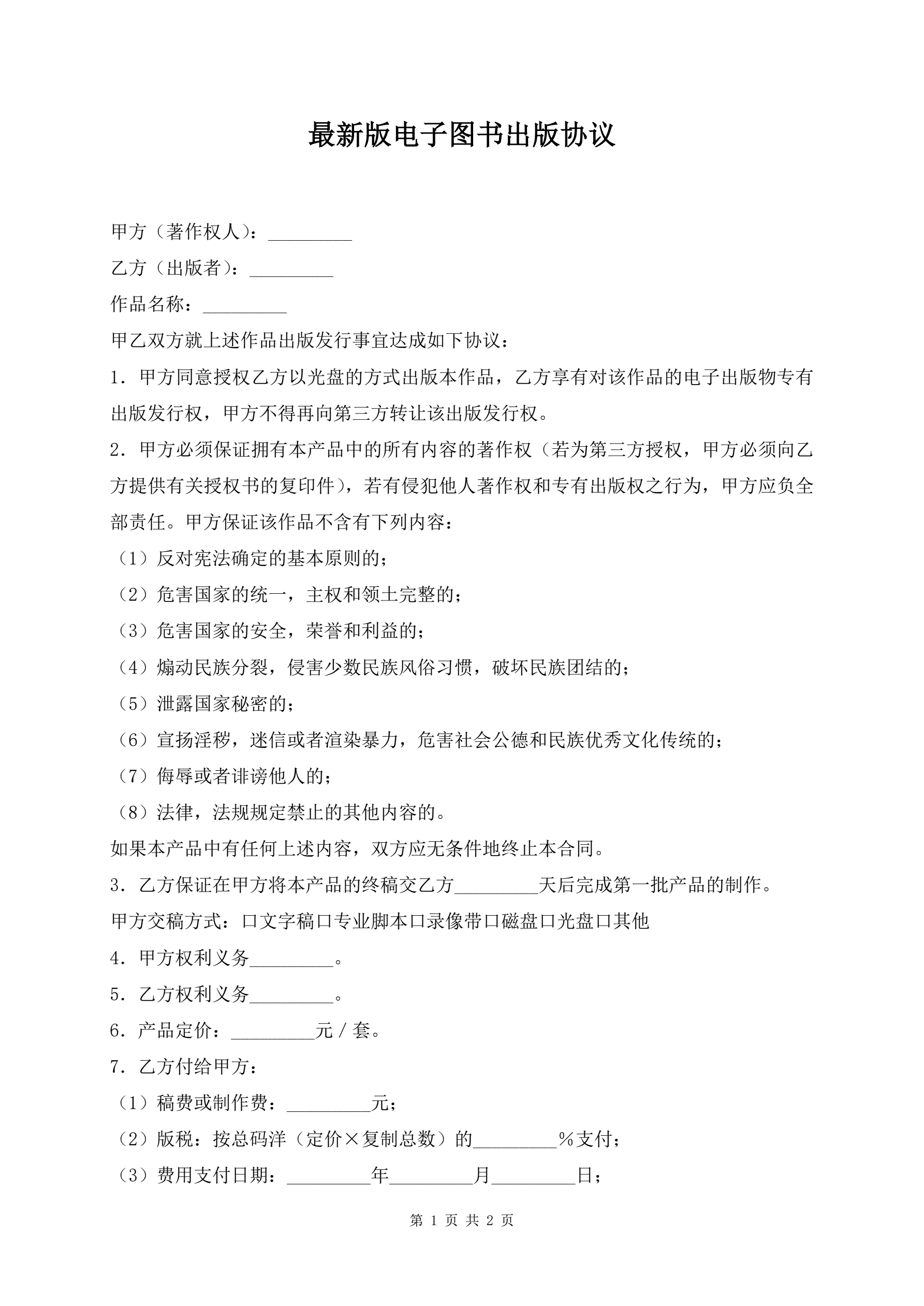 >最新版电子图书出版协议