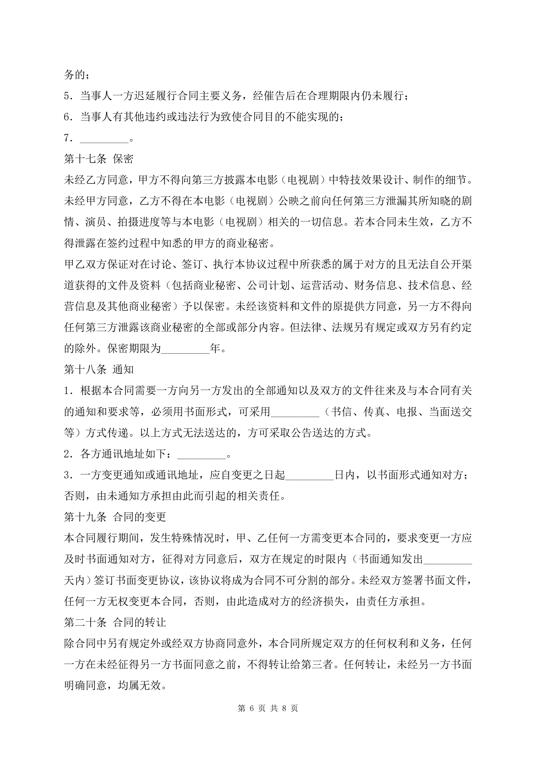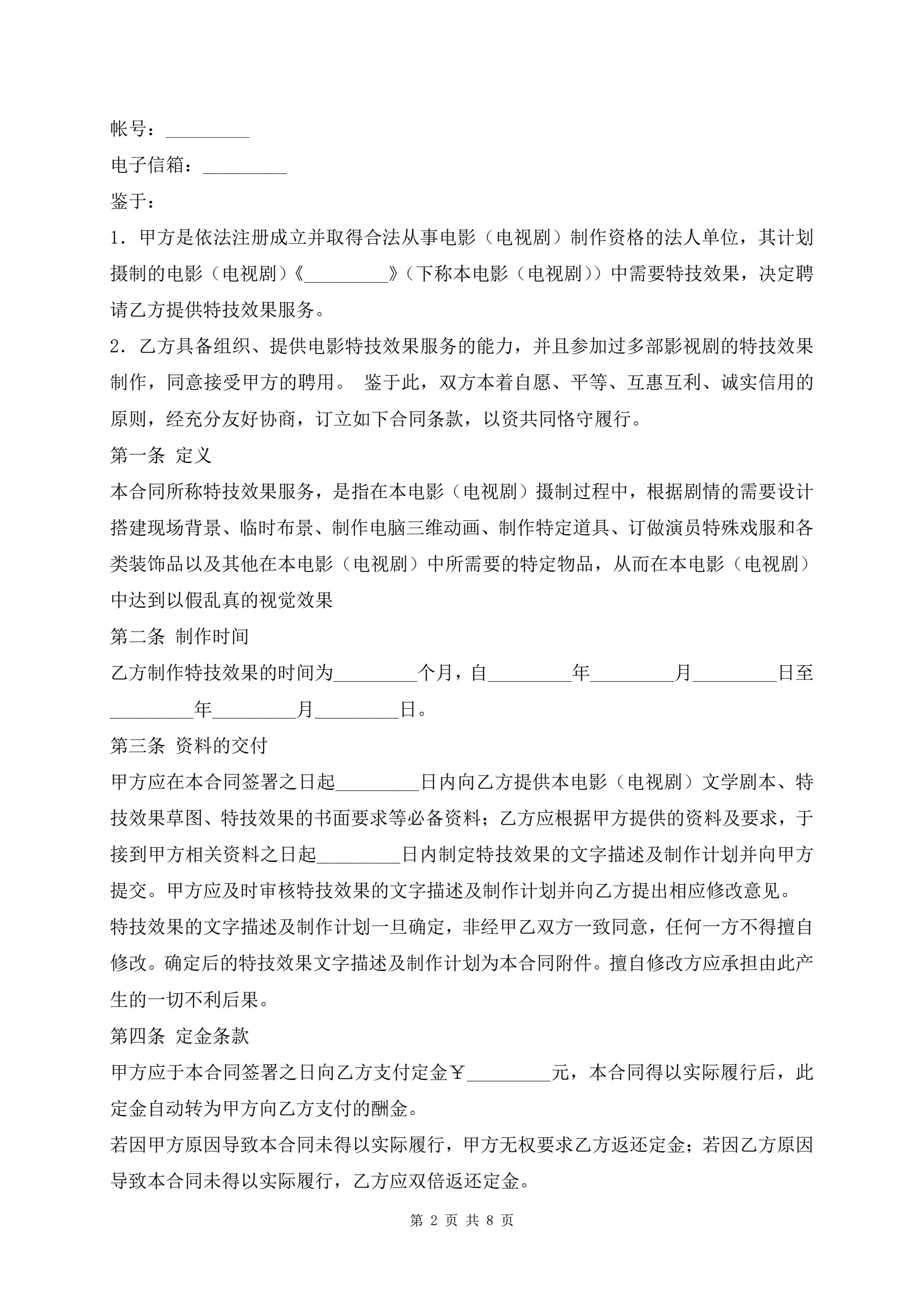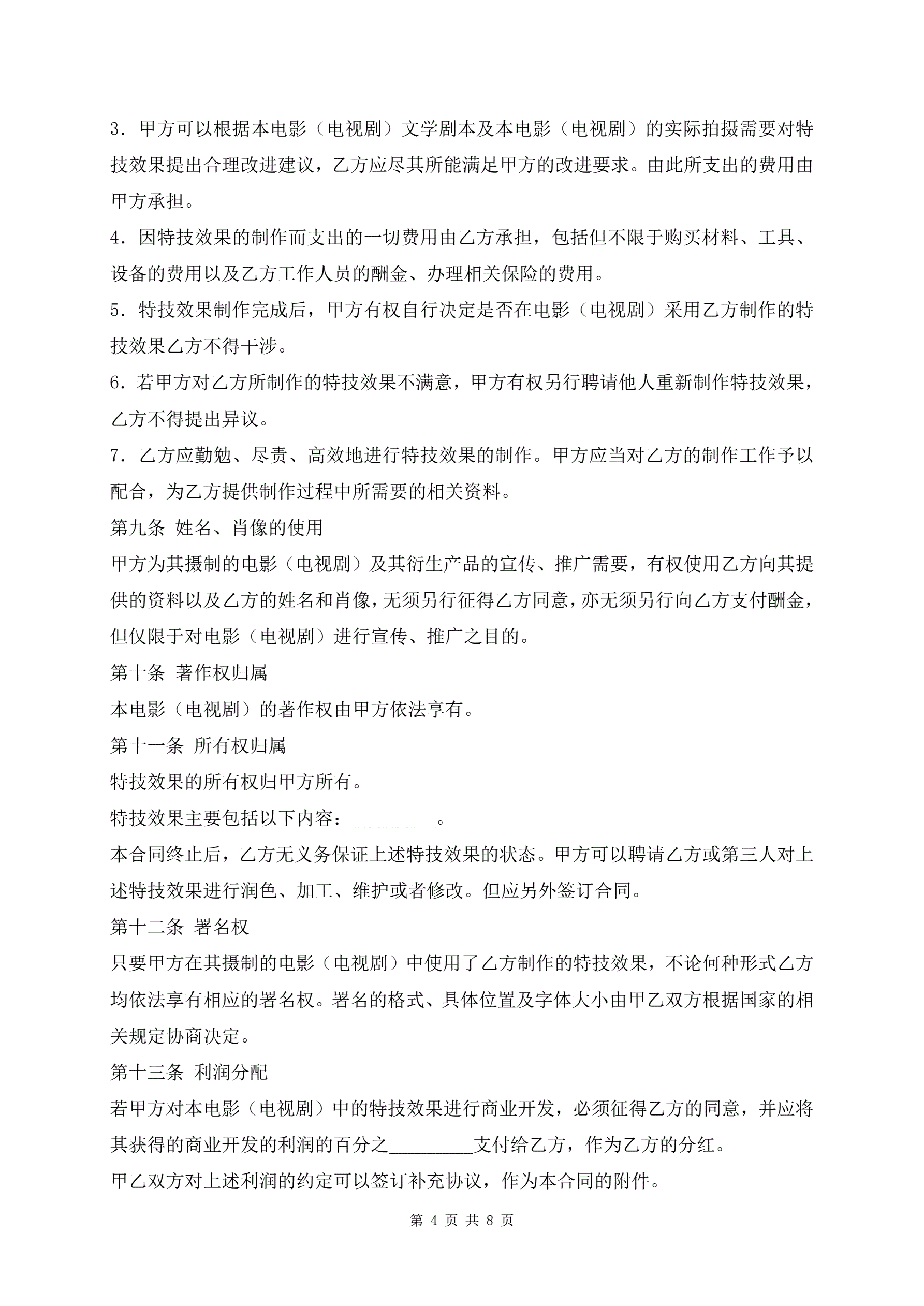 >最新影视剧特技效果服务合同