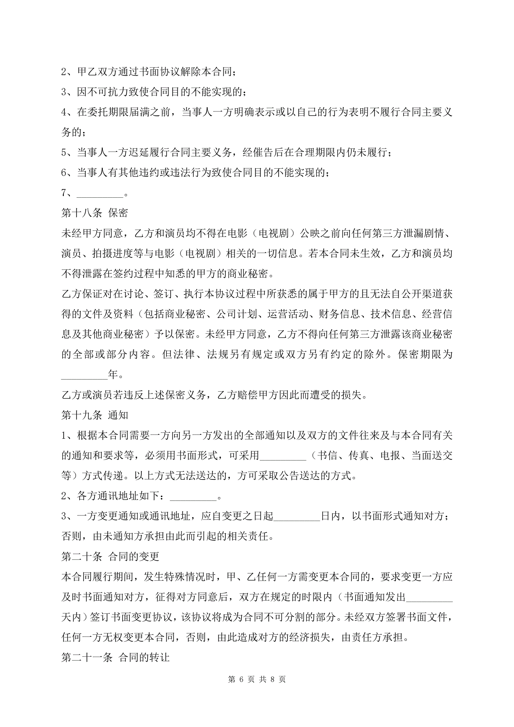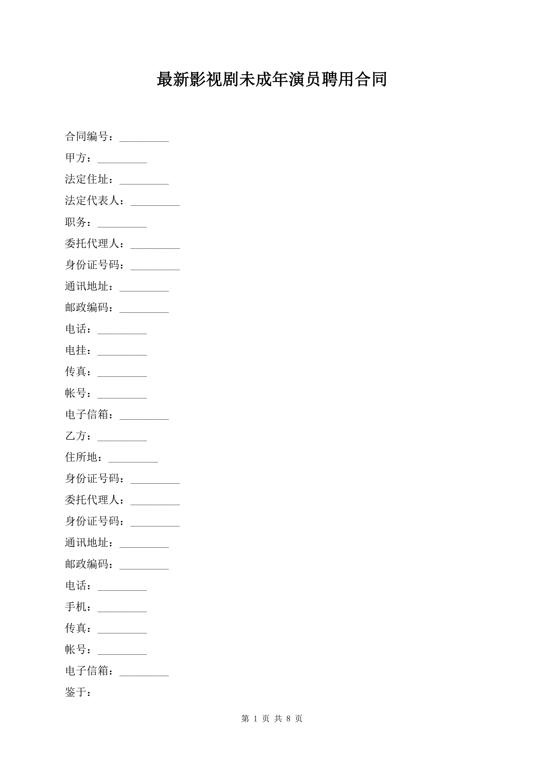 >最新影视剧未成年演员聘用合同
