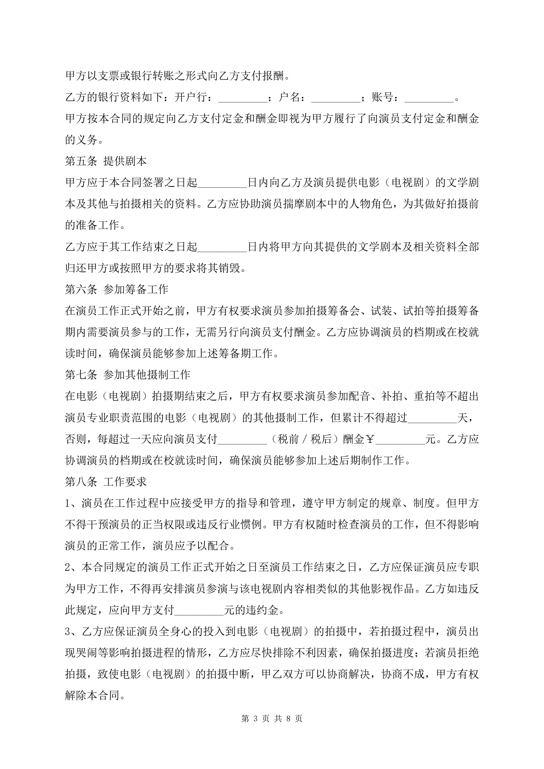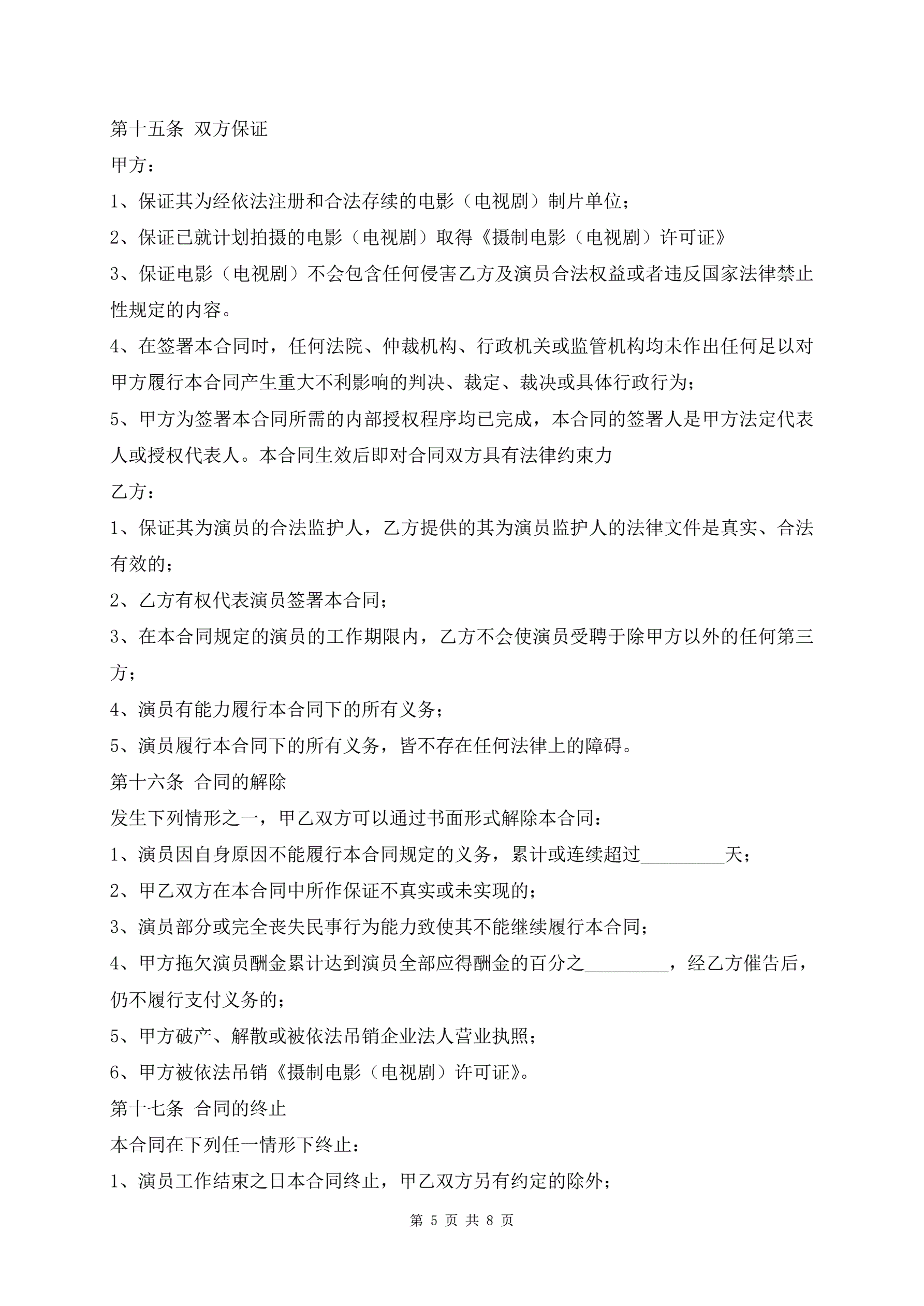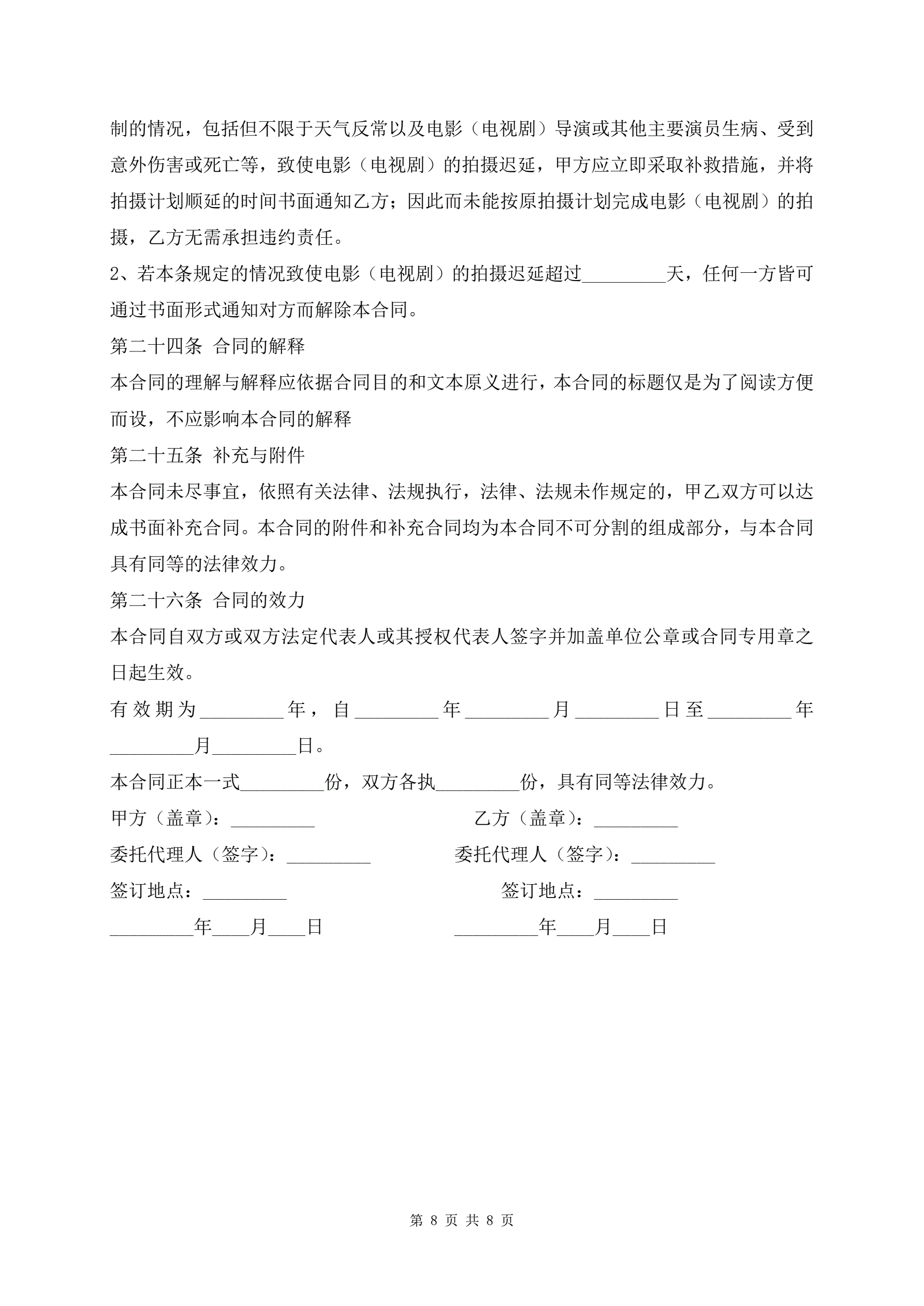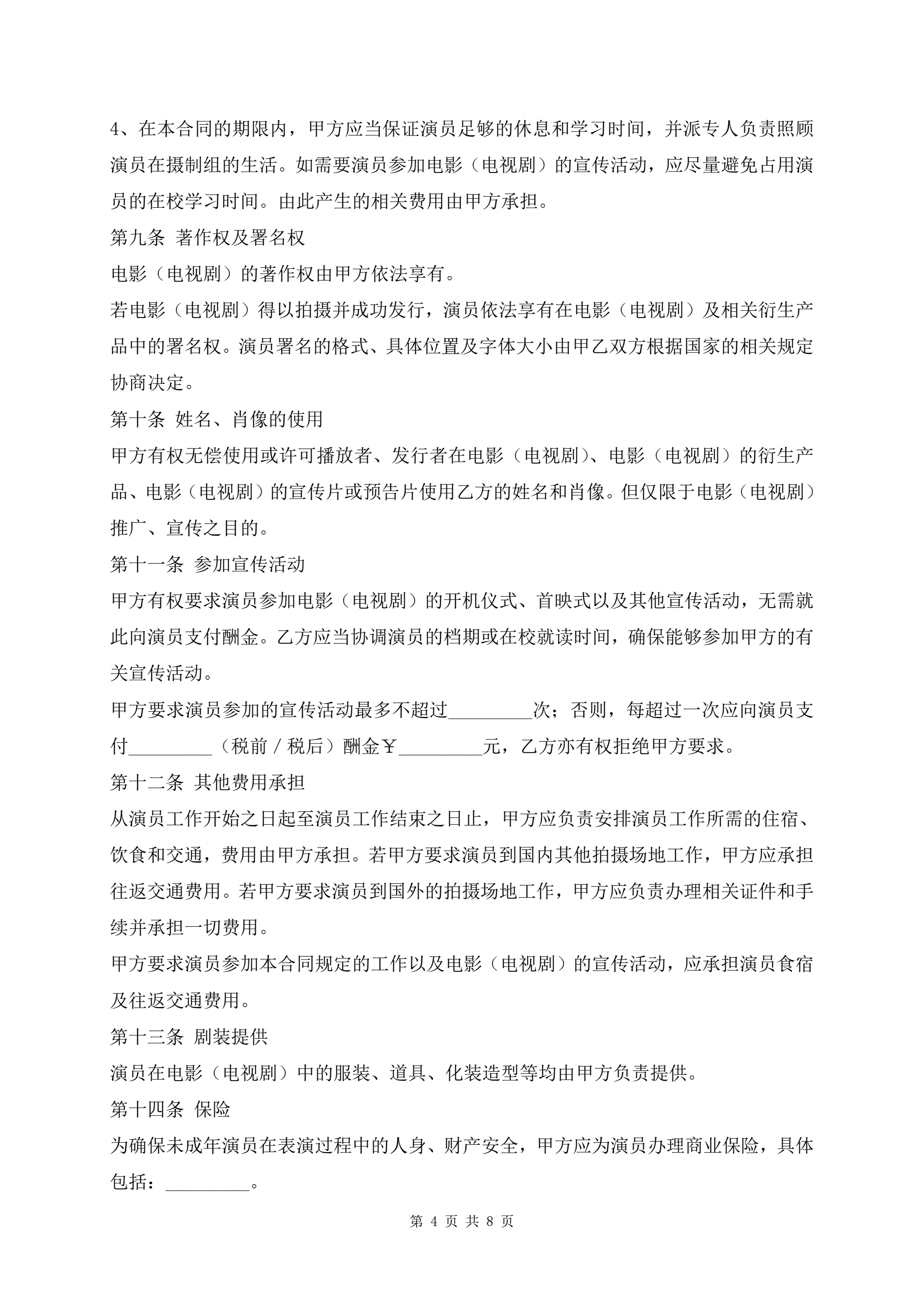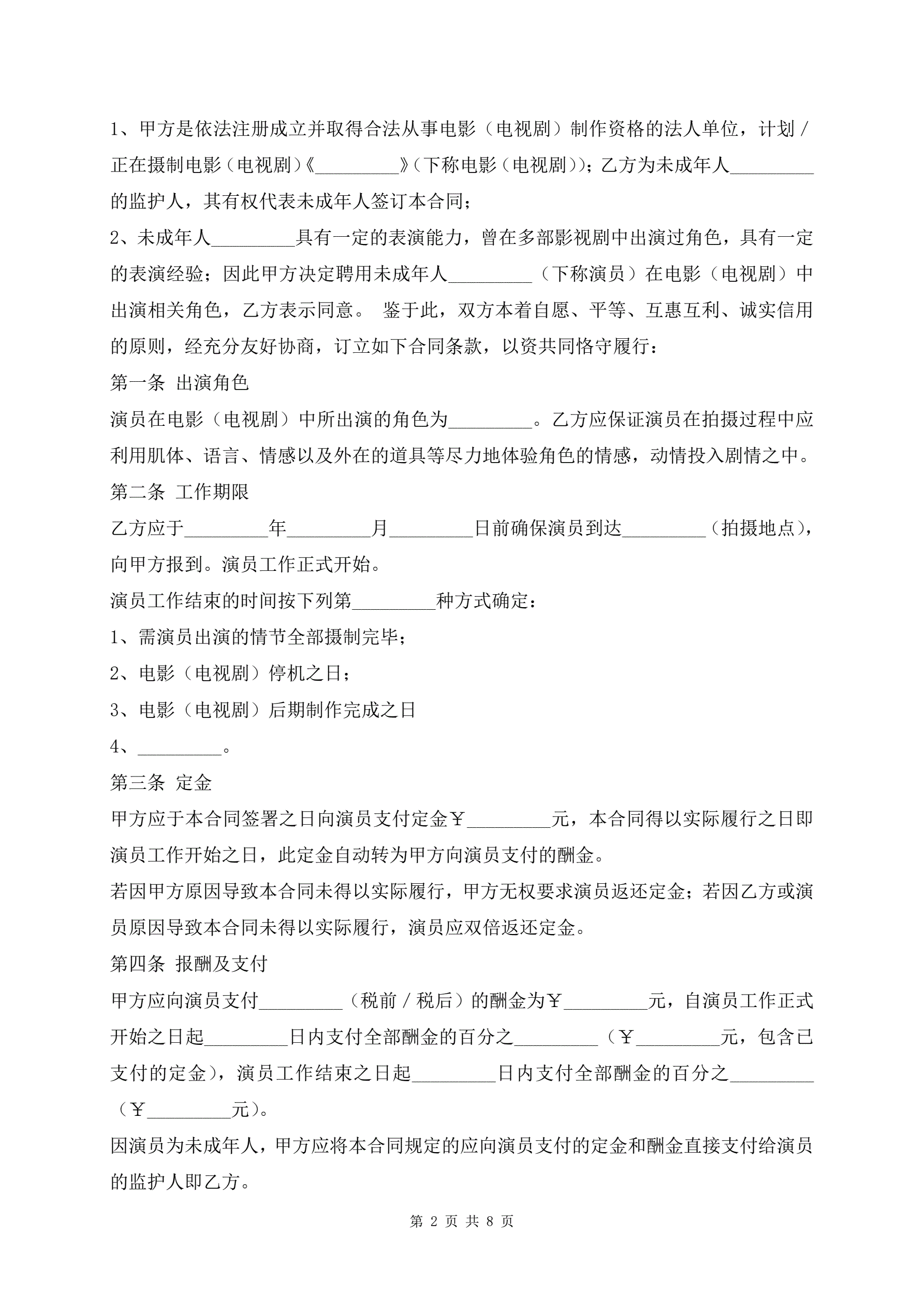 最新影视剧未成年演员聘用合同