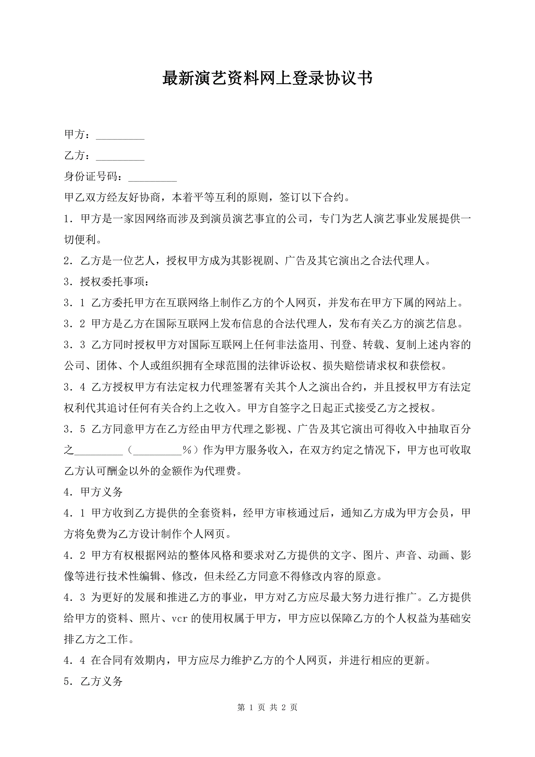 最新演艺资料网上登录协议书