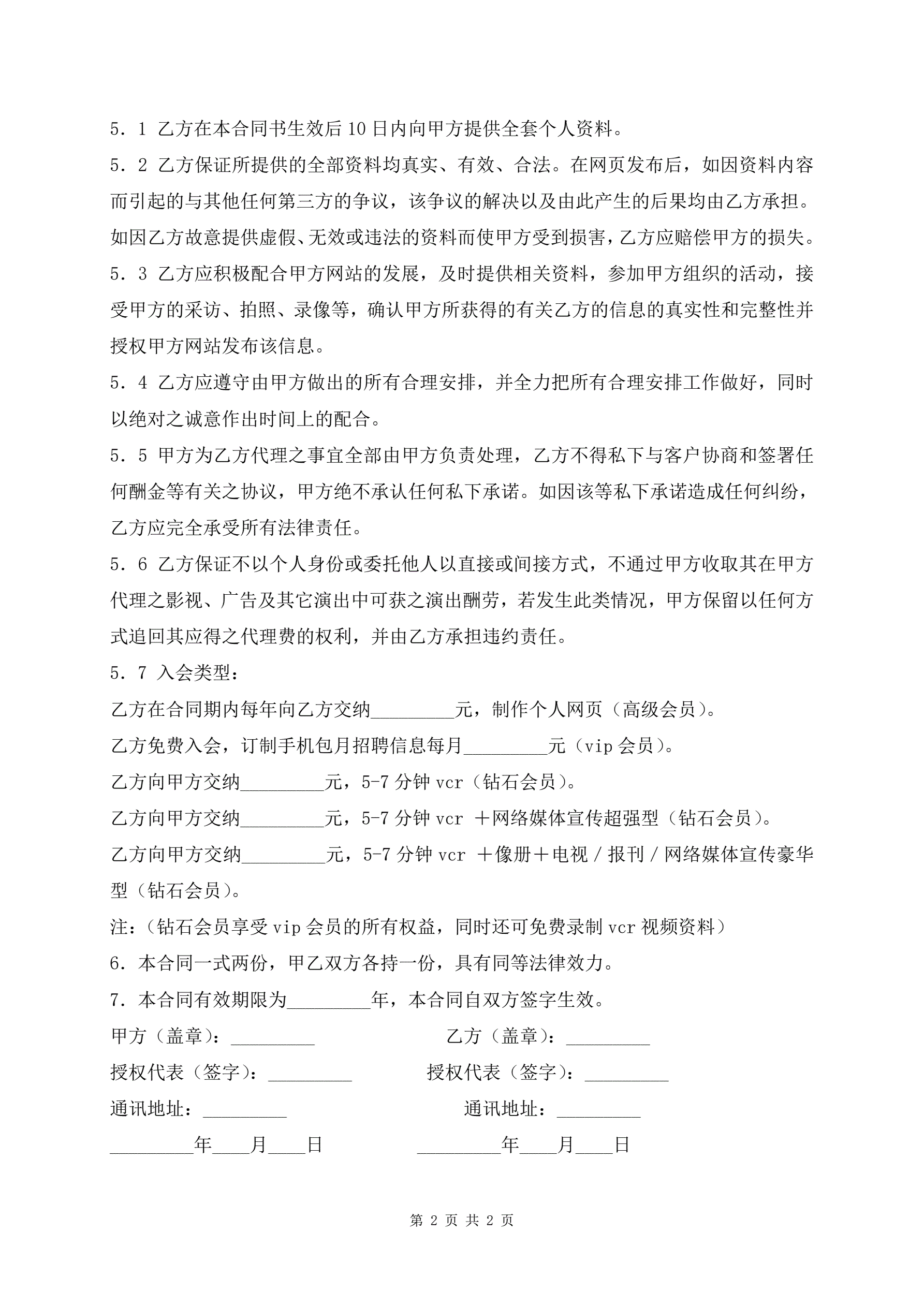 >最新演艺资料网上登录协议书