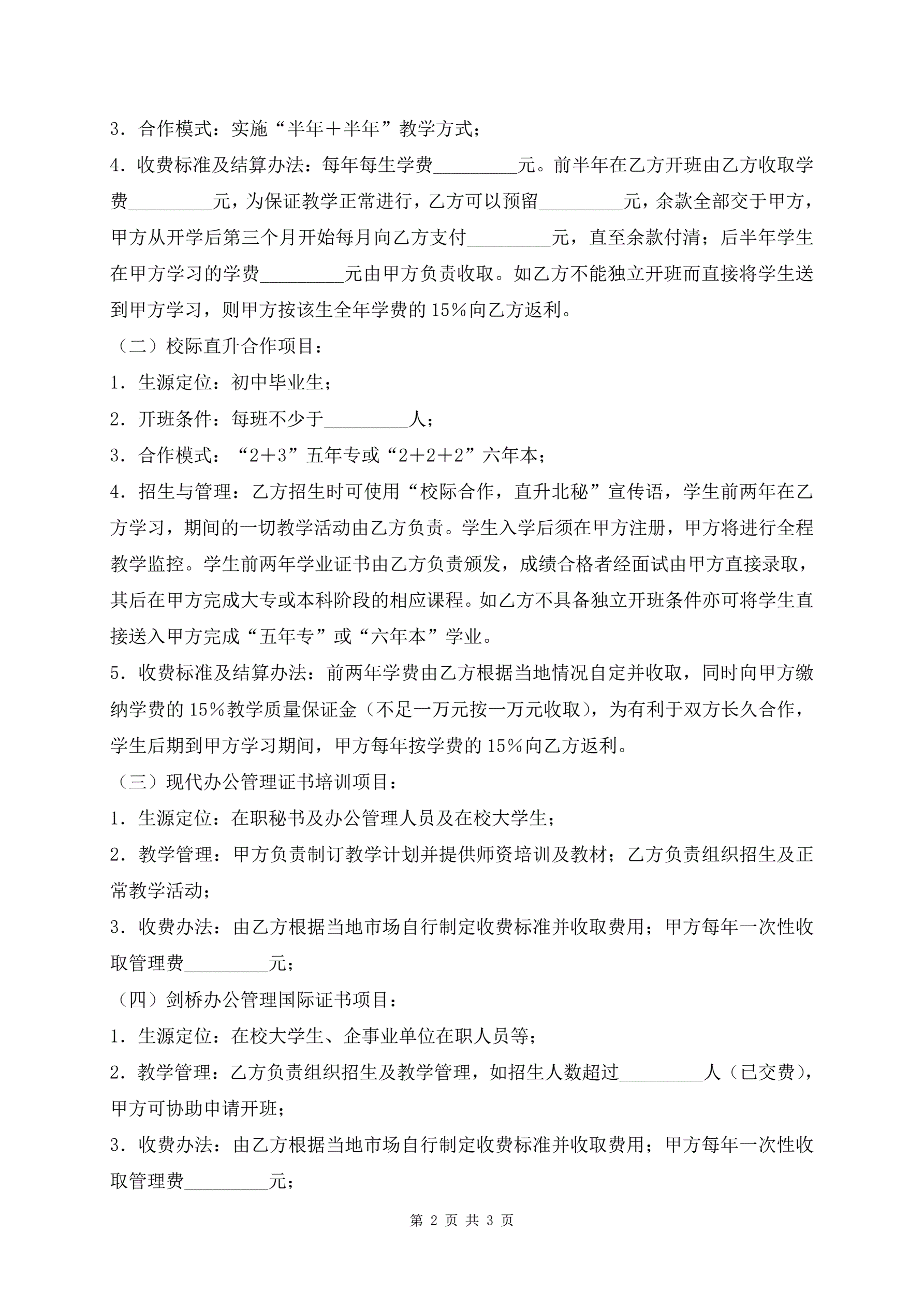 >最新秘书项目培训合同范文