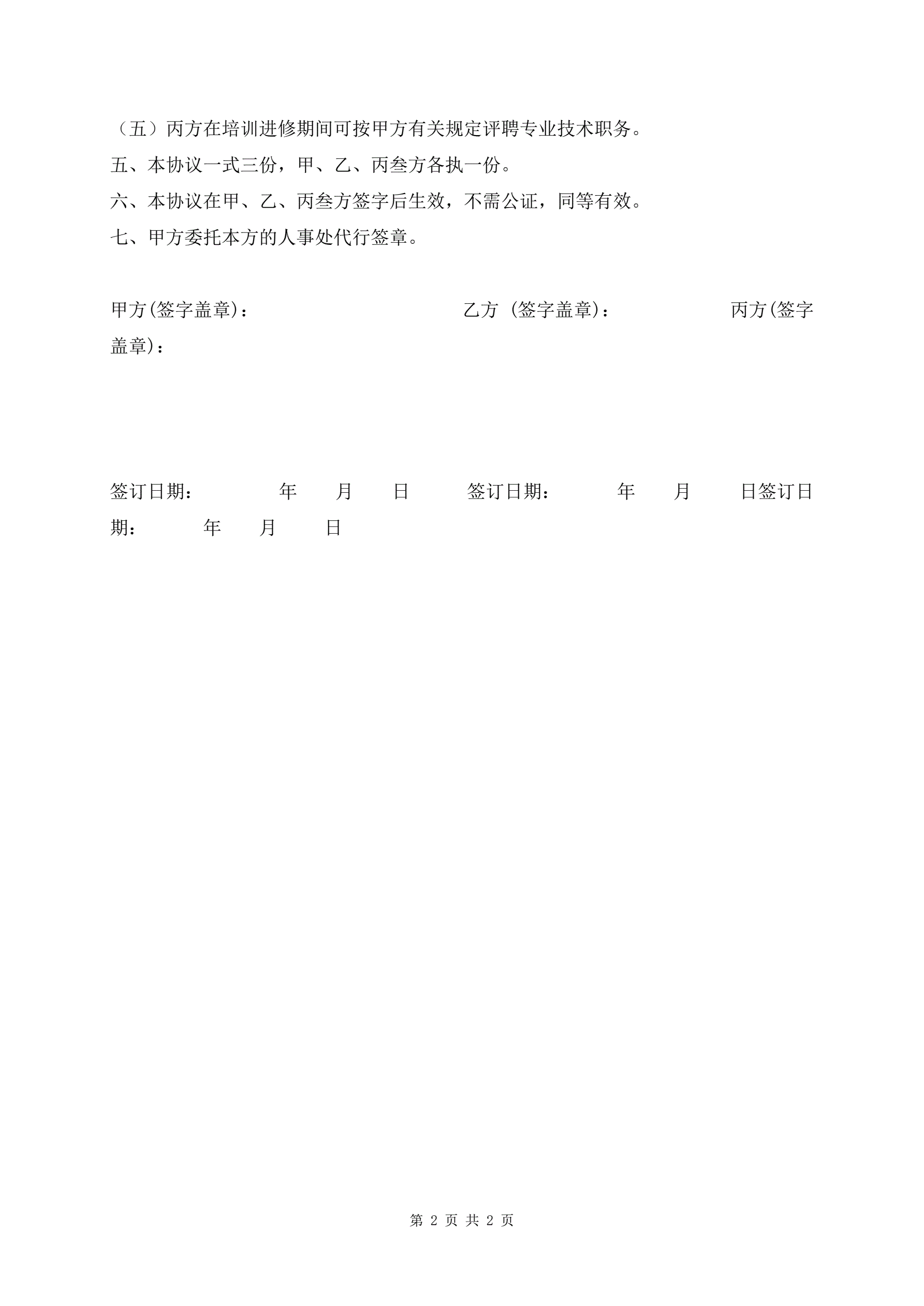 教职工培训进修合同新版